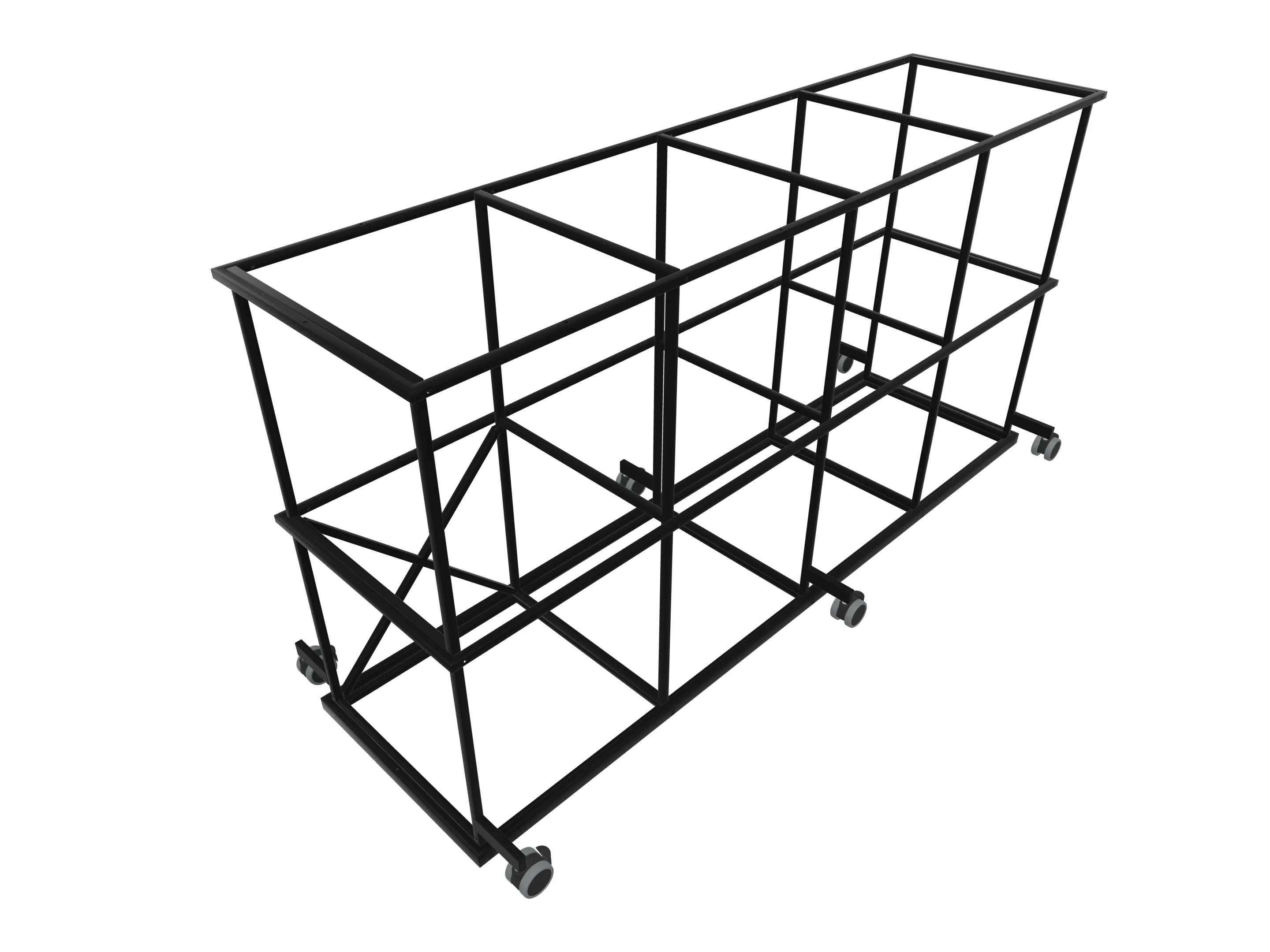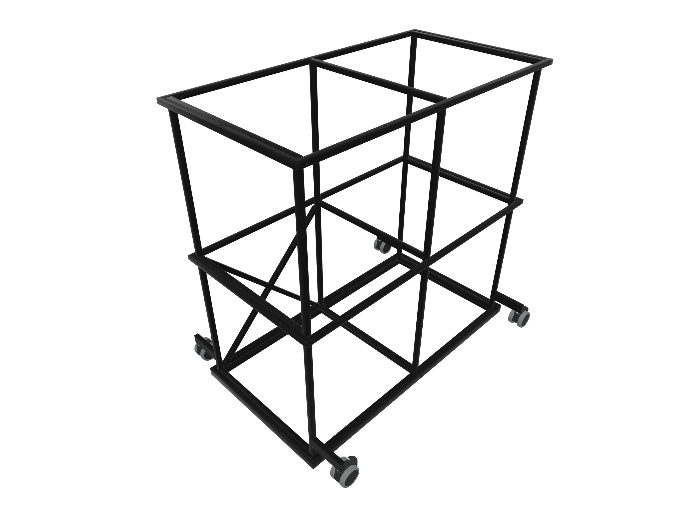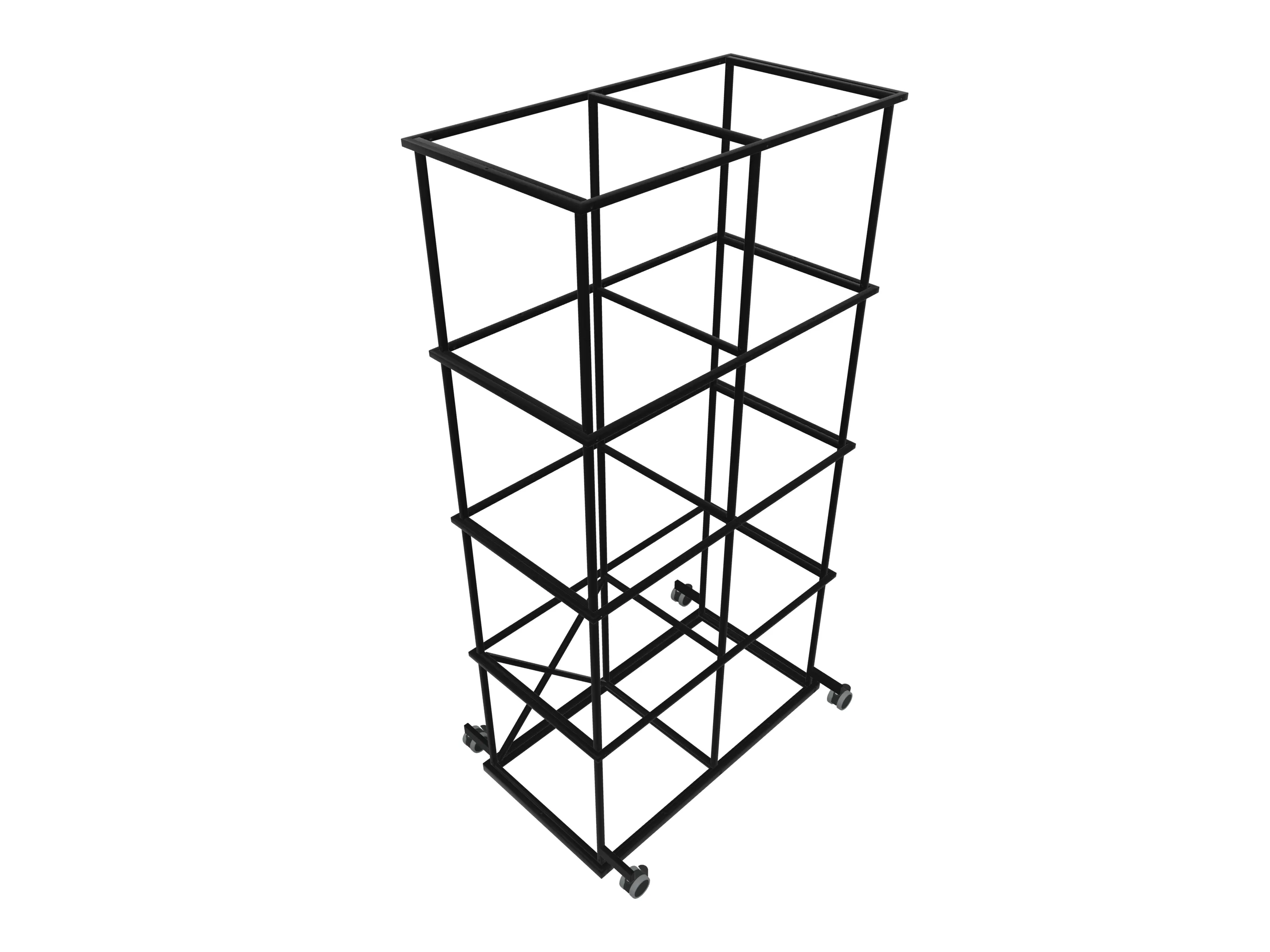 Vakkenkast systeem op wielen uit stalen kokerprofielen, voorzien van één schoorkruis. Inhoud moet los besteld worden. Afmeting: 945 x 905 x 690mm (BxHxD). Let op! Frame wordt af fabriek compleet geleverd!