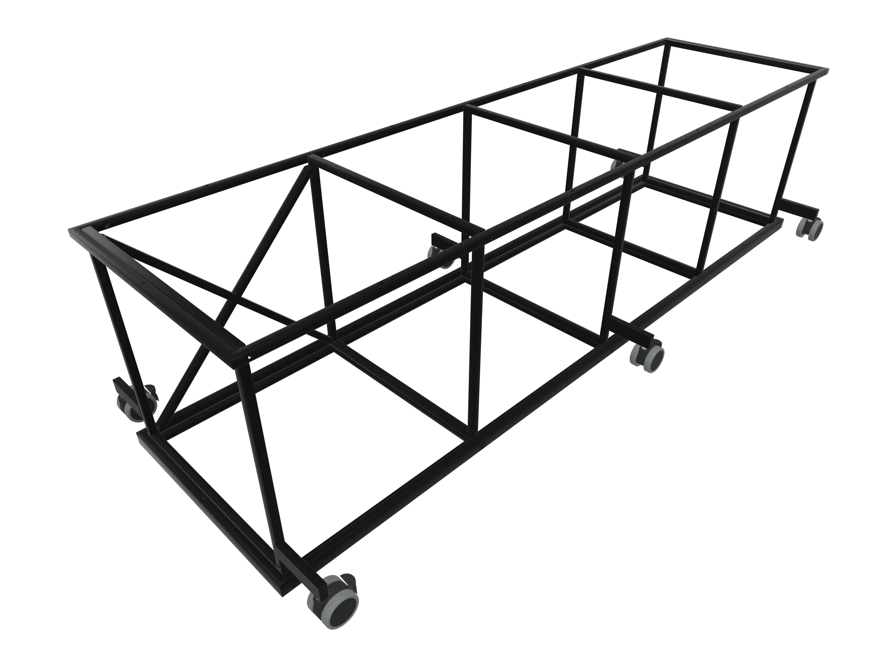 Vakkenkast systeem op wielen uit stalen kokerprofielen, voorzien van één schoorkruis. Inhoud moet los besteld worden. Afmeting: 2250 x 905 x 690mm (BxHxD). Let op! Frame wordt af fabriek compleet geleverd!