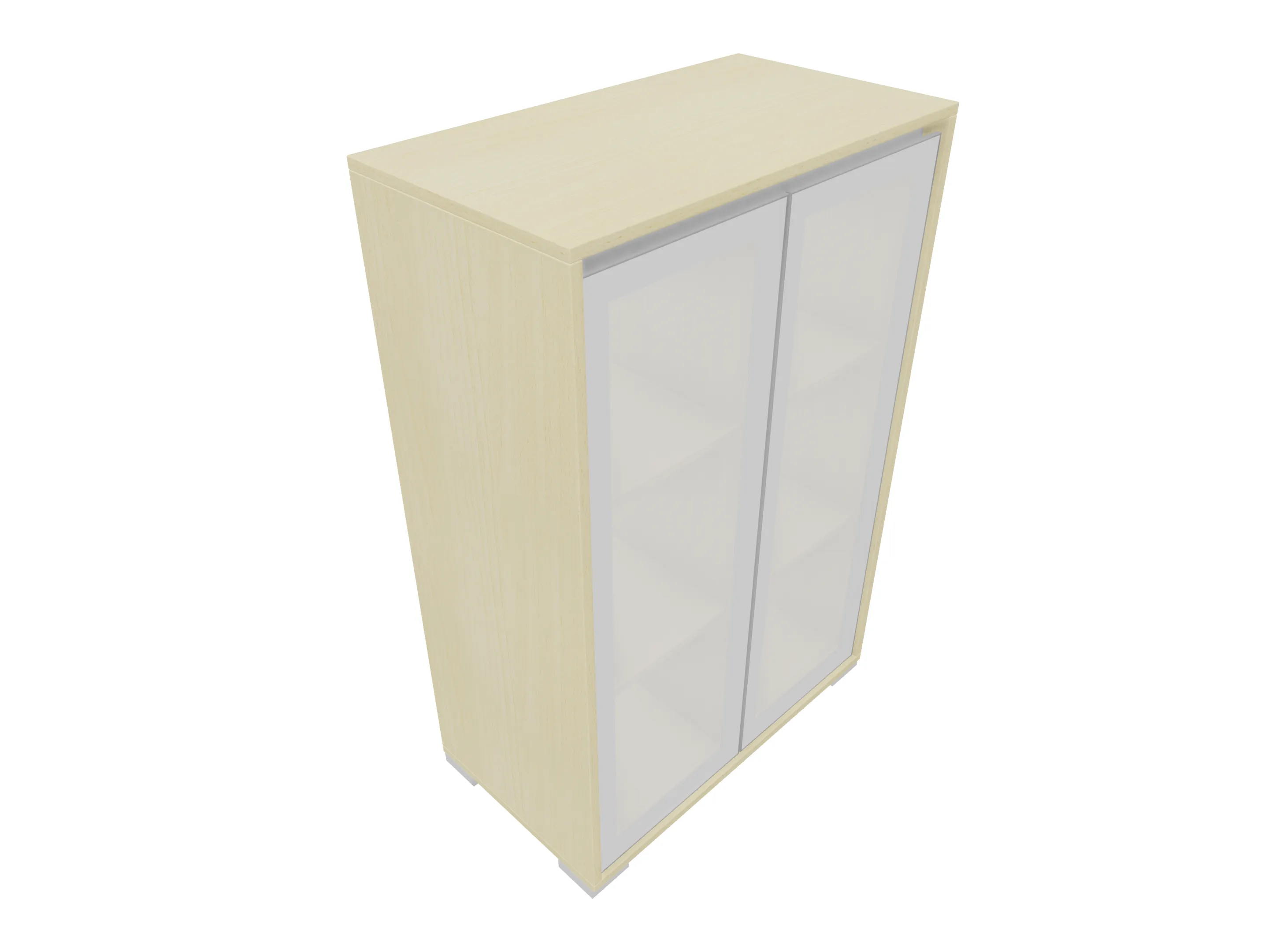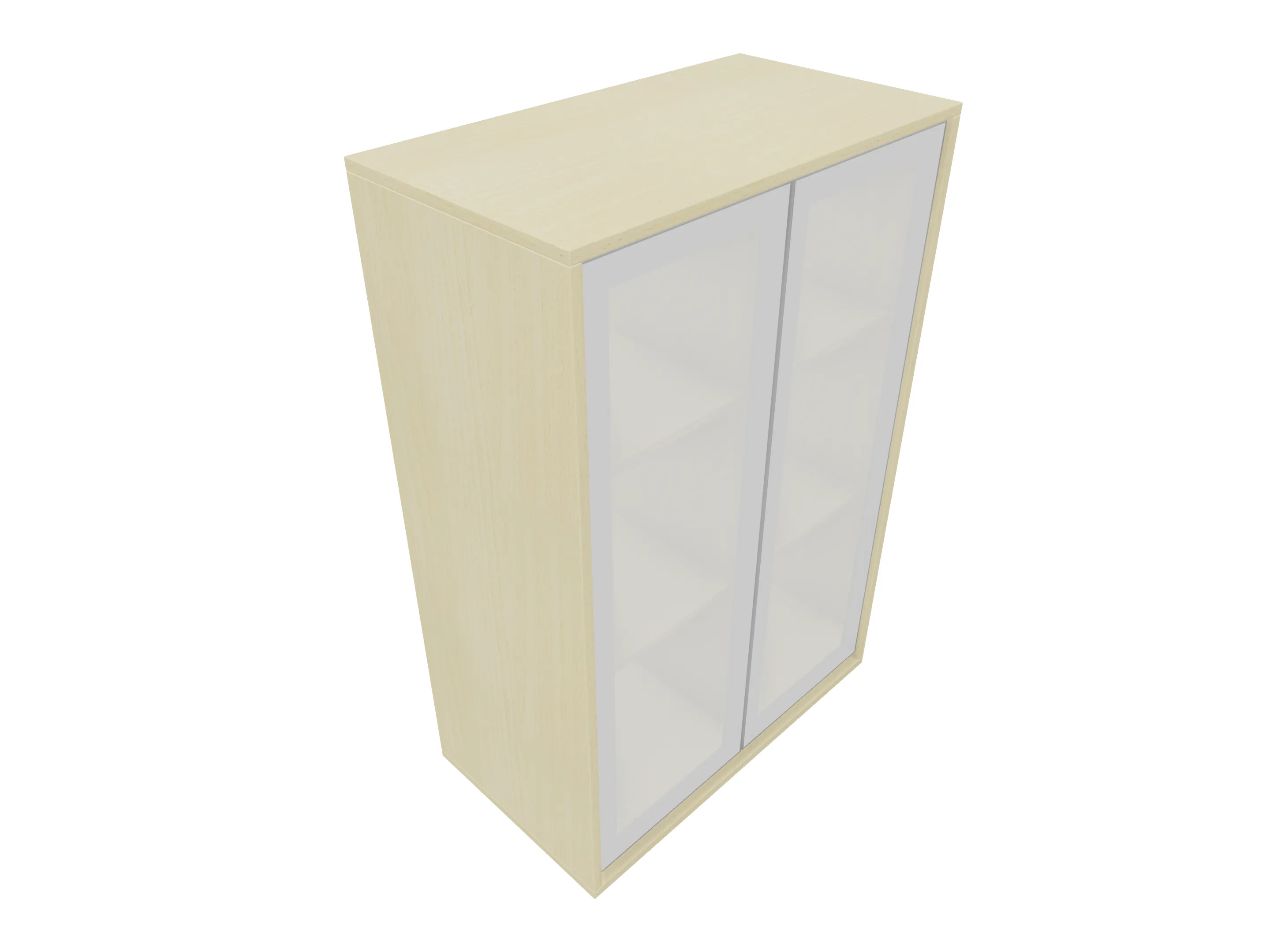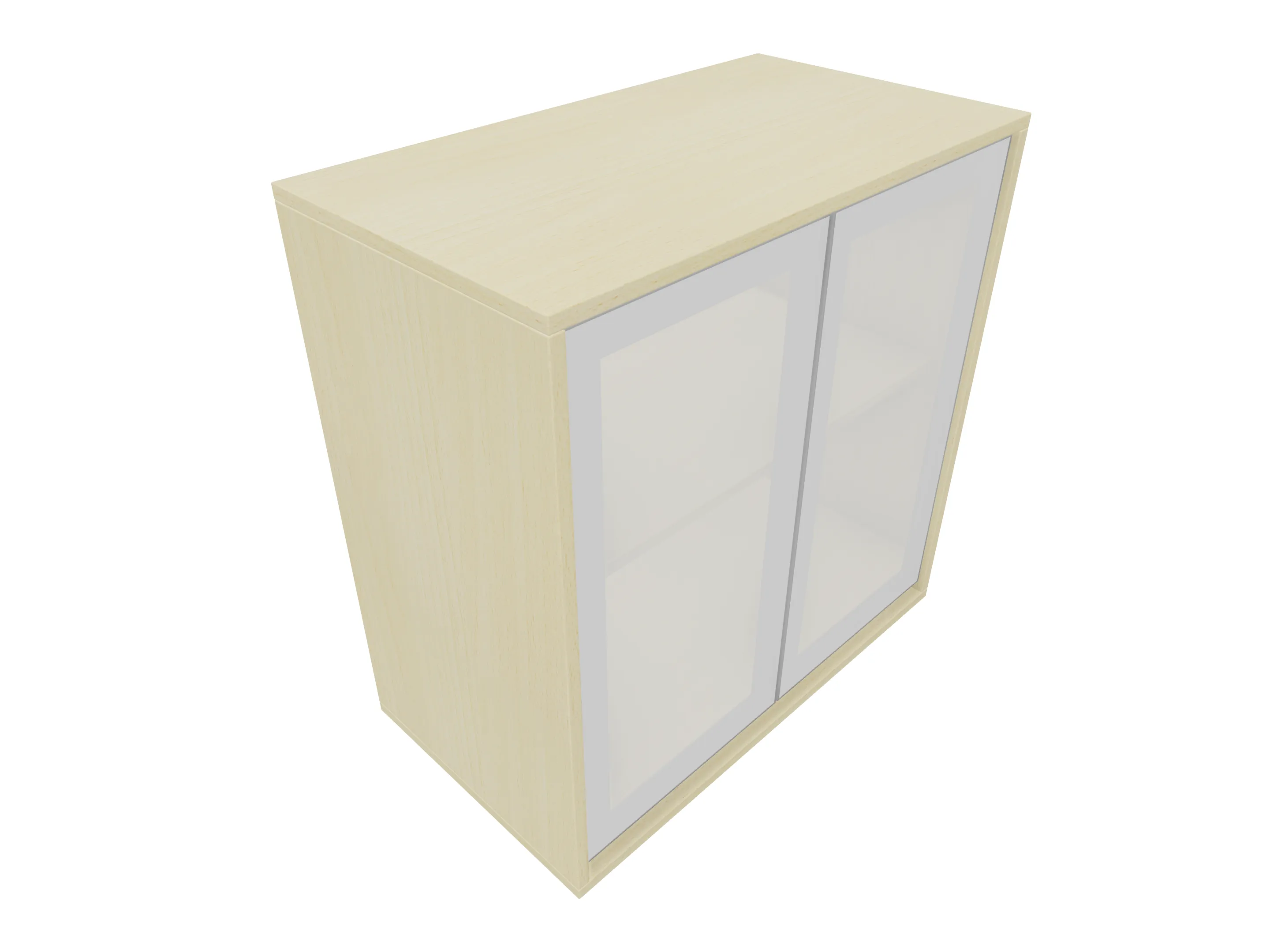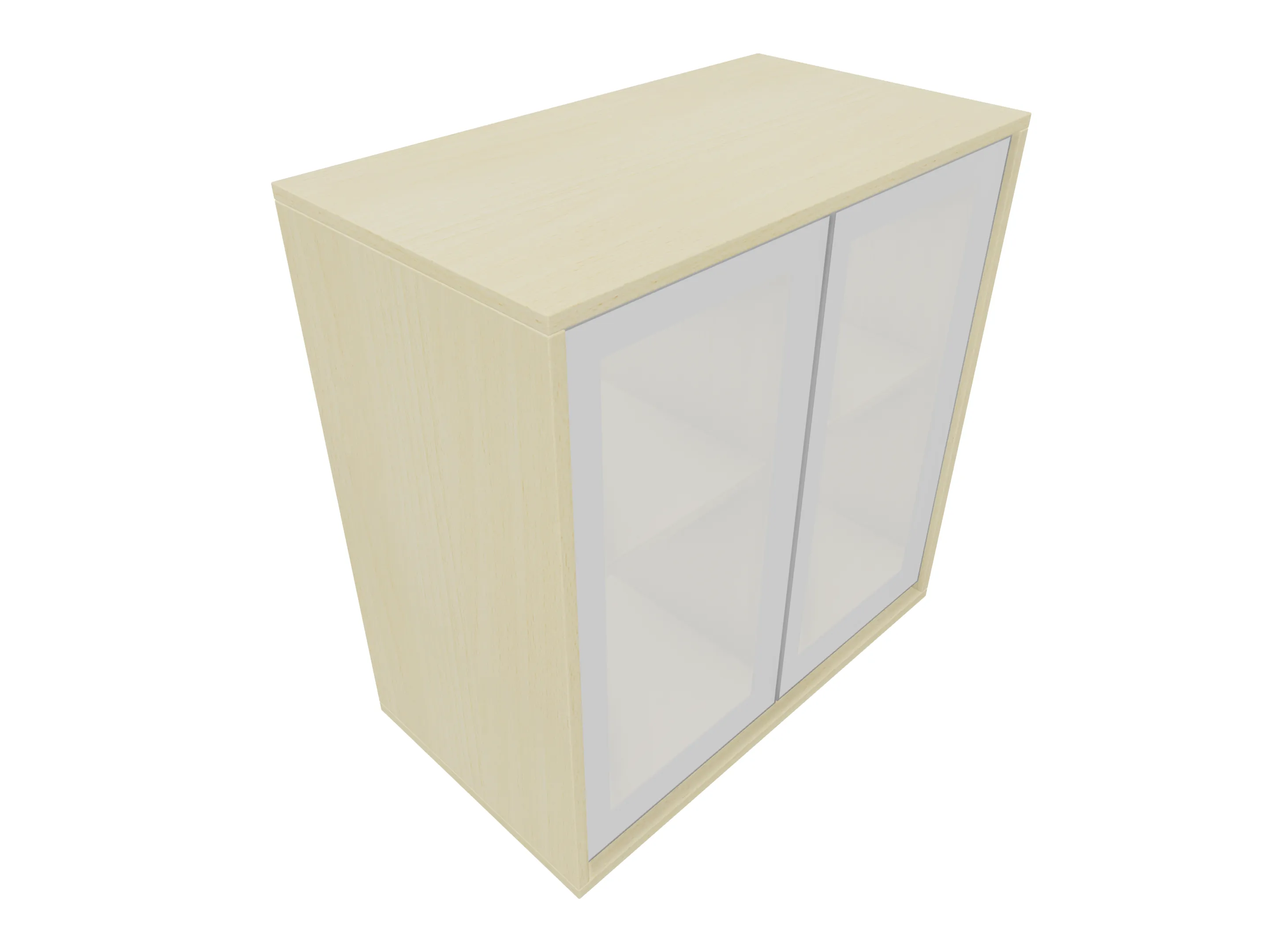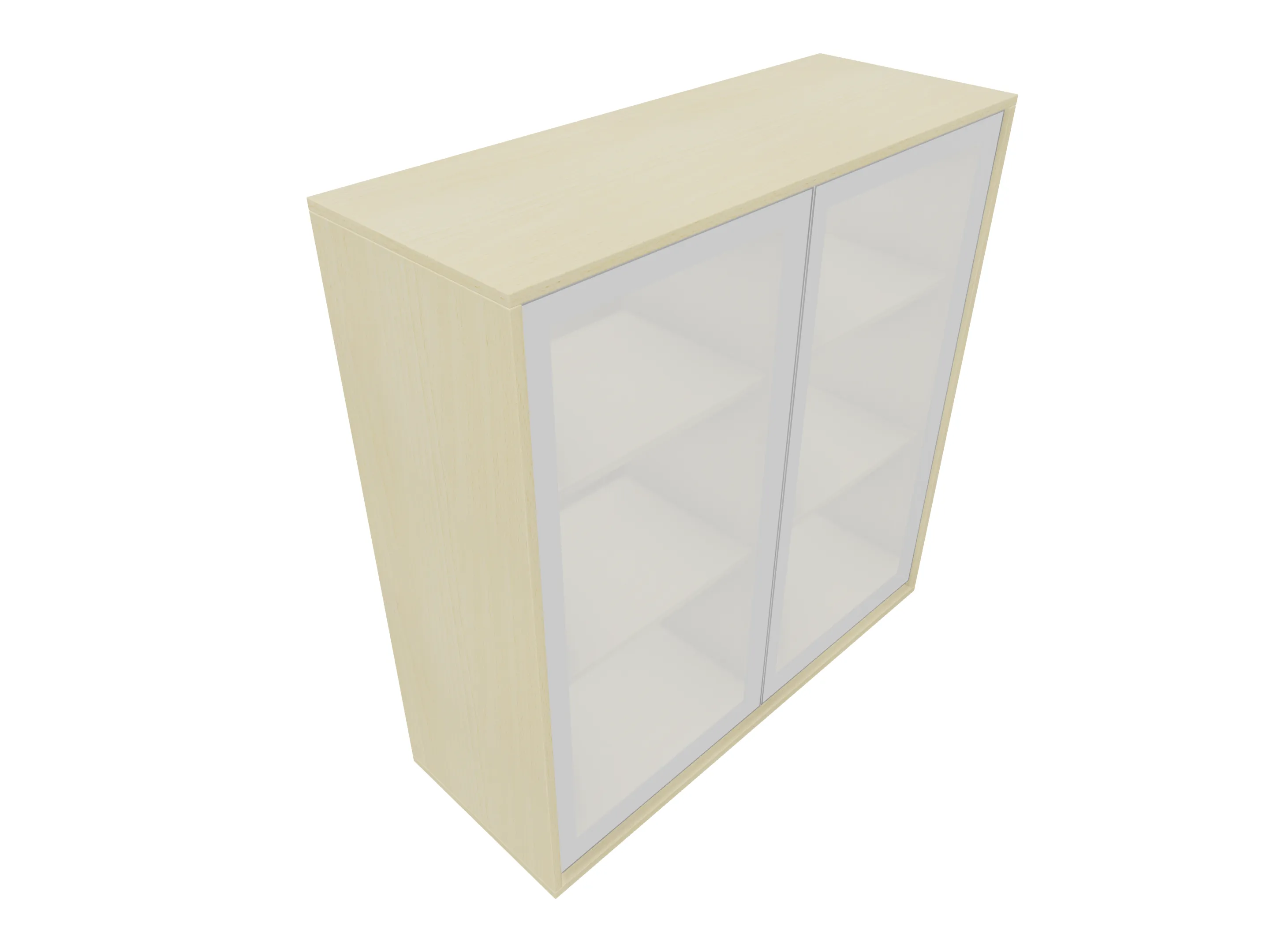 Glasdeurkast compleet met deuren, middenwand, 2 legborden en metalen hoeksokkels. Afmeting: 800 x 640 x 441mm (BxHxD)