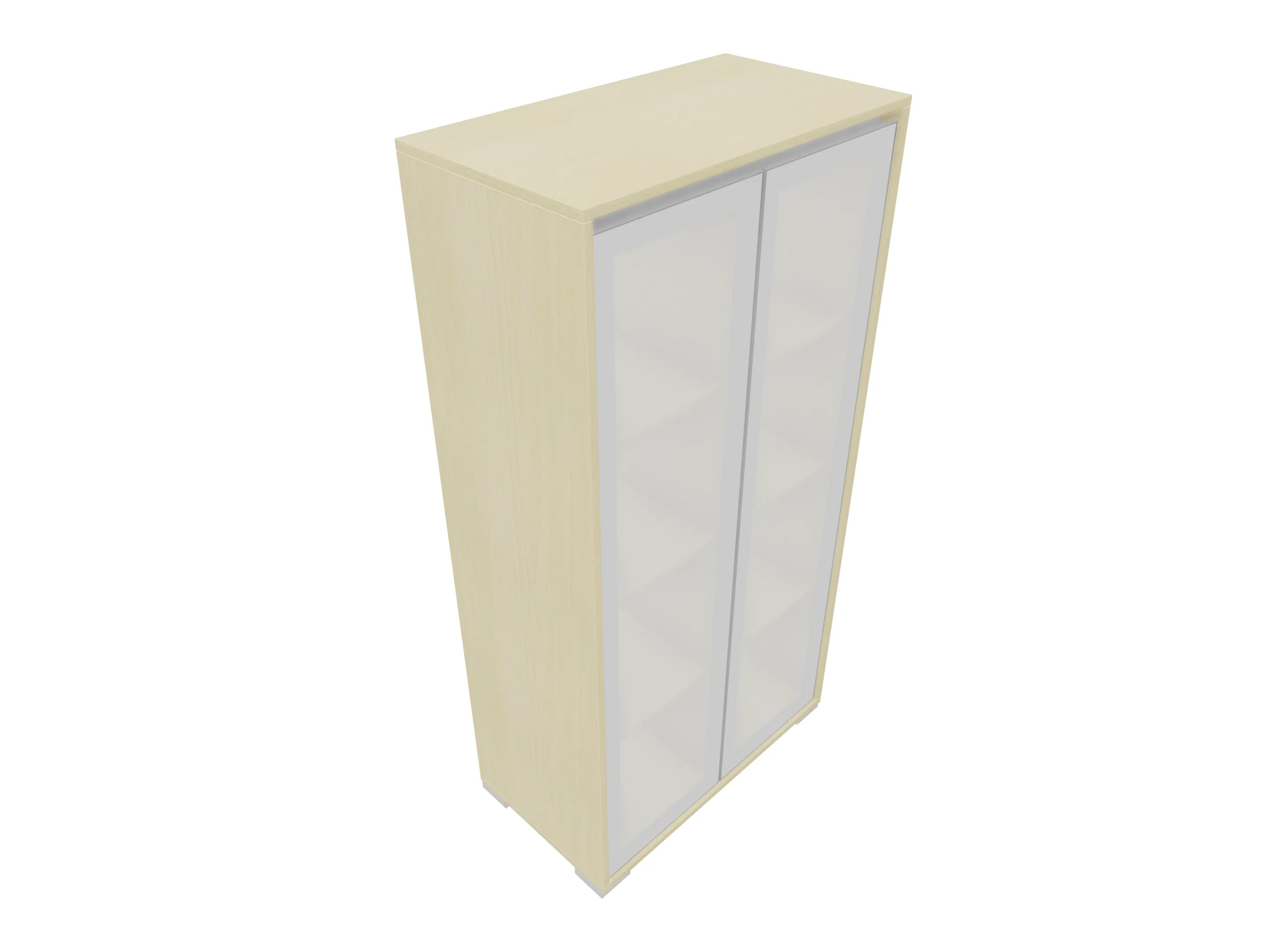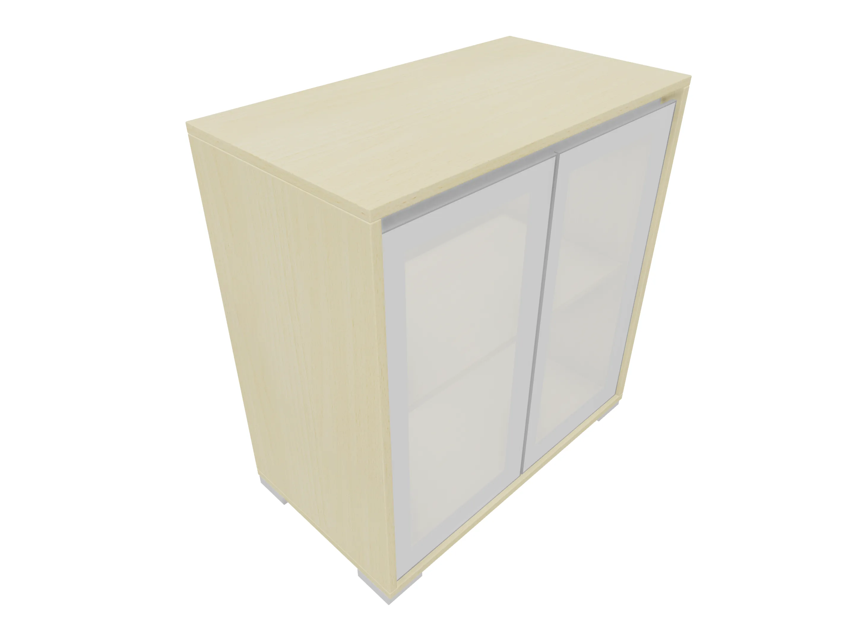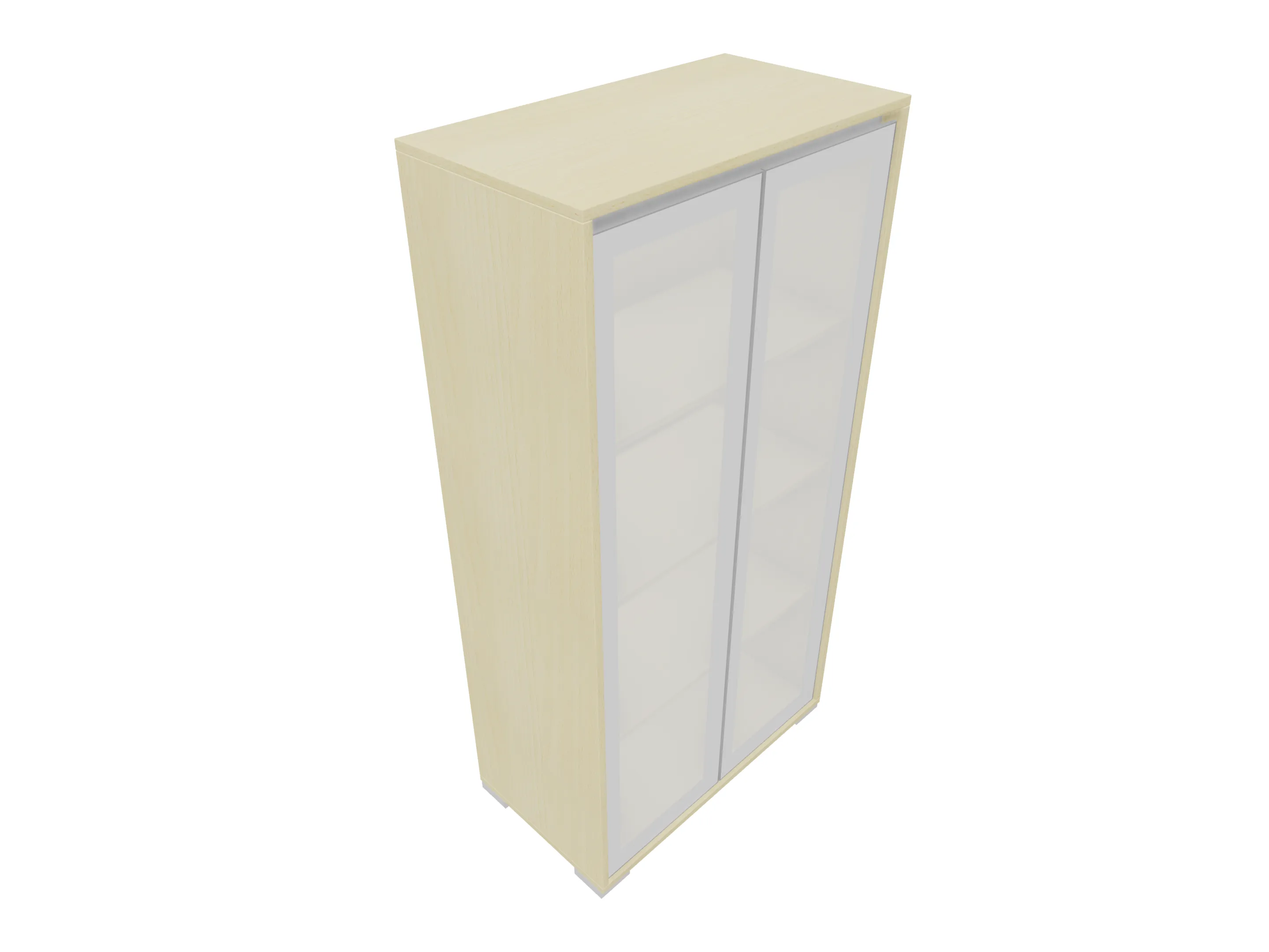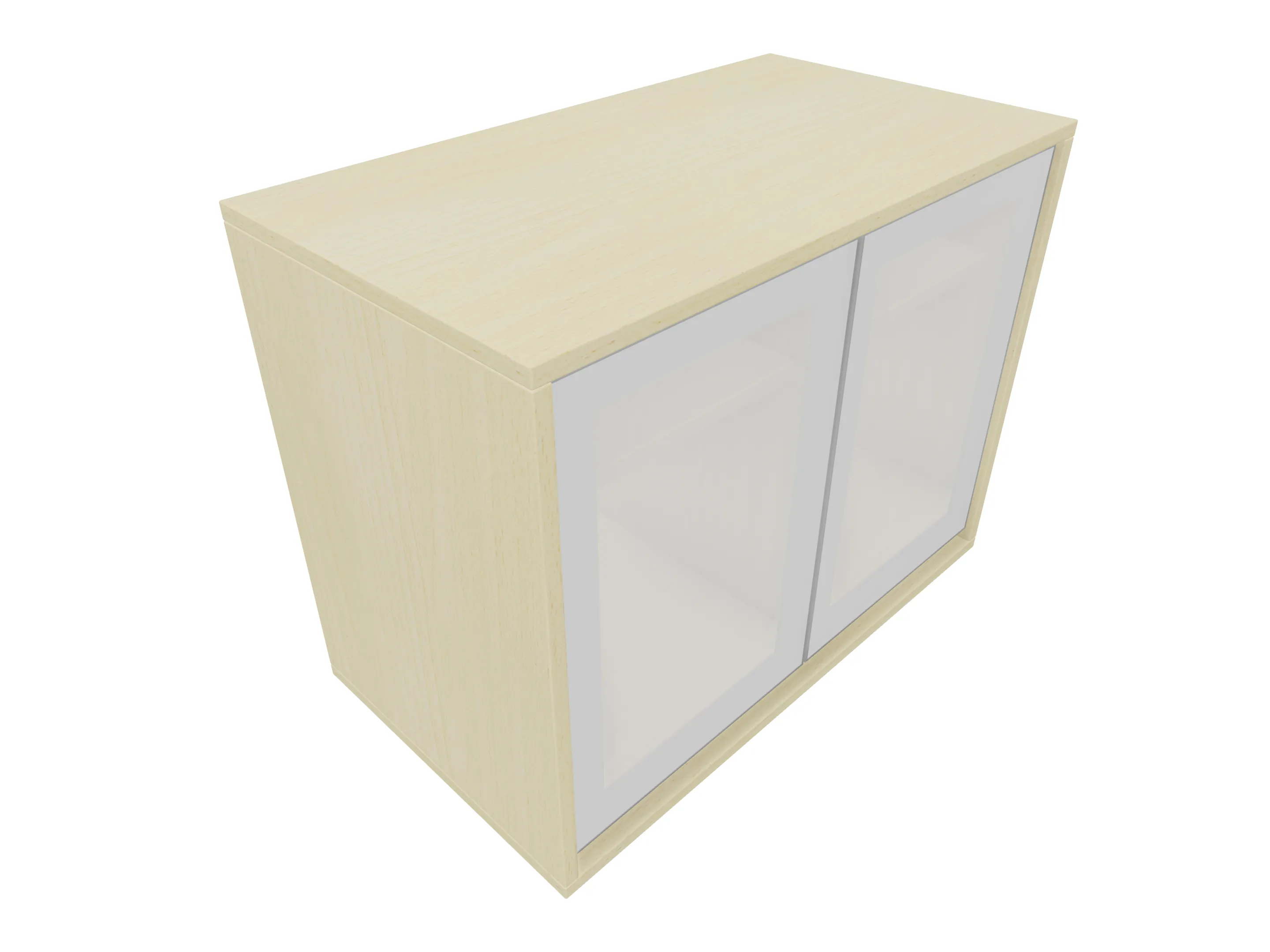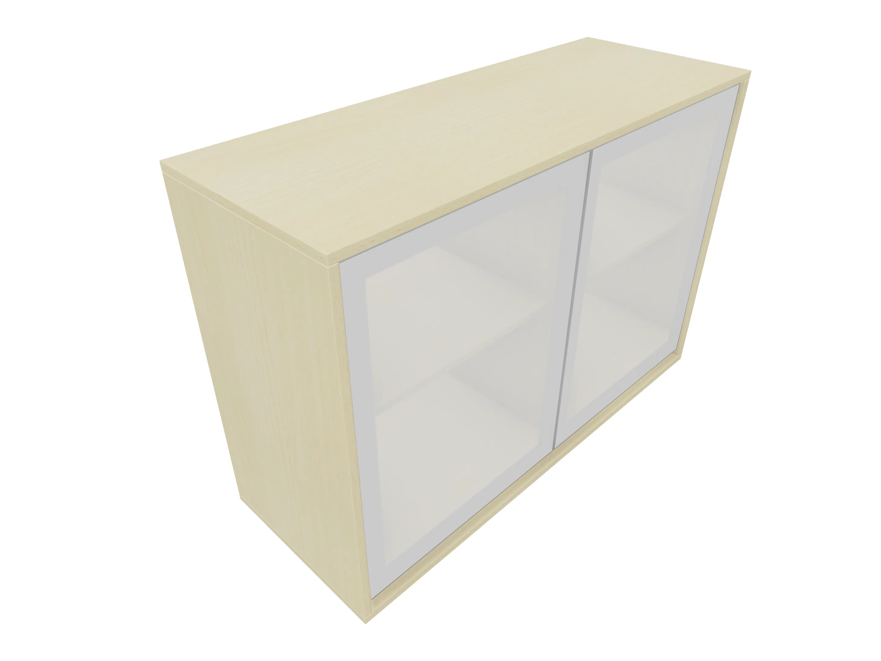 Glasdeurkast compleet met deuren, middenwand, 2 legborden en metalen hoeksokkels. Afmeting: 800 x 640 x 441mm (BxHxD)