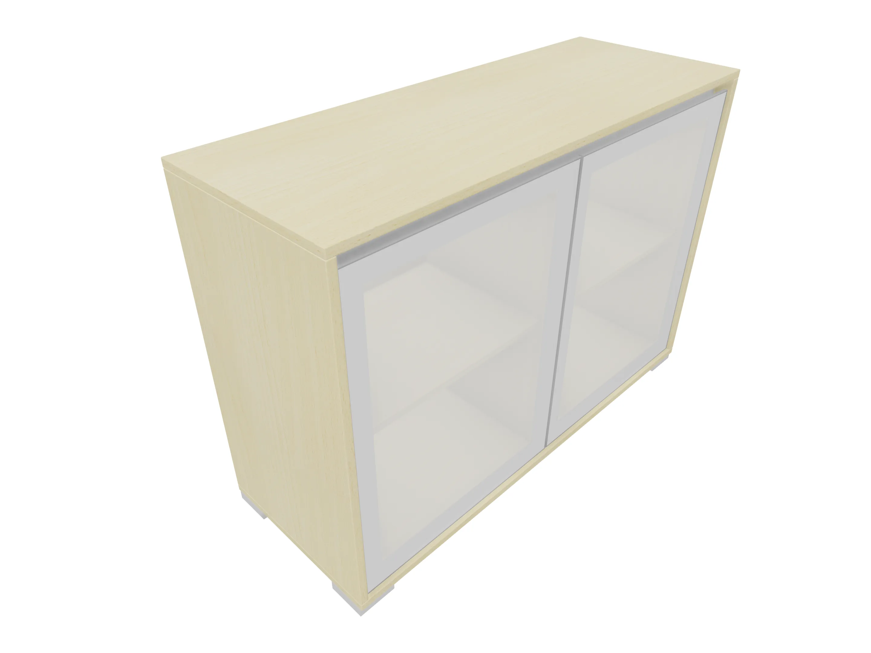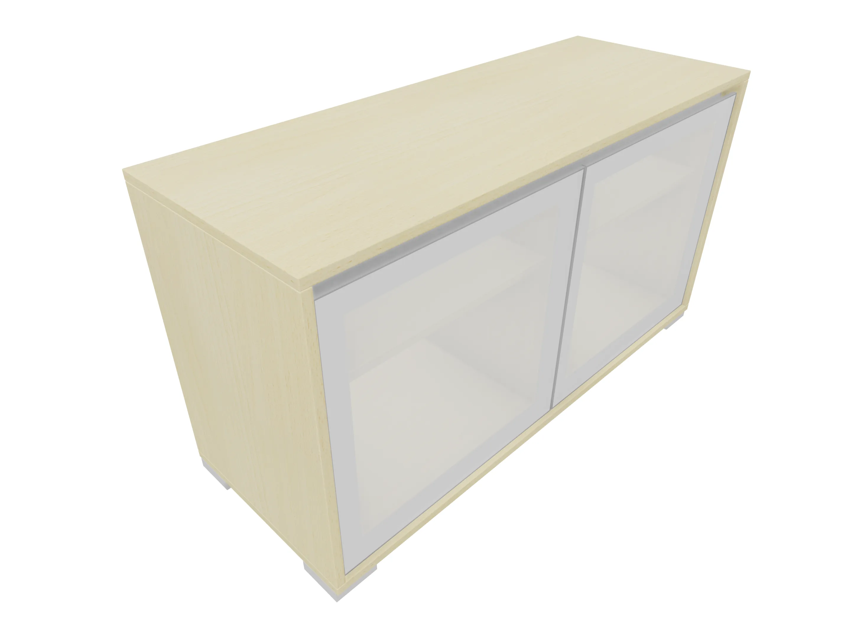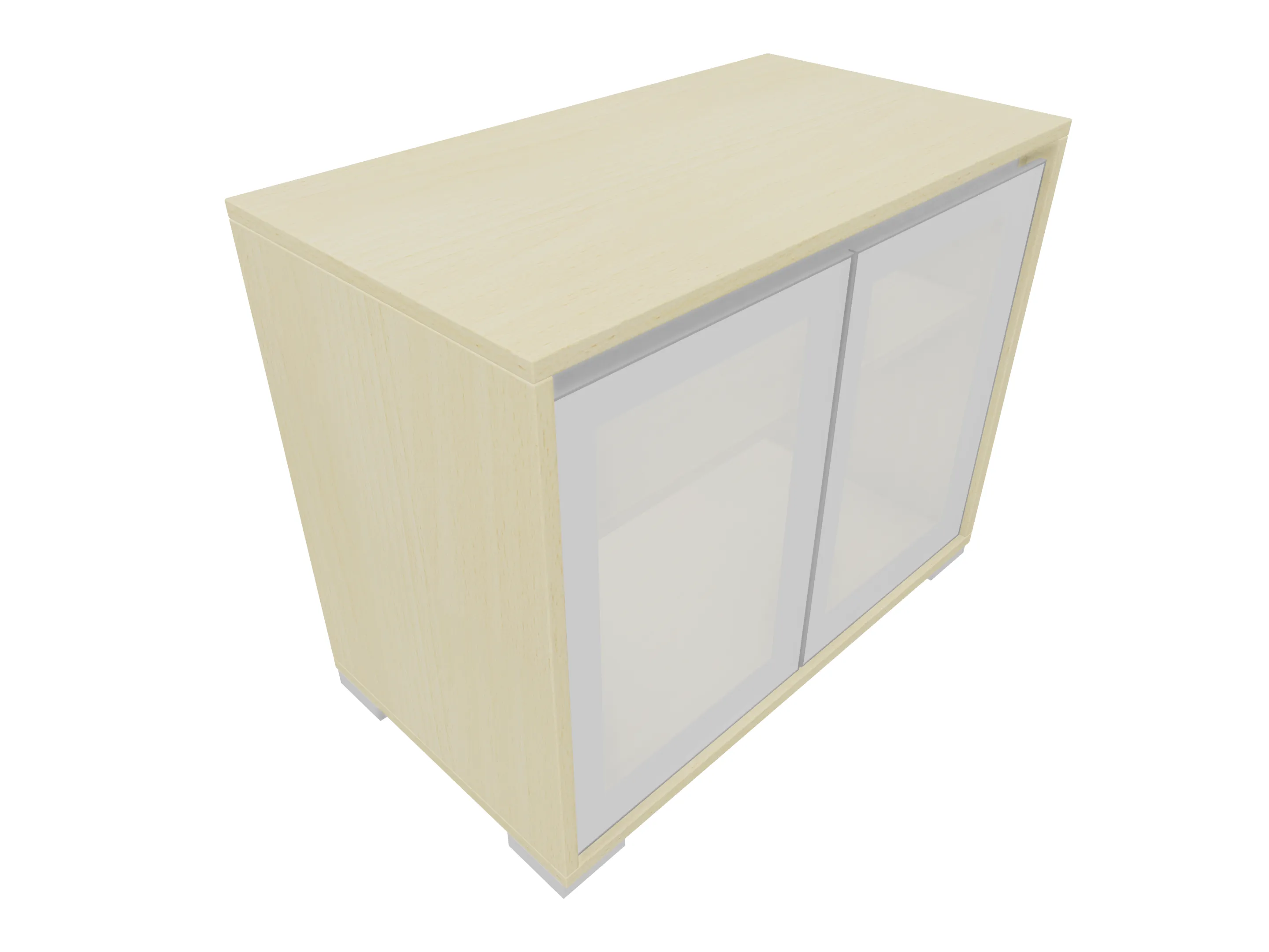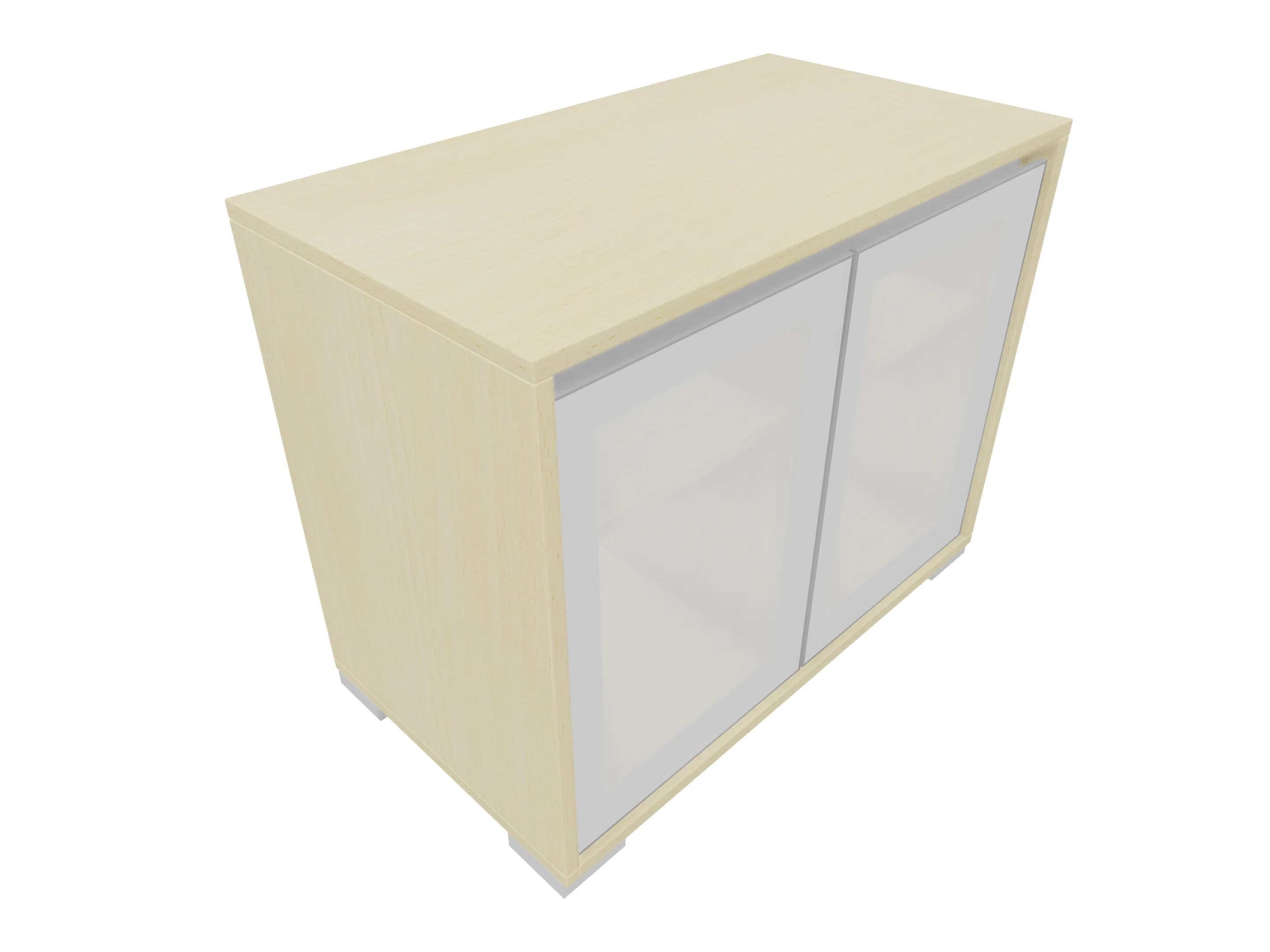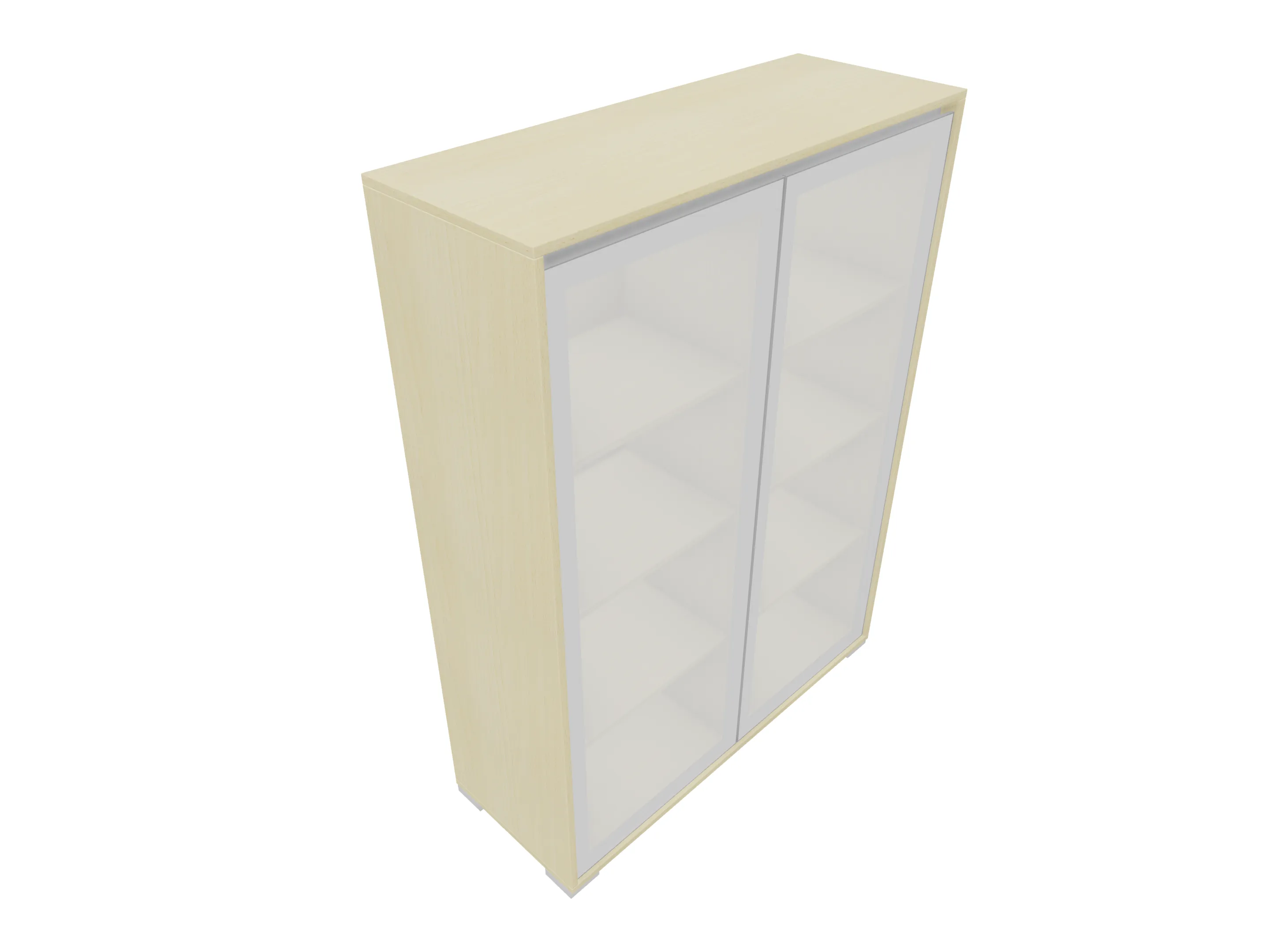 Glasdeurkast compleet met deuren, middenwand, 2 legborden en metalen hoeksokkels. Afmeting: 800 x 640 x 441mm (BxHxD)