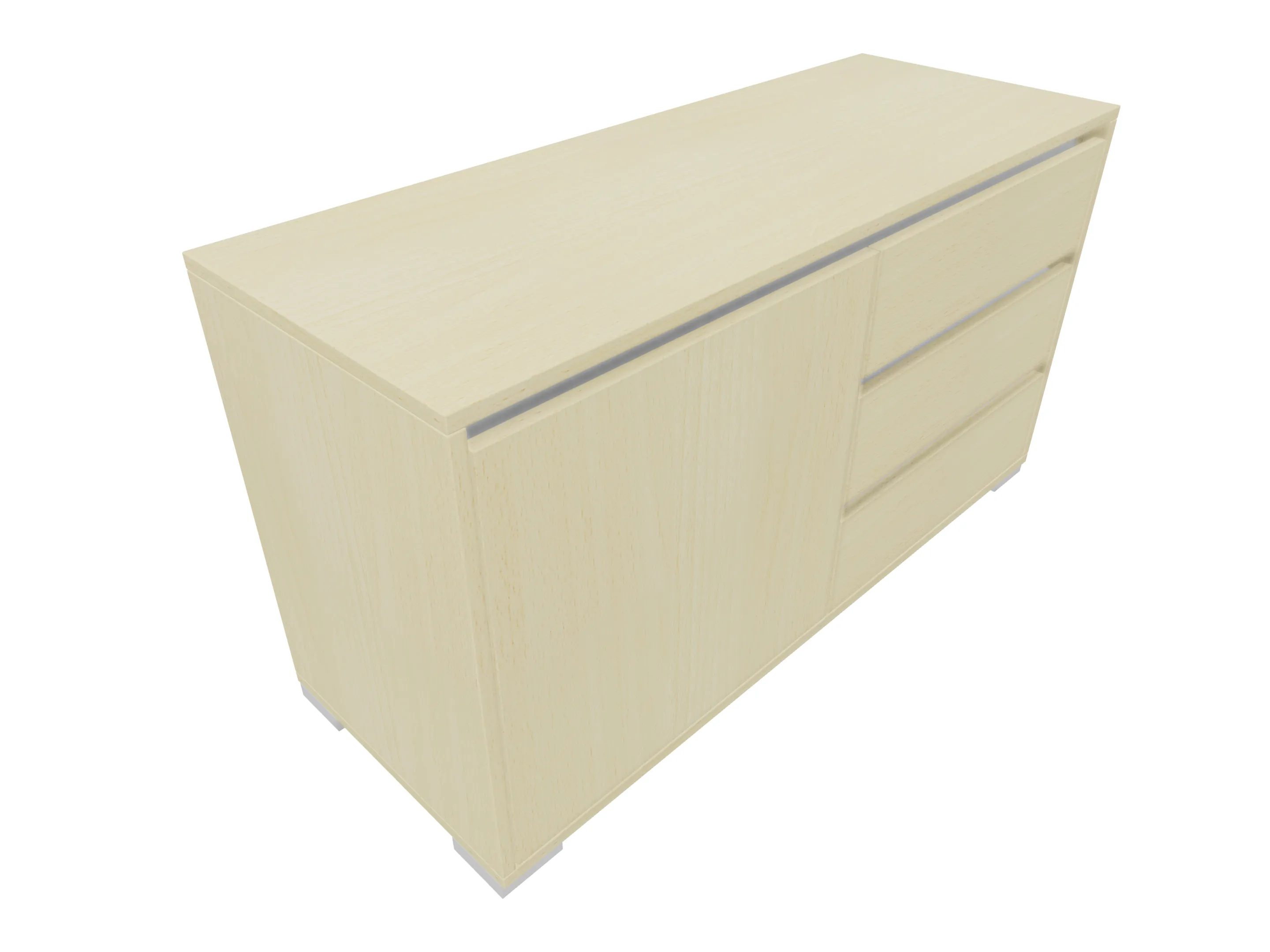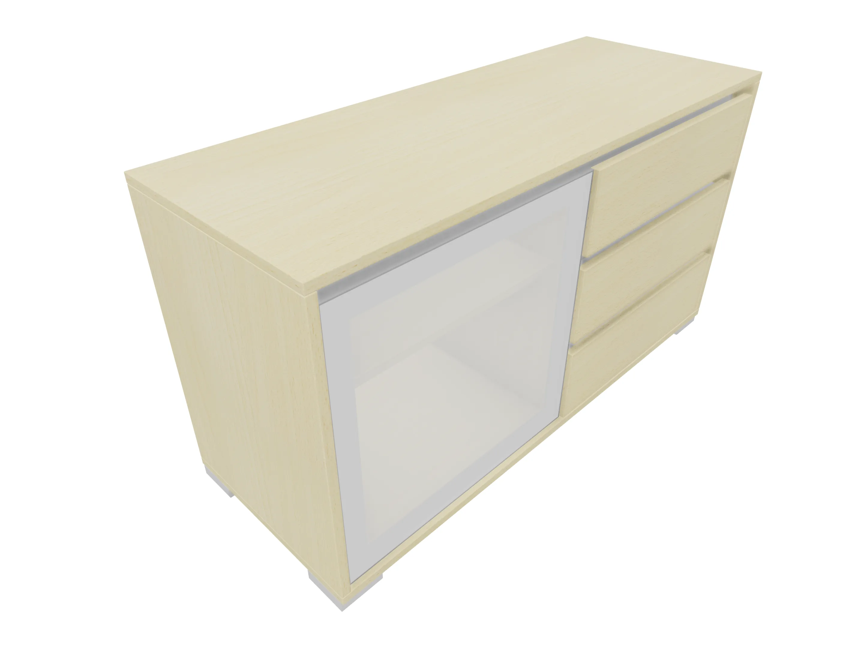 Modulekast met links drie laden (3x 3HE), rechts een draaideur en 1 legbord, compleet met softclose, uittrekbeveiliging en metalen hoeksokkels. Afmeting: 1181 x 640 x 441mm (BxHxD)