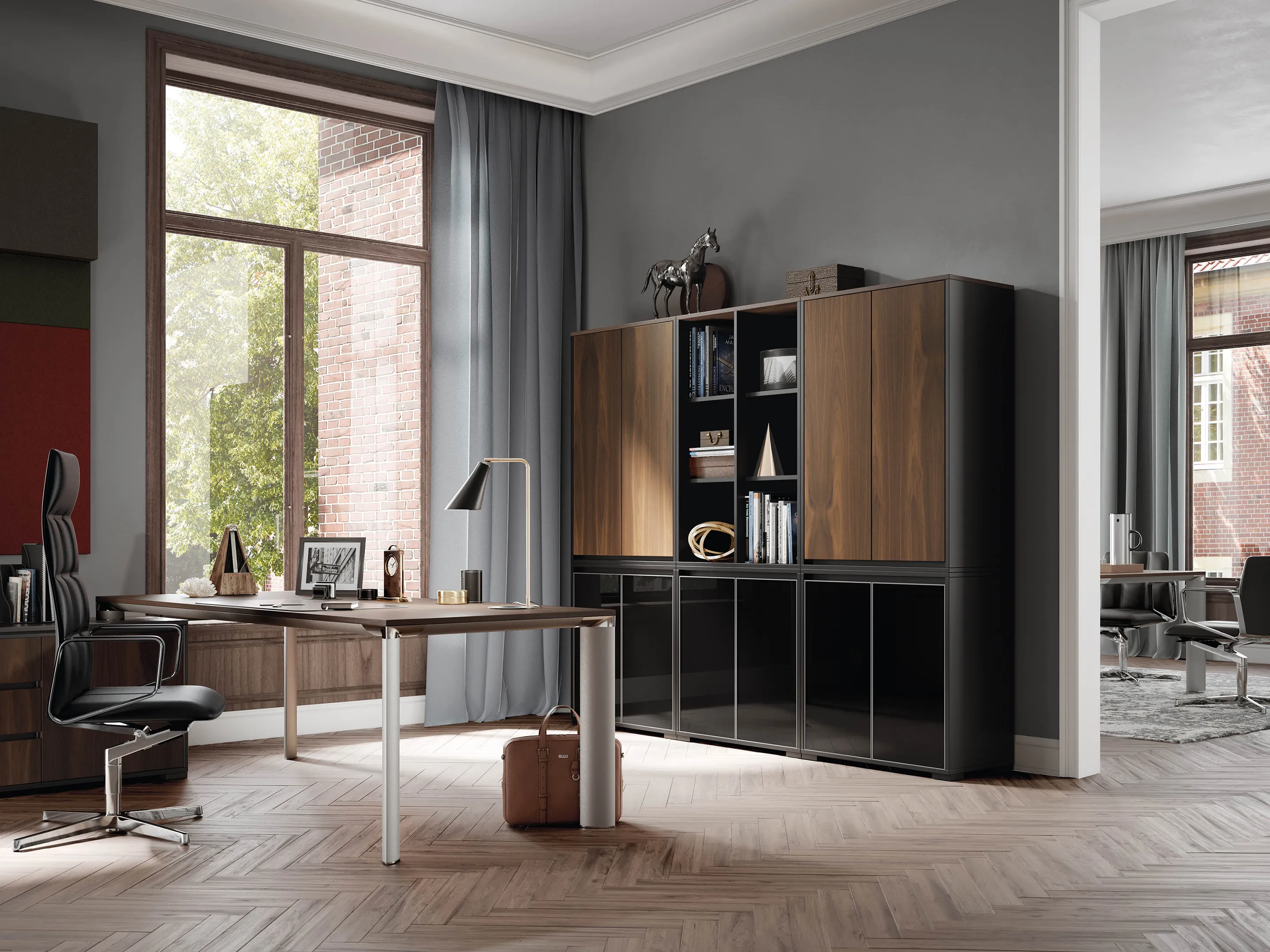 Select systeemkast - Glasdeurkast, 800mm x 6OH, 2 houten deuren