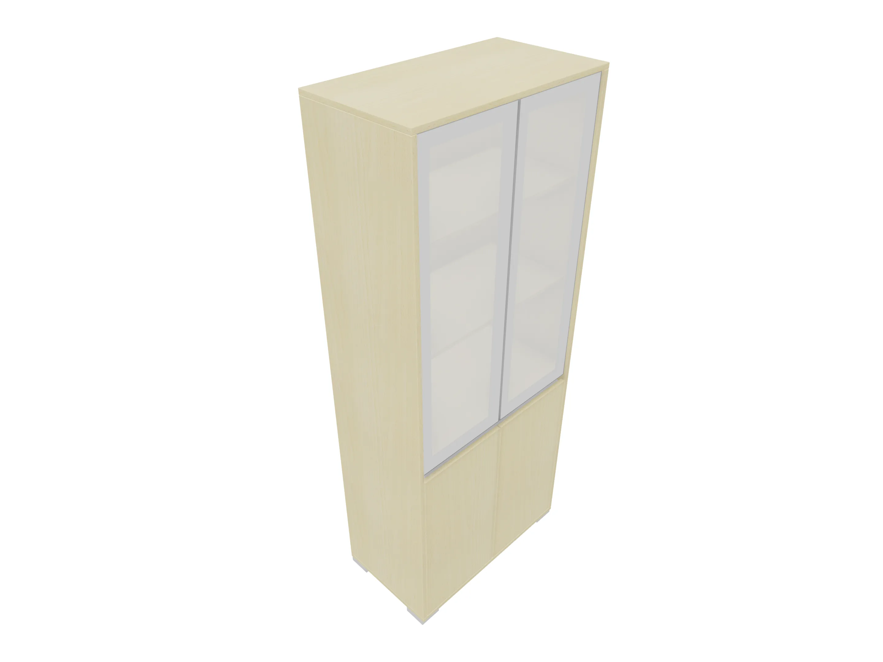 Glasdeurkast compleet met 2 glasdeuren, 2 houten deuren, 3 legborden en metalen hoeksokkels. Afmeting: 800 x 1984 x 441mm (BxHxD)