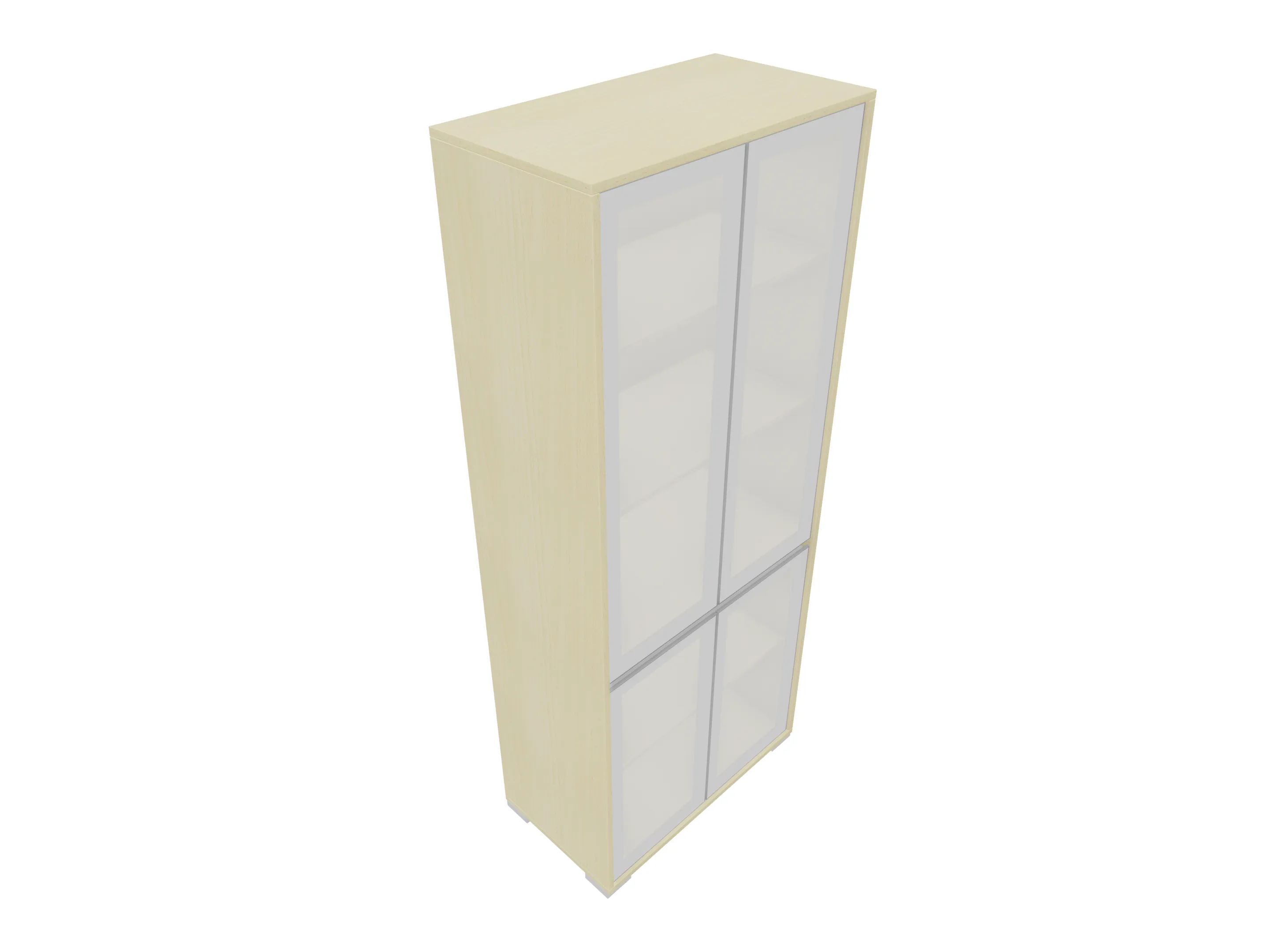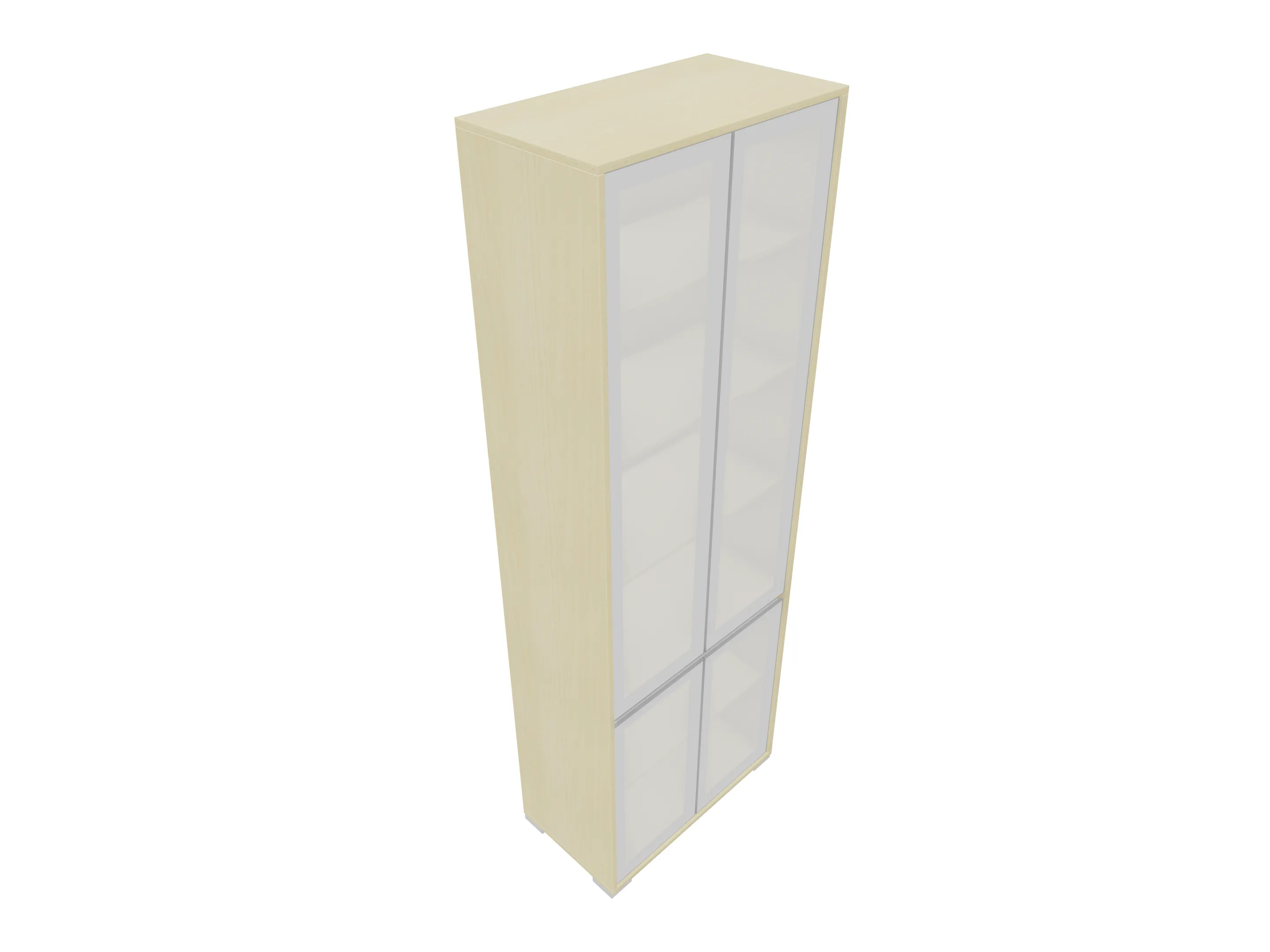 Glasdeurkast compleet met 4 glasdeuren, 3 legborden en metalen hoeksokkels. Afmeting: 800 x 1984 x 441mm (BxHxD)