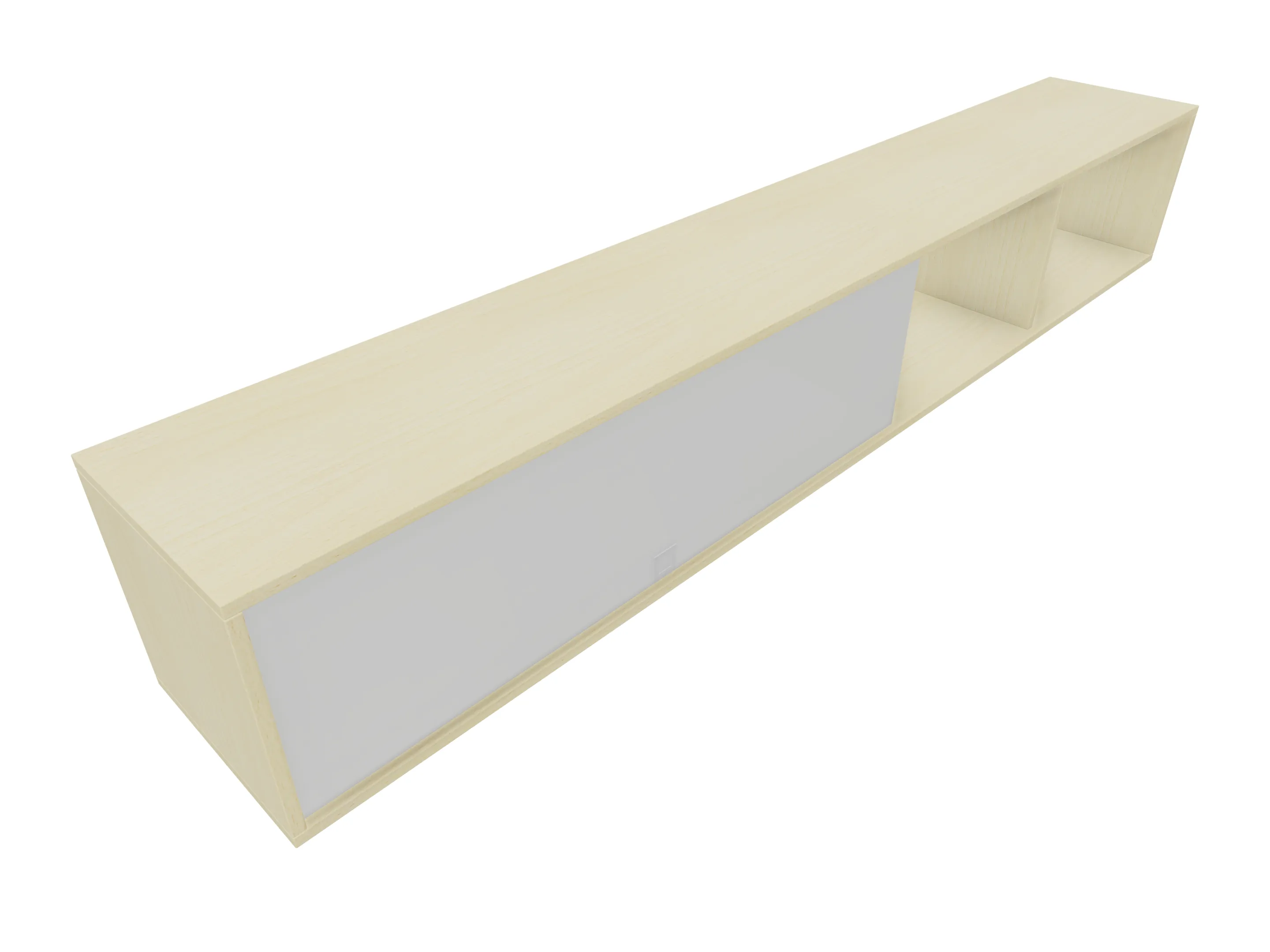 Hangkast met 3 middenwand en 1 glazen (gelakt) schuifdeur, draagvermogen 10kg (per vak). Afmeting: 2362 x 375 x 361mm (BxHxD)