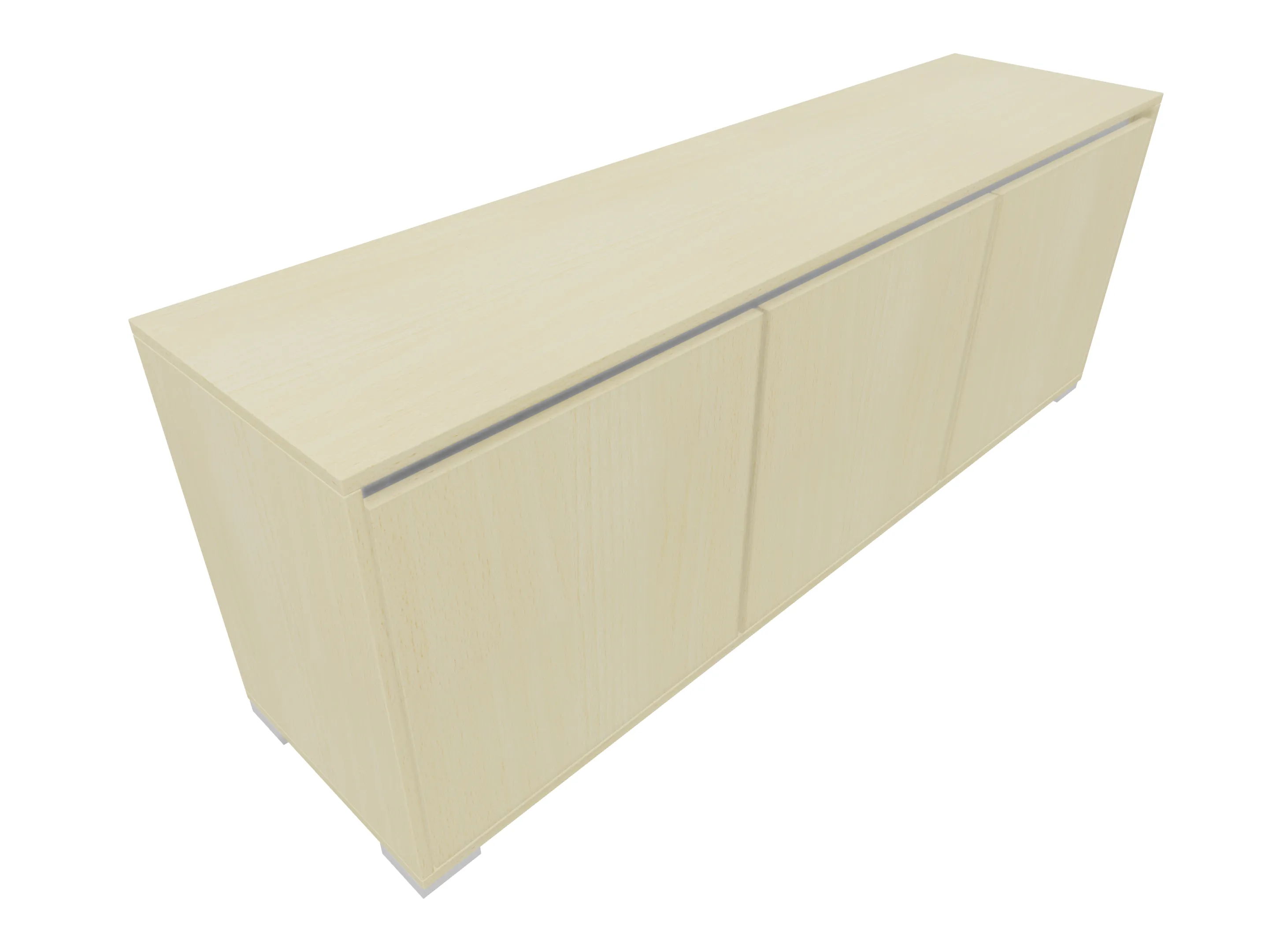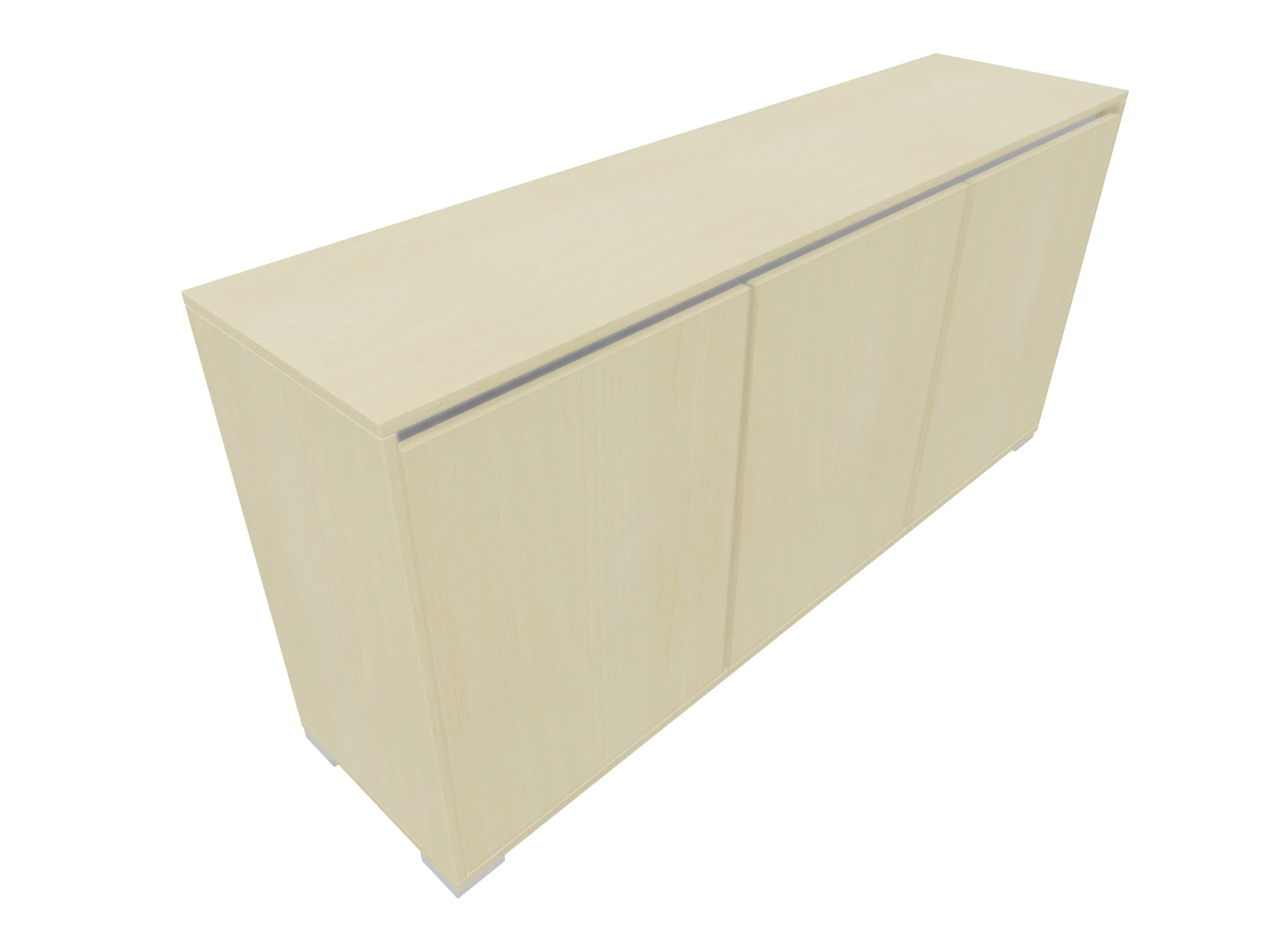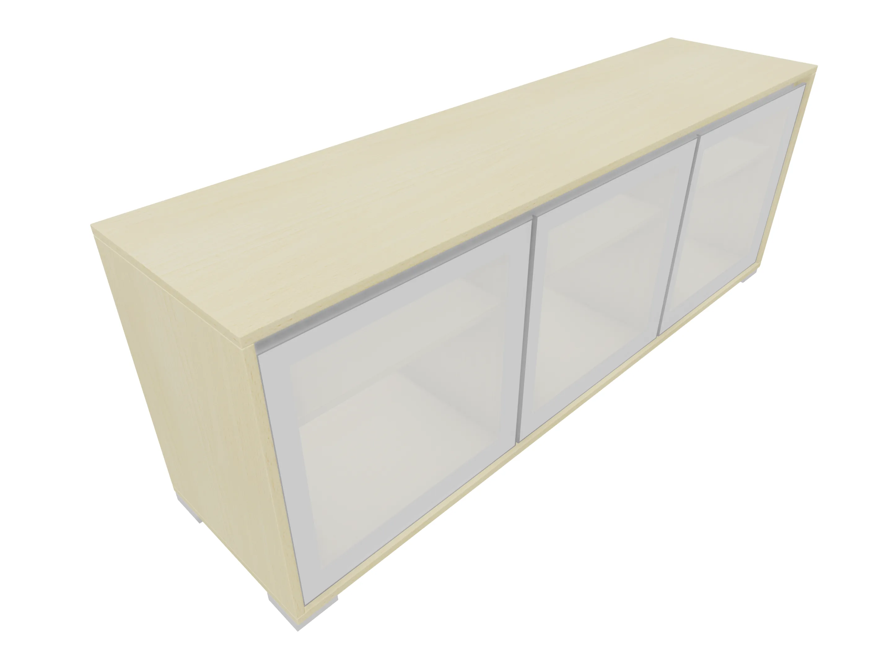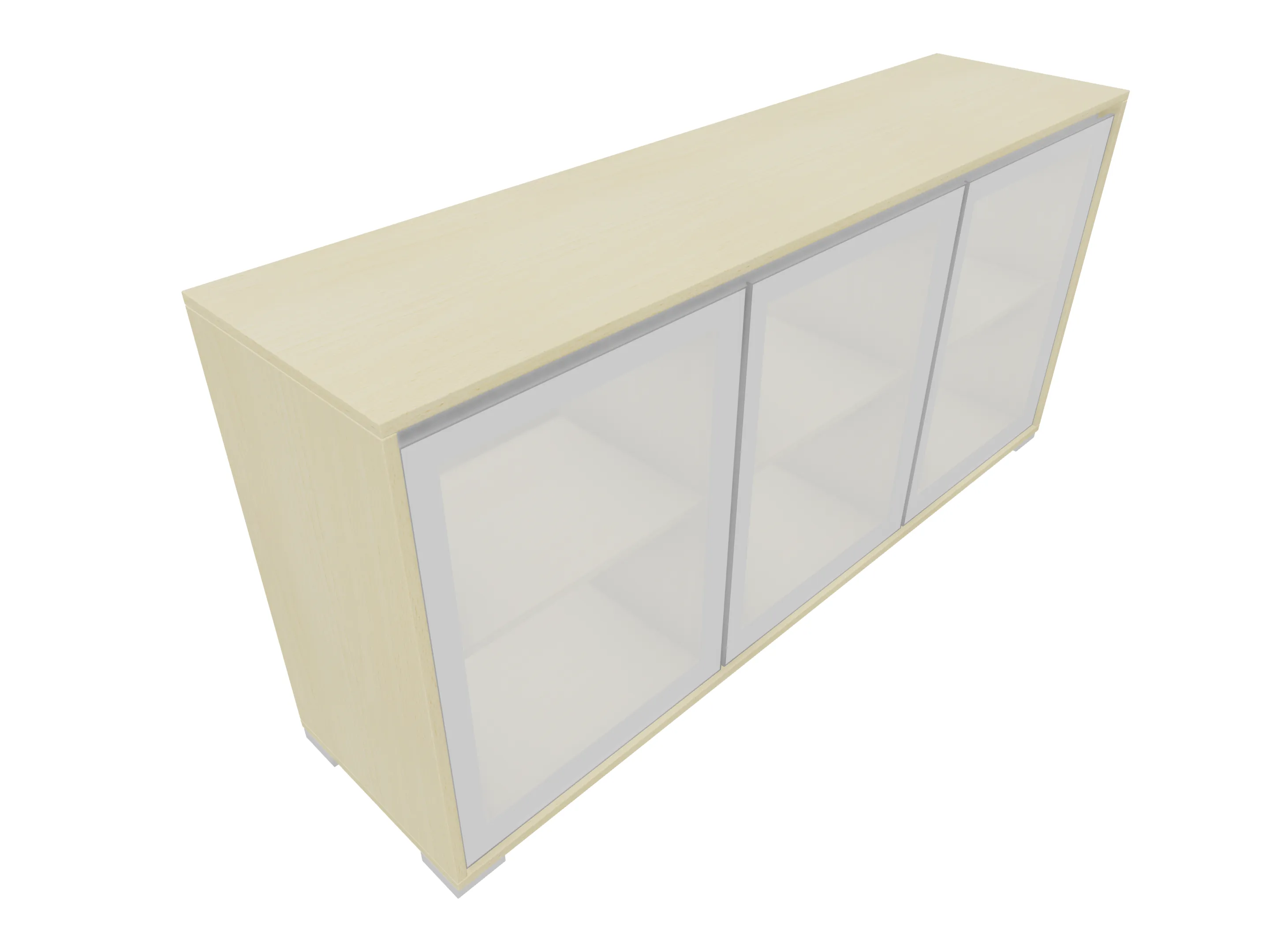 Modulekast met 2 linksdraaiende draaideuren, en één rechtsdraaiende deur. Achter elke deur een legbord. Op metalen hoeksokkels. Afmeting: 1762 x 832 x 441mm (BxHxD)