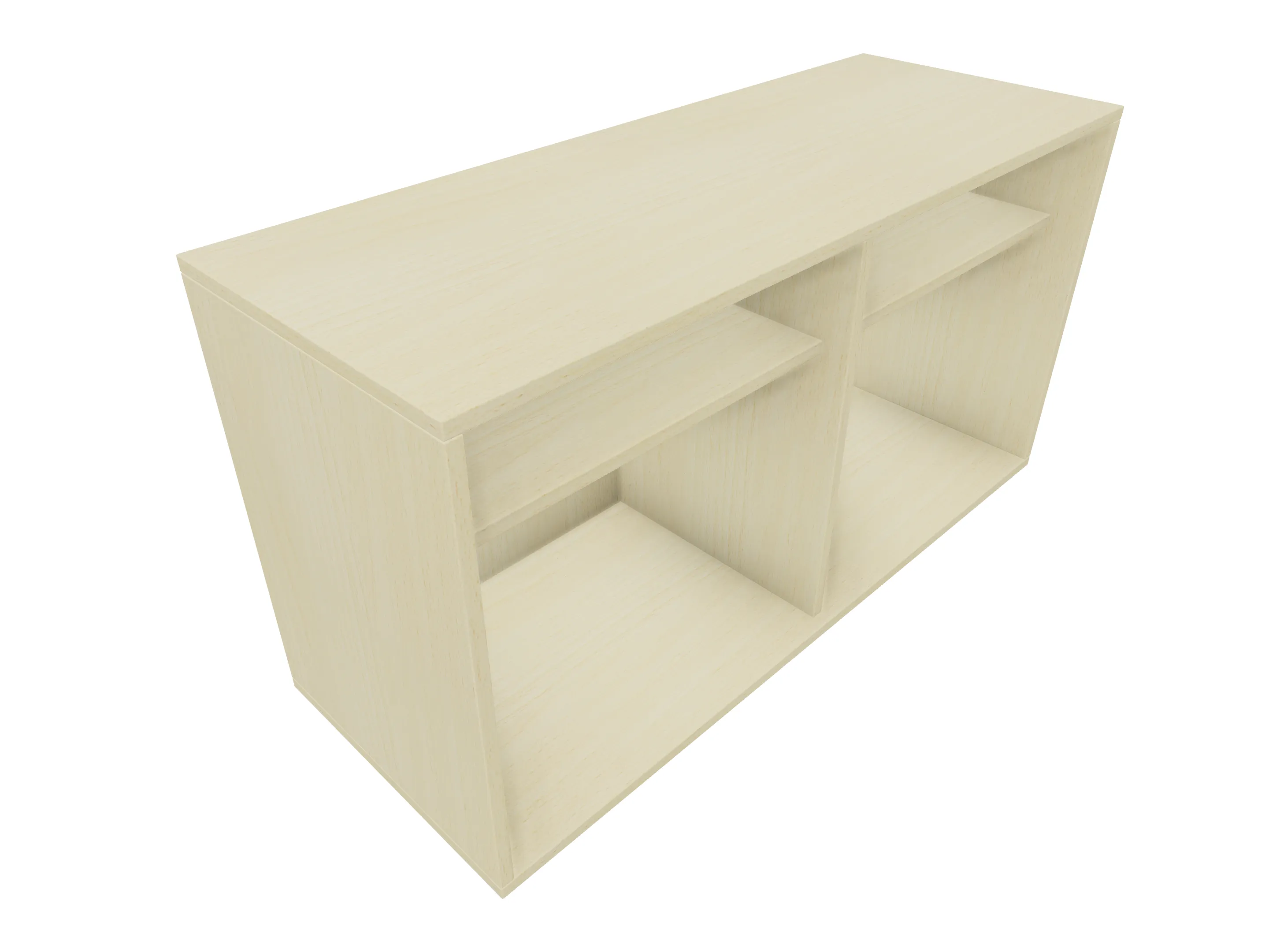 Opzetkast met middenwand en met twee legborden. Afmeting: 1181 x 615 x 441mm (BxHxD)