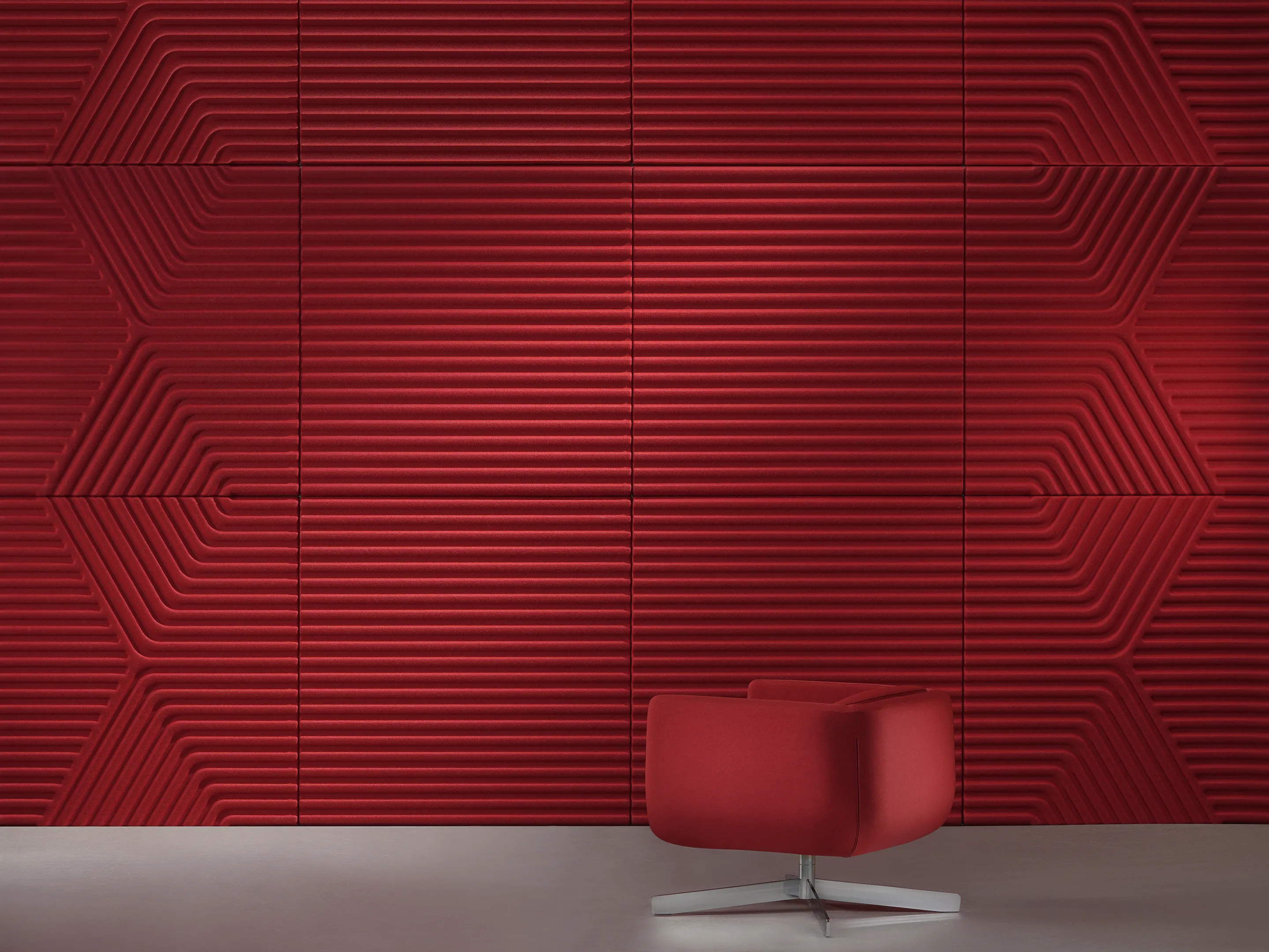 Akoestisch paneel met een verticale print en een NRC Waarde van 0,65. Bevestiging d.m.v. klittenbandprofiel. Geschikt voor bevestiging aan een wand. Inclusief schroeven, pluggen en installatiehandleiding.