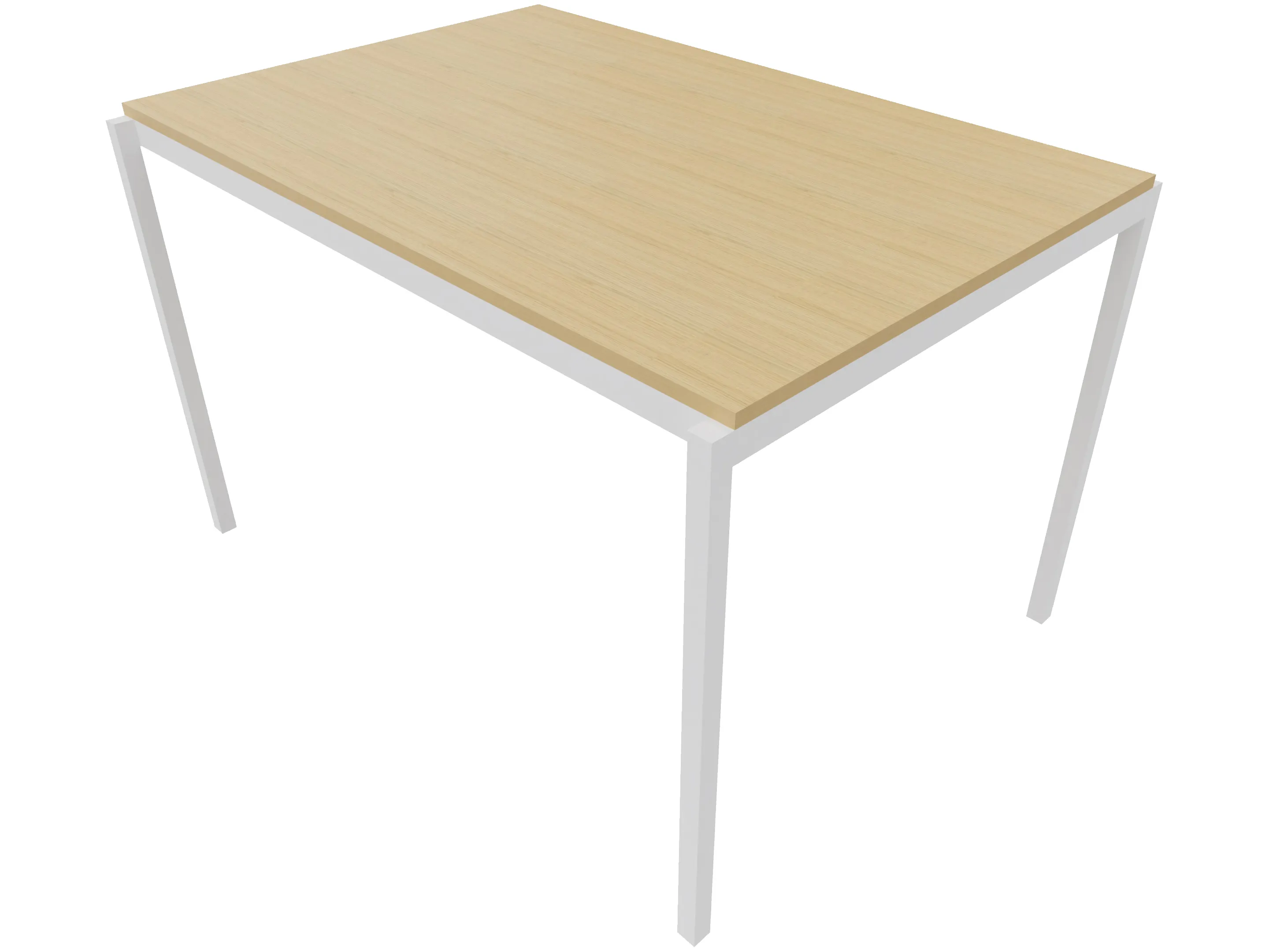 Kantinetafel uit een gelast frame (kokerprofiel 40 x 20mm), met vierkante poten 30 x 30mm, twee tafelpoten steken uit i.v.m. stapelen. Afmeting: 1200 x 800 x 750mm (BxDxH)