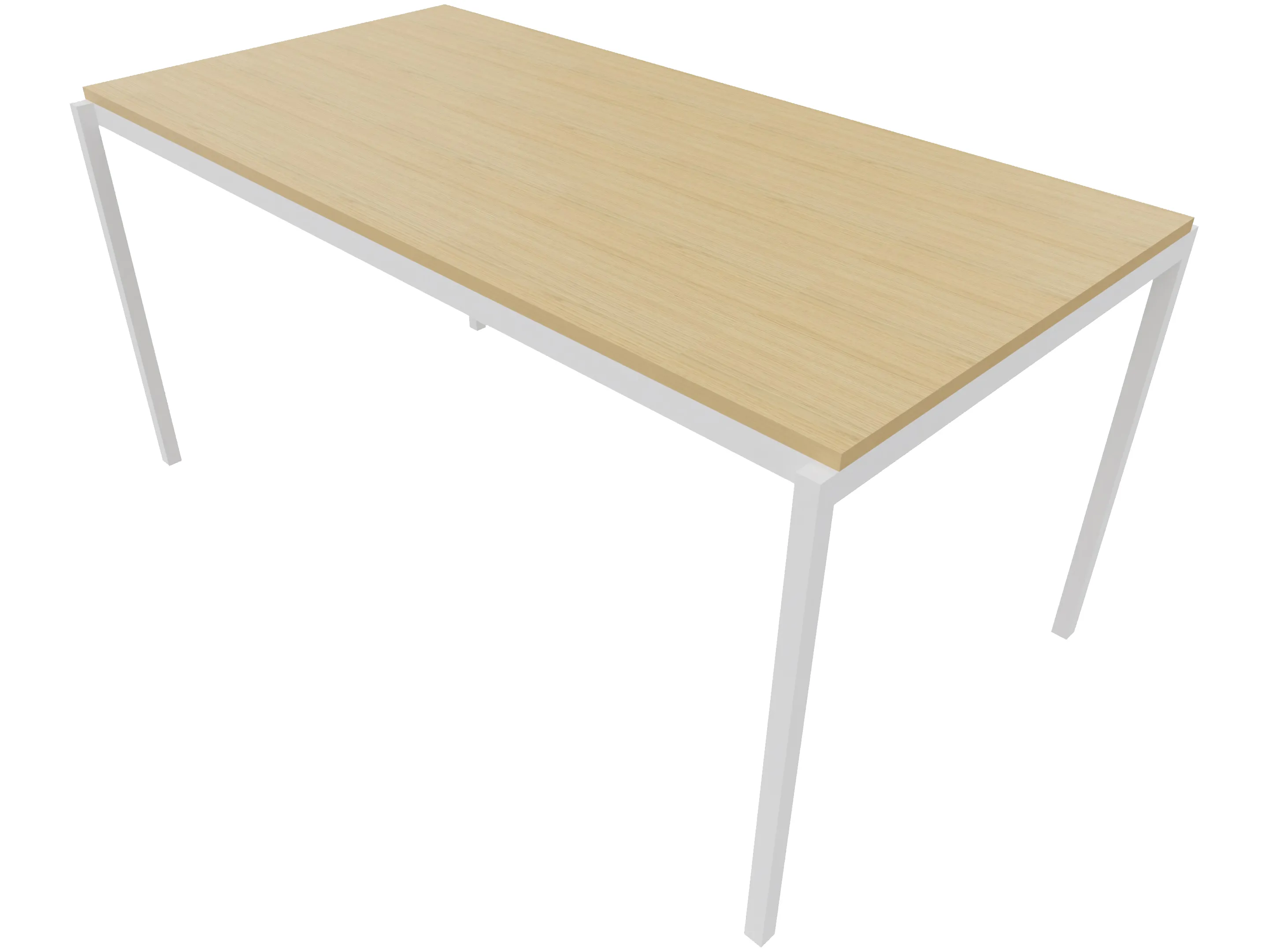 Kantinetafel uit een gelast frame (kokerprofiel 40 x 20mm), met vierkante poten 30 x 30mm, twee tafelpoten steken uit i.v.m. stapelen. Afmeting: 1600 x 800 x 750mm (BxDxH)