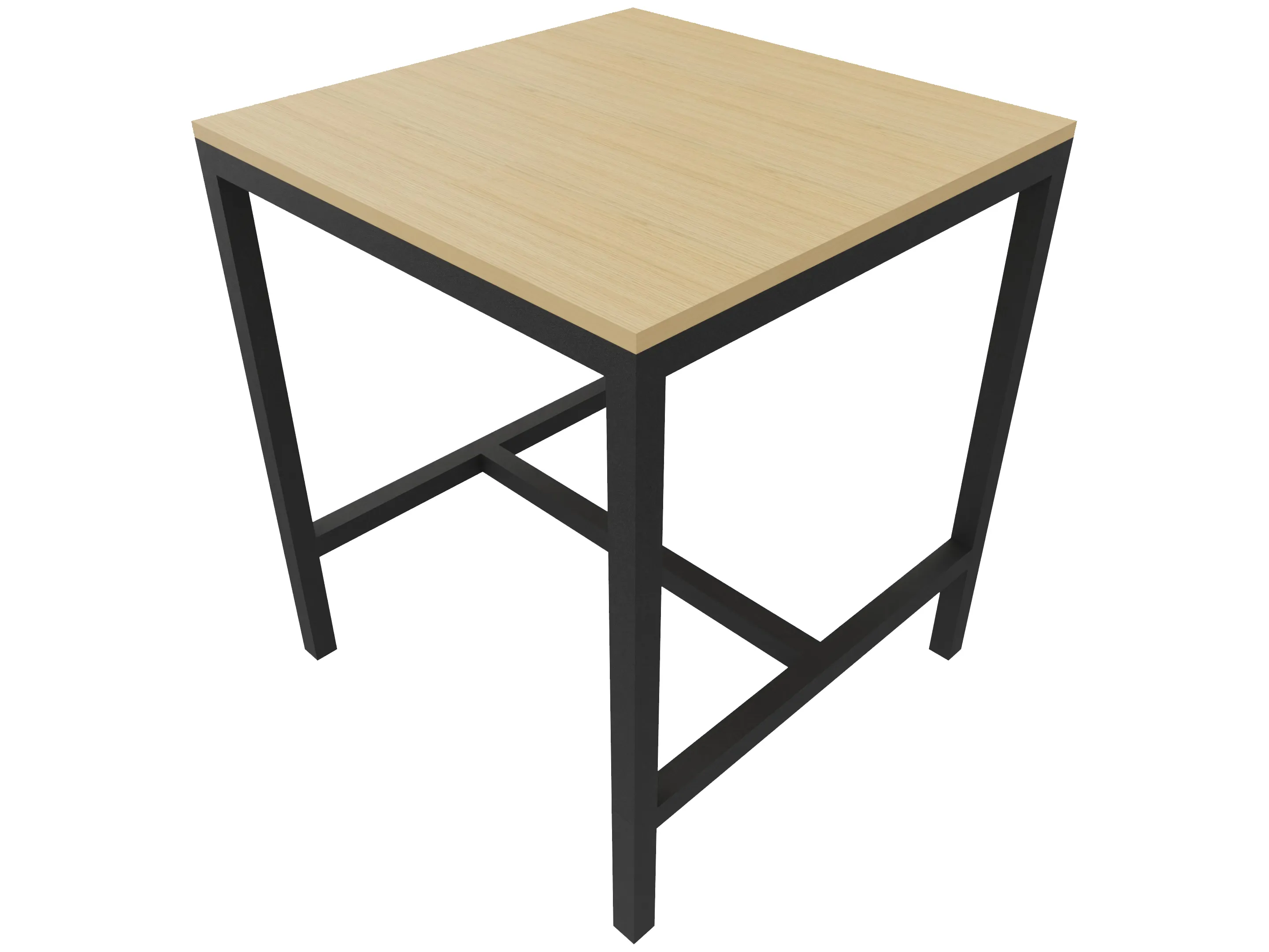 Bartafel met een H-frame (voetensteun), hoogte 1100mm. Volledig uit één deel gelast met kokerprofiel 40 x 40mm. Afmeting: 800 x 800 x 1100mm (BxDxH).