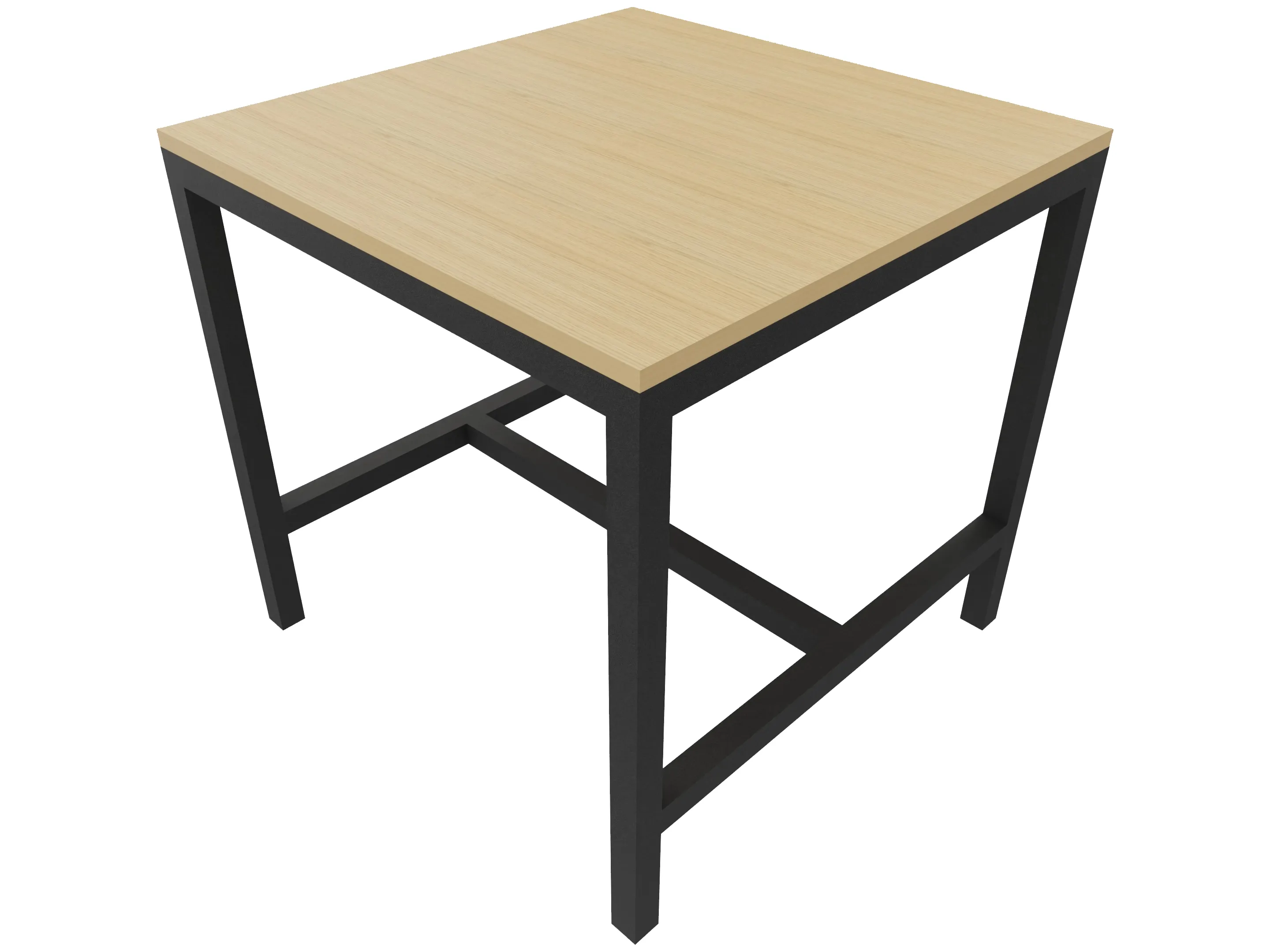 Kantinetafel met een H-frame (voetensteun), hoogte 750mm. Volledig uit één deel gelast met kokerprofiel 40 x 40mm. Afmeting: 800 x 800 x 750mm (BxDxH).