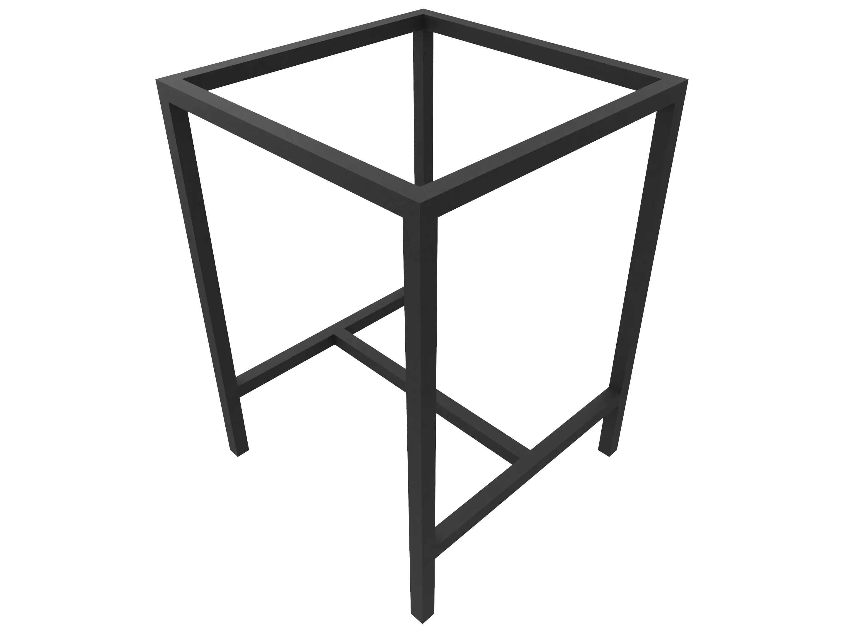 Bartafel onderstel met een H-frame (voetensteun), hoogte 900mm. Volledig uit één deel gelast met kokerprofiel 40 x 40mm. Afmeting: 800 x 800 x 900mm (BxDxH).