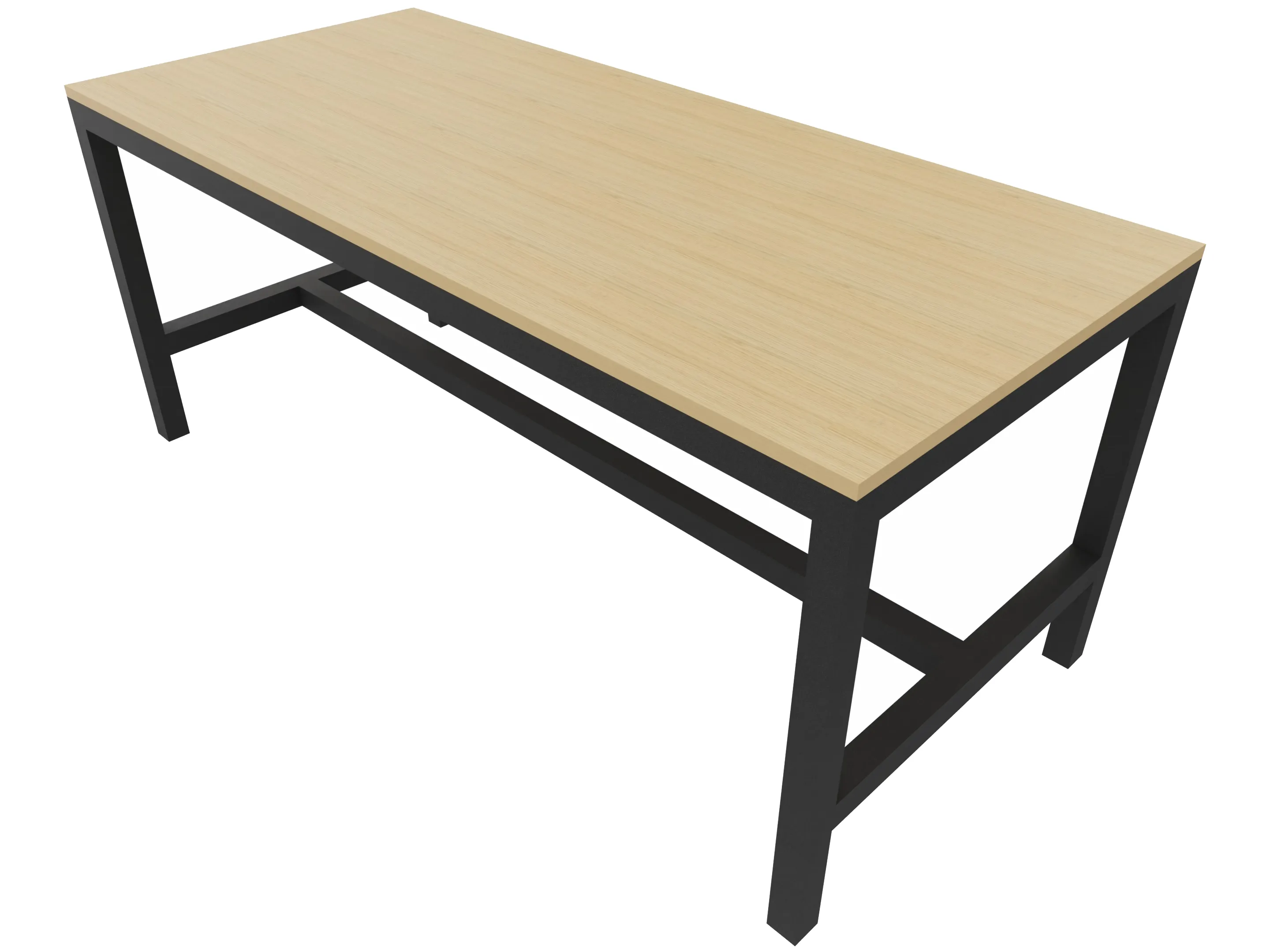 Kantinetafel met een H-frame (voetensteun), hoogte 750mm. Volledig uit één deel gelast met kokerprofiel 50 x 50mm. Afmeting: 1800 x 800 x 750mm (BxDxH).