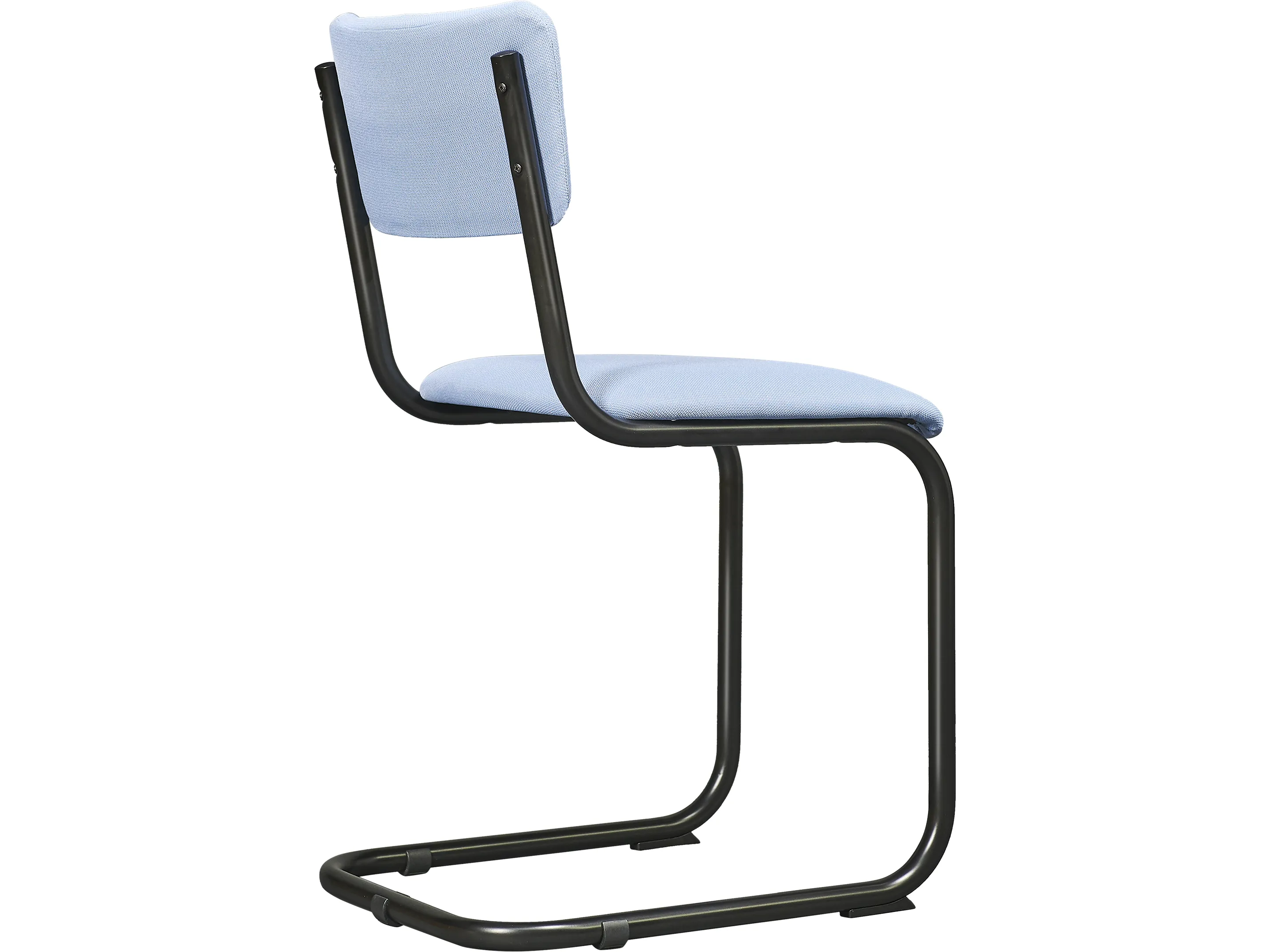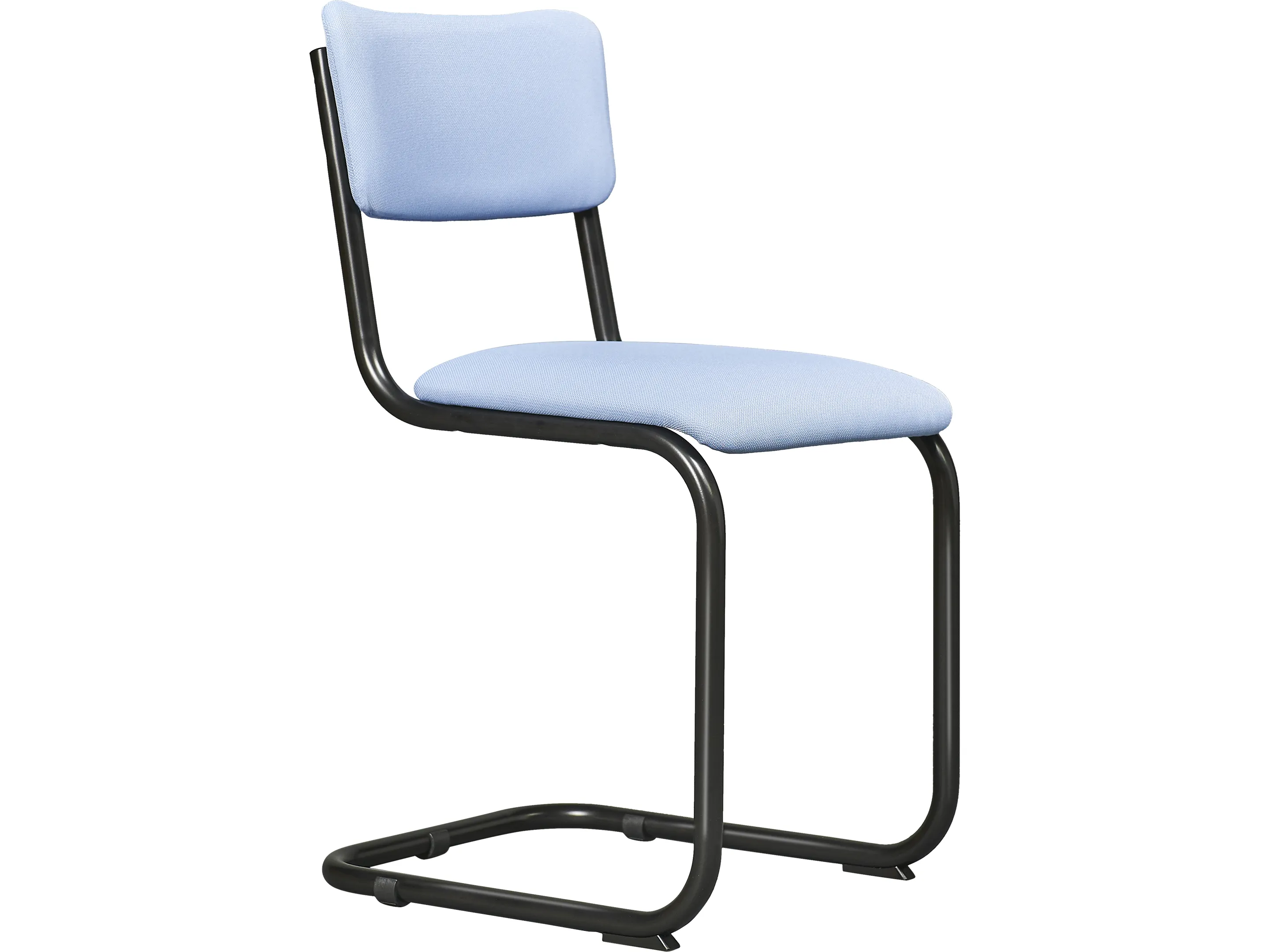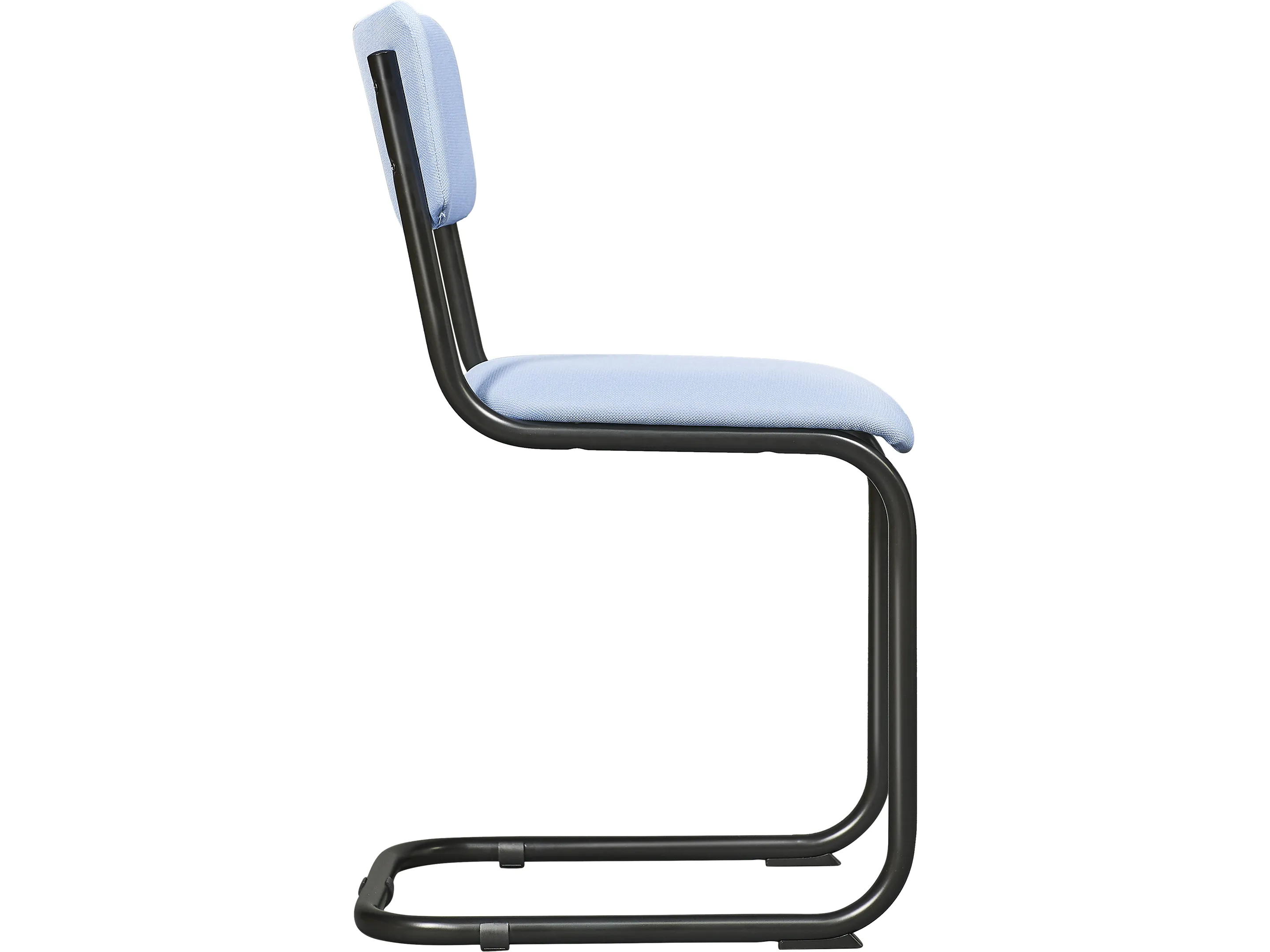 Kantinestoel met gestoffeerde zitschalen, sledeframe afgewerkt met glijdoppen in kleur zwart.