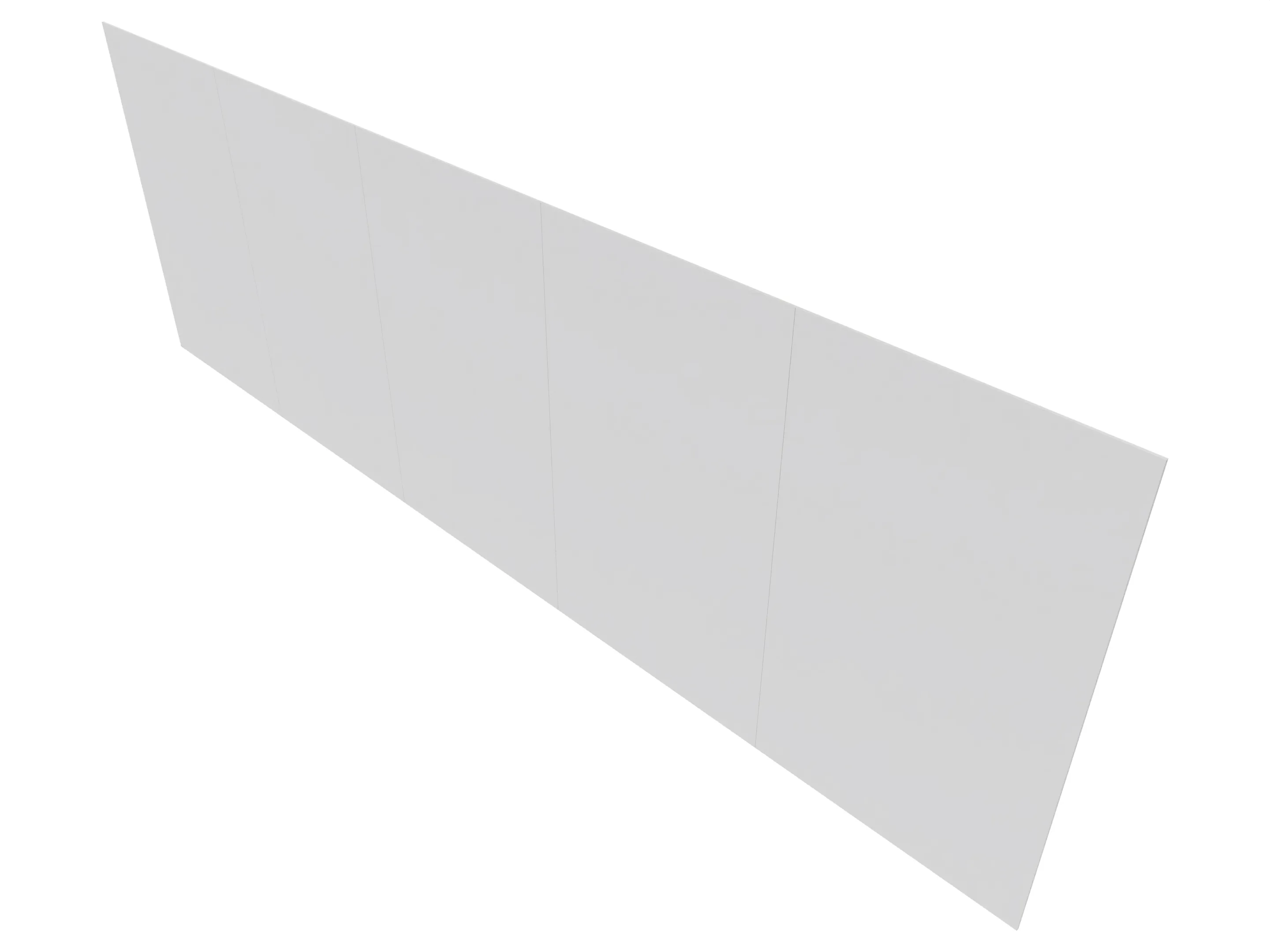 Rechthoekig whiteboard bestaande uit 5 panelen met rechte hoeken zonder frame. Door de haarscherpe randafwerking sluiten de panelen nauwkeurig op elkaar aan met een minimale naad. Afmeting: 5900 x 1980mm (B x H).