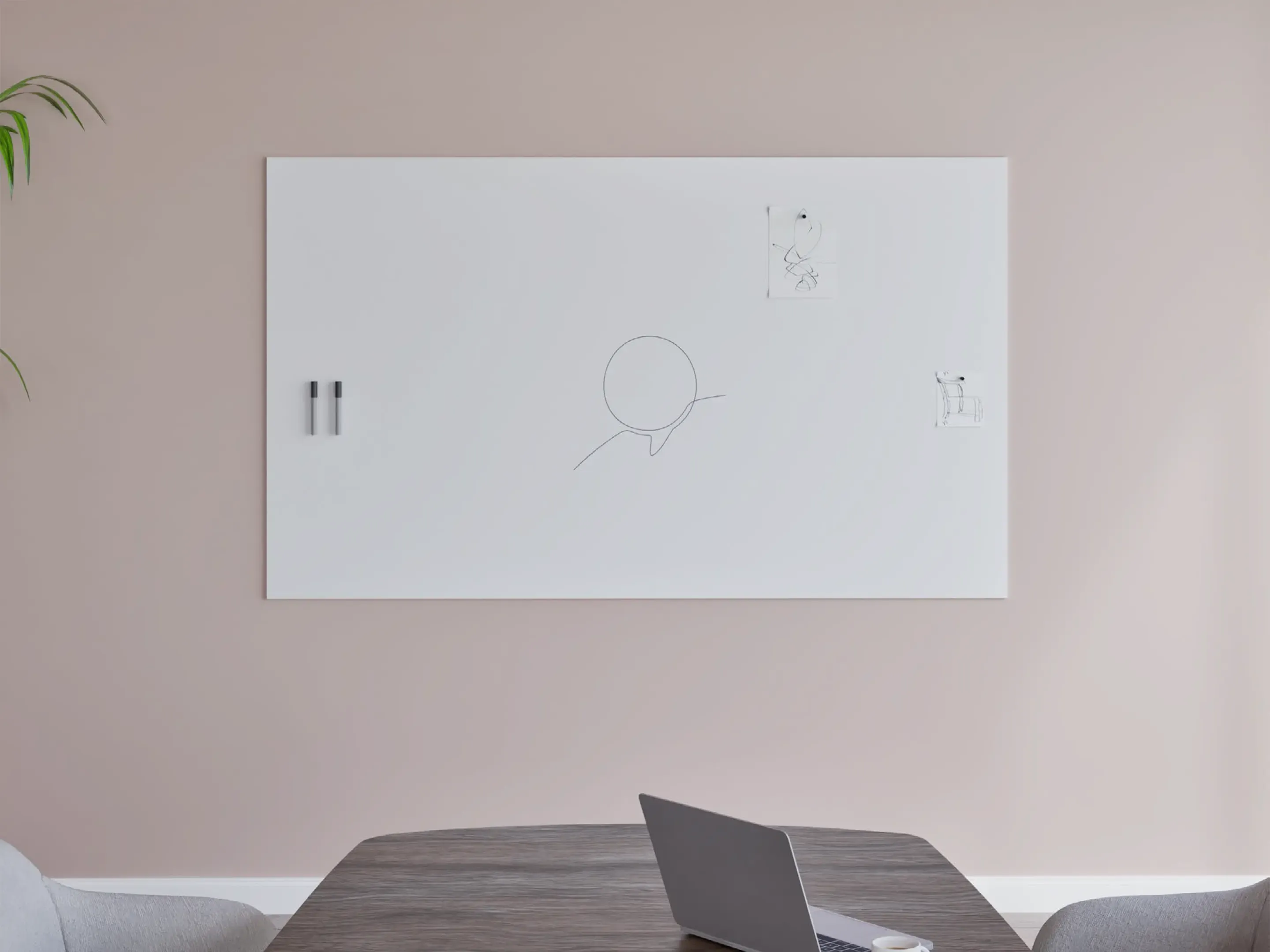 Rechthoekig whiteboard met rechte hoeken, zonder frame en wit aan alle zichtkanten. Kan zowel horizontaal als verticaal worden opgehangen. Afmeting: 980 x 1480mm.