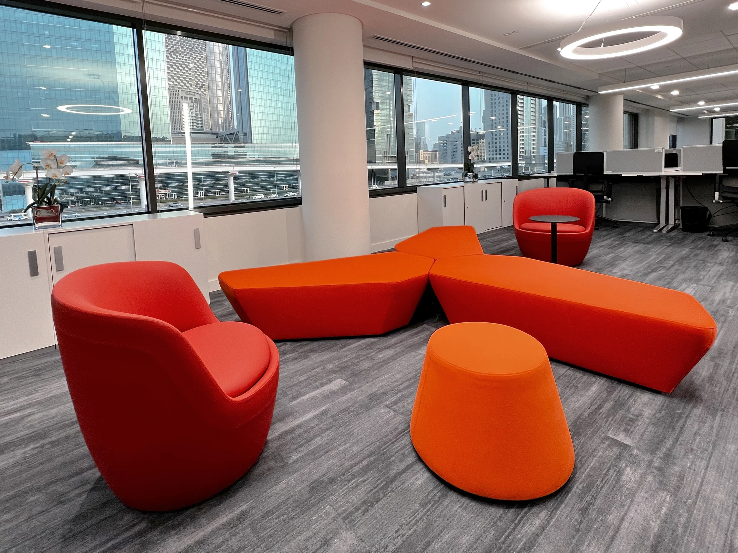 Fauteuil op vast onderstel (niet draaibaar) en standaard rugstoffering.
