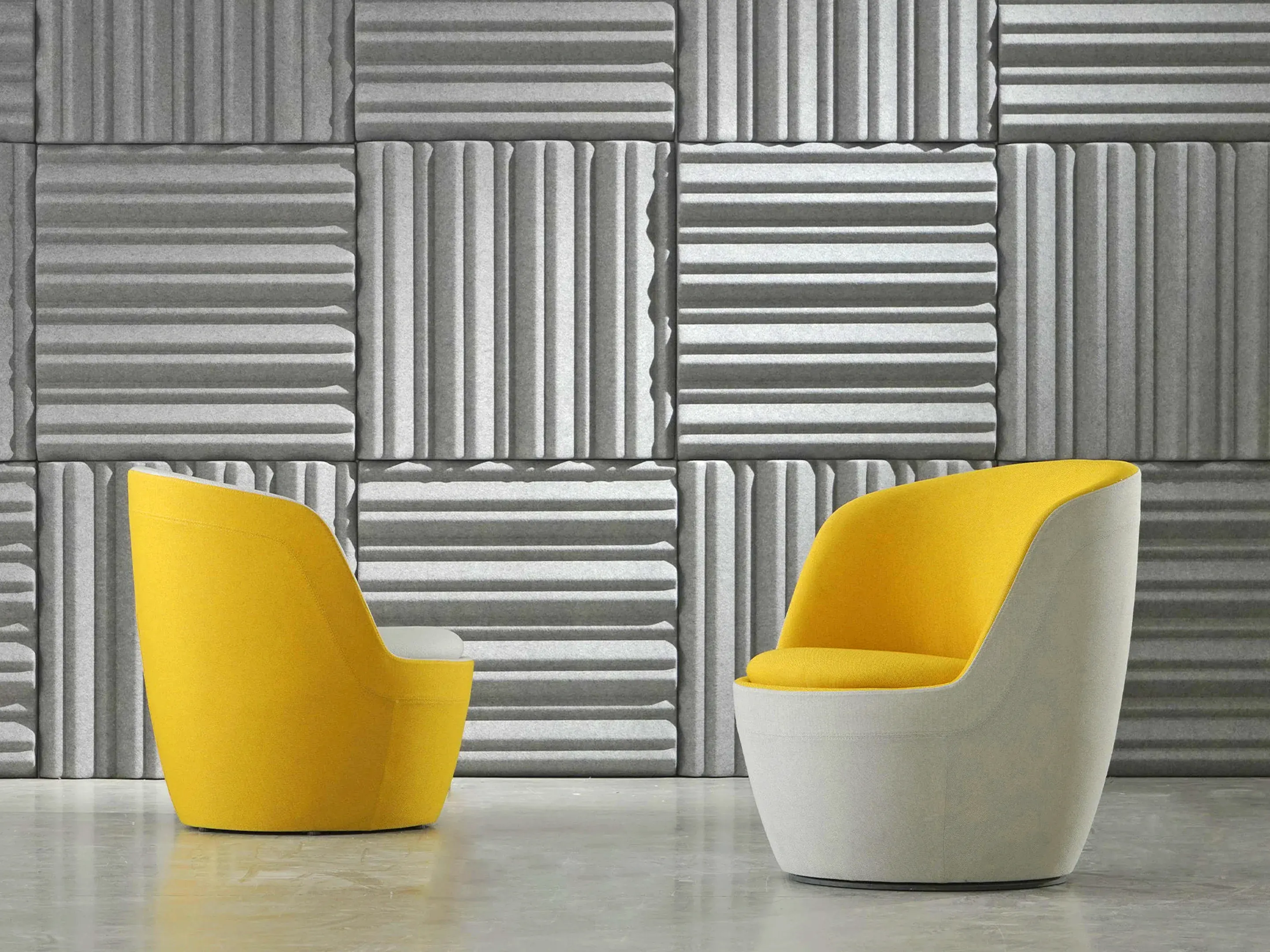 Fauteuil op draaibaar onderstel (auto-return) en quilting rugstoffering.