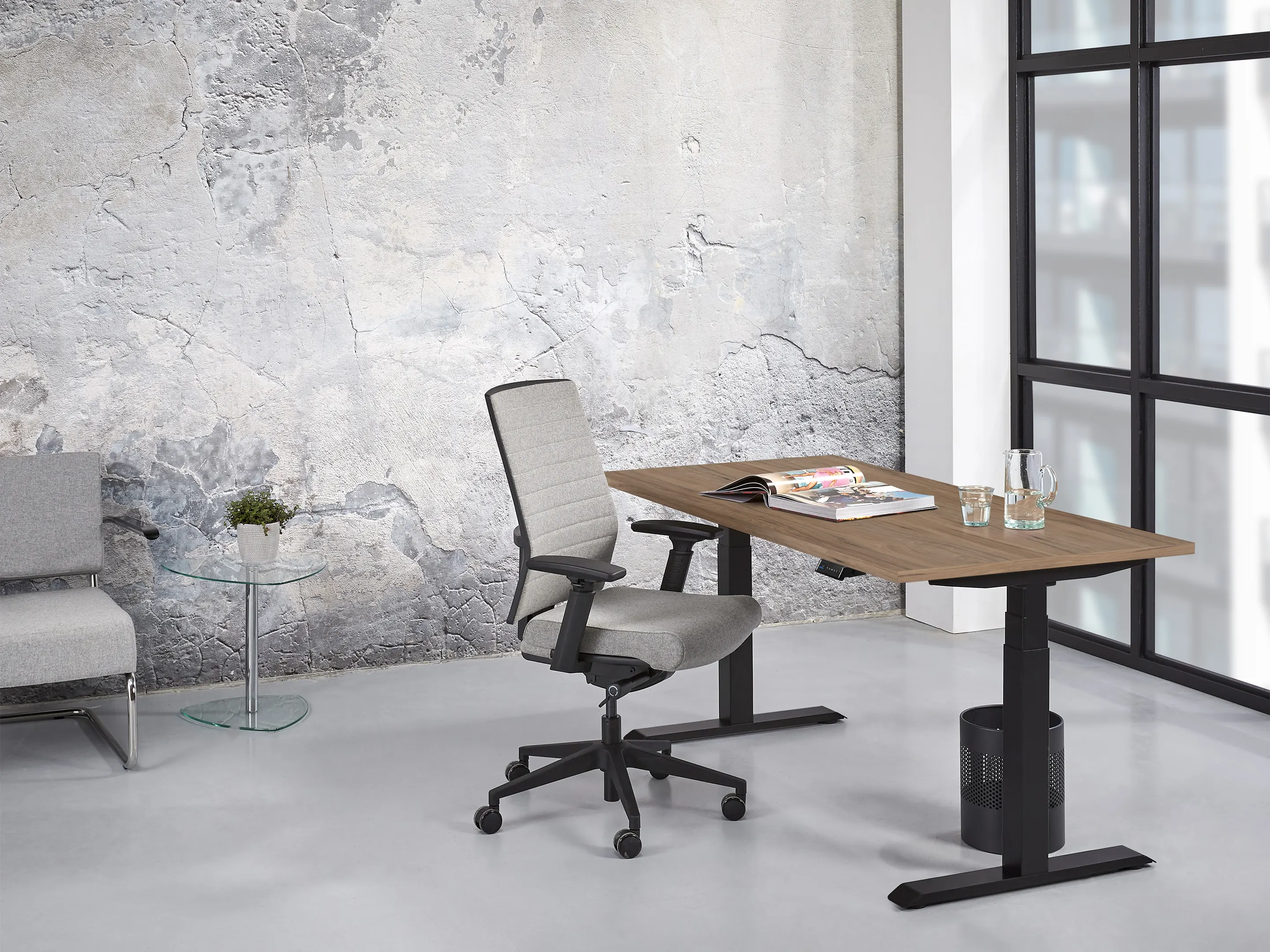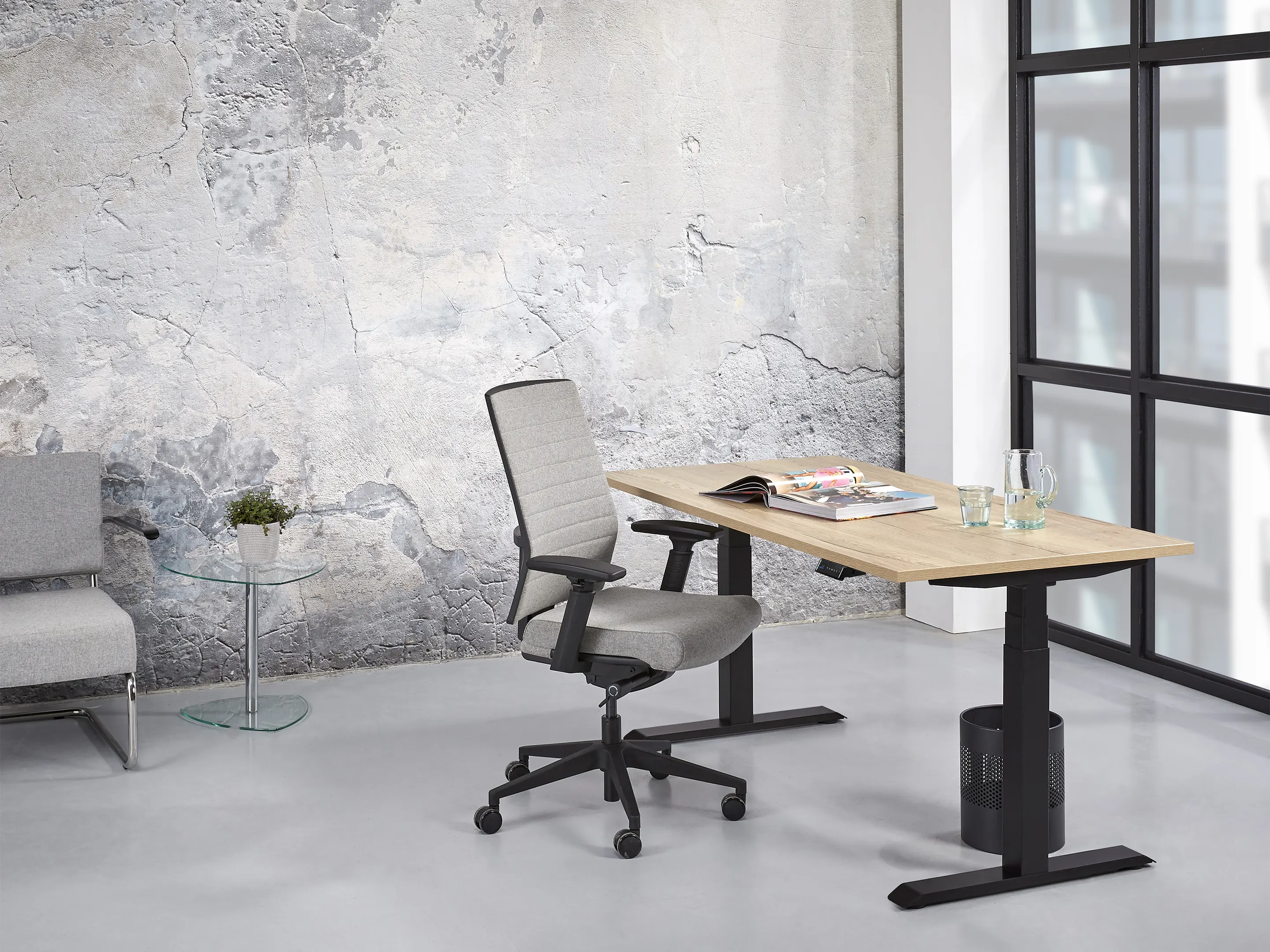 Onderstel bestaande uit 2 gebogen tenen van 70x9cm, geschikt voor bureaubreedte 108-180cm, Hoogte instelbaar van 65 tot 130cm, 3 koloms onderstel met 2 motoren. Exclusief bedieningspaneel