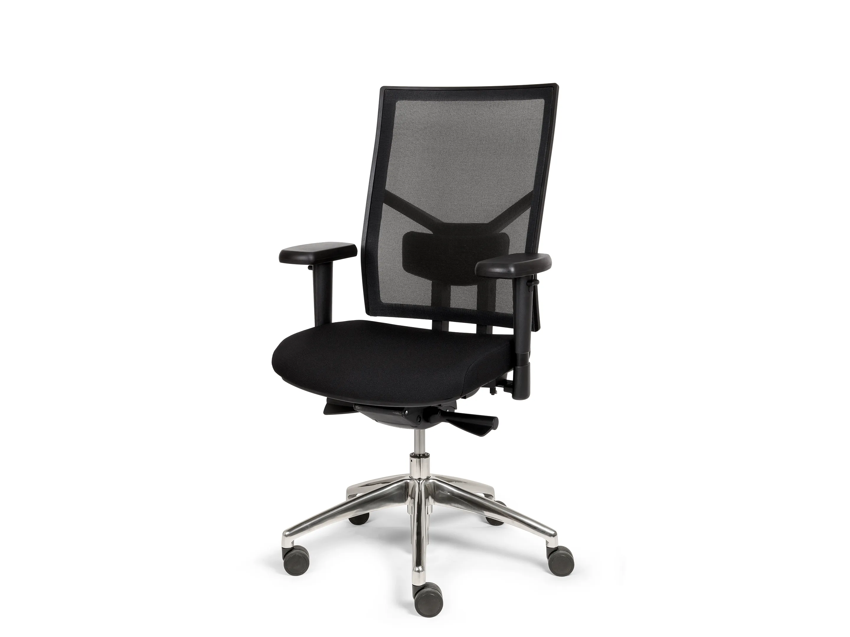 Hoogte verstelbare rug, diepte verstelbare lendensteun, Zitting 7cm verstelbaar, Comfort zitting, In hoogte-, breedte- en diepte verstelbare armleggers, Multifunctionele wielen 60mm, Automatische gewichtsregeling.
