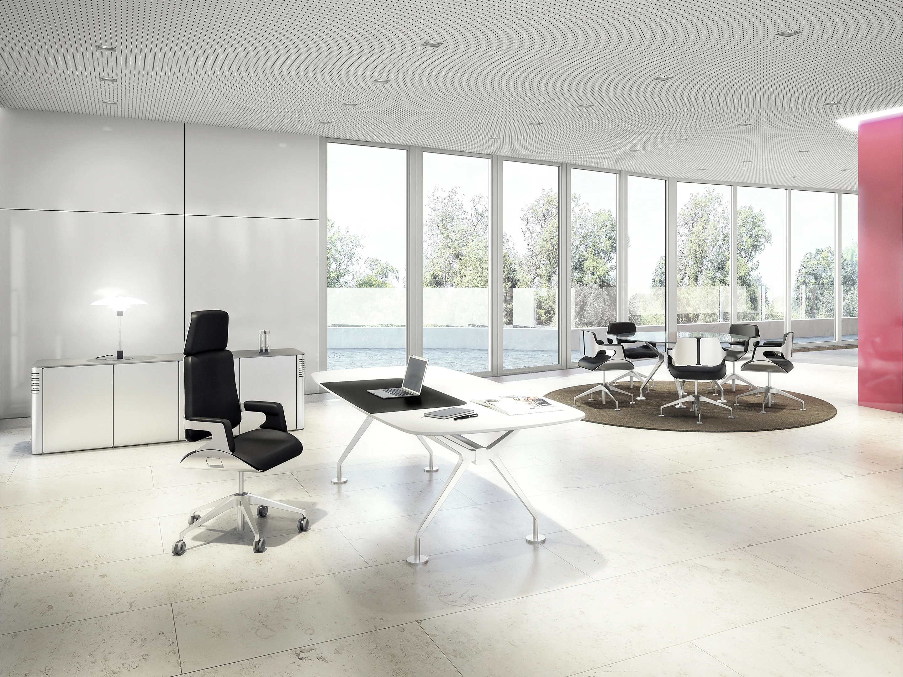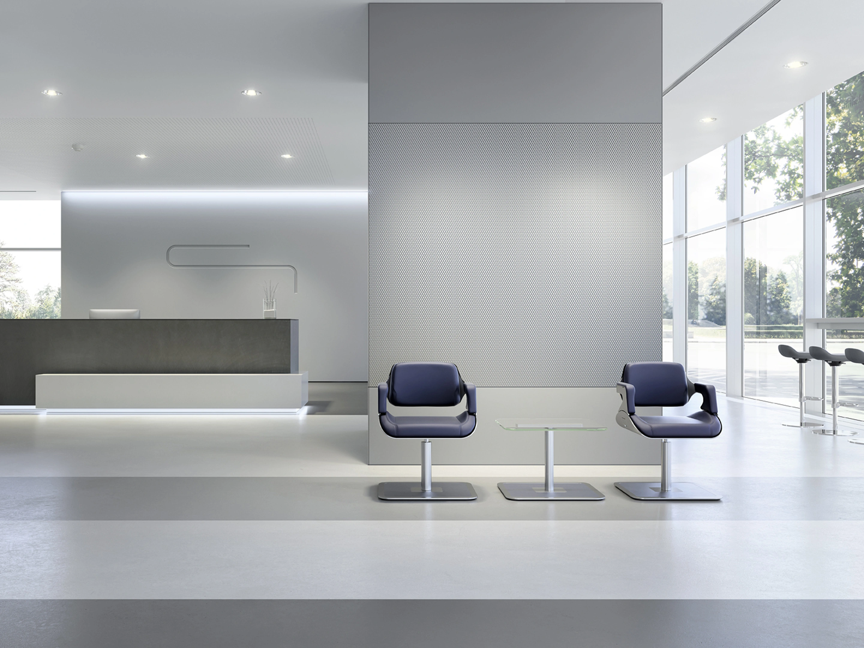 Incl. dynamische rugleuning, aluminium 4-teens voetkruis met glijders, beklede armleggers, gemonteerd in een doos. Standaard is het frame gepoedercoat