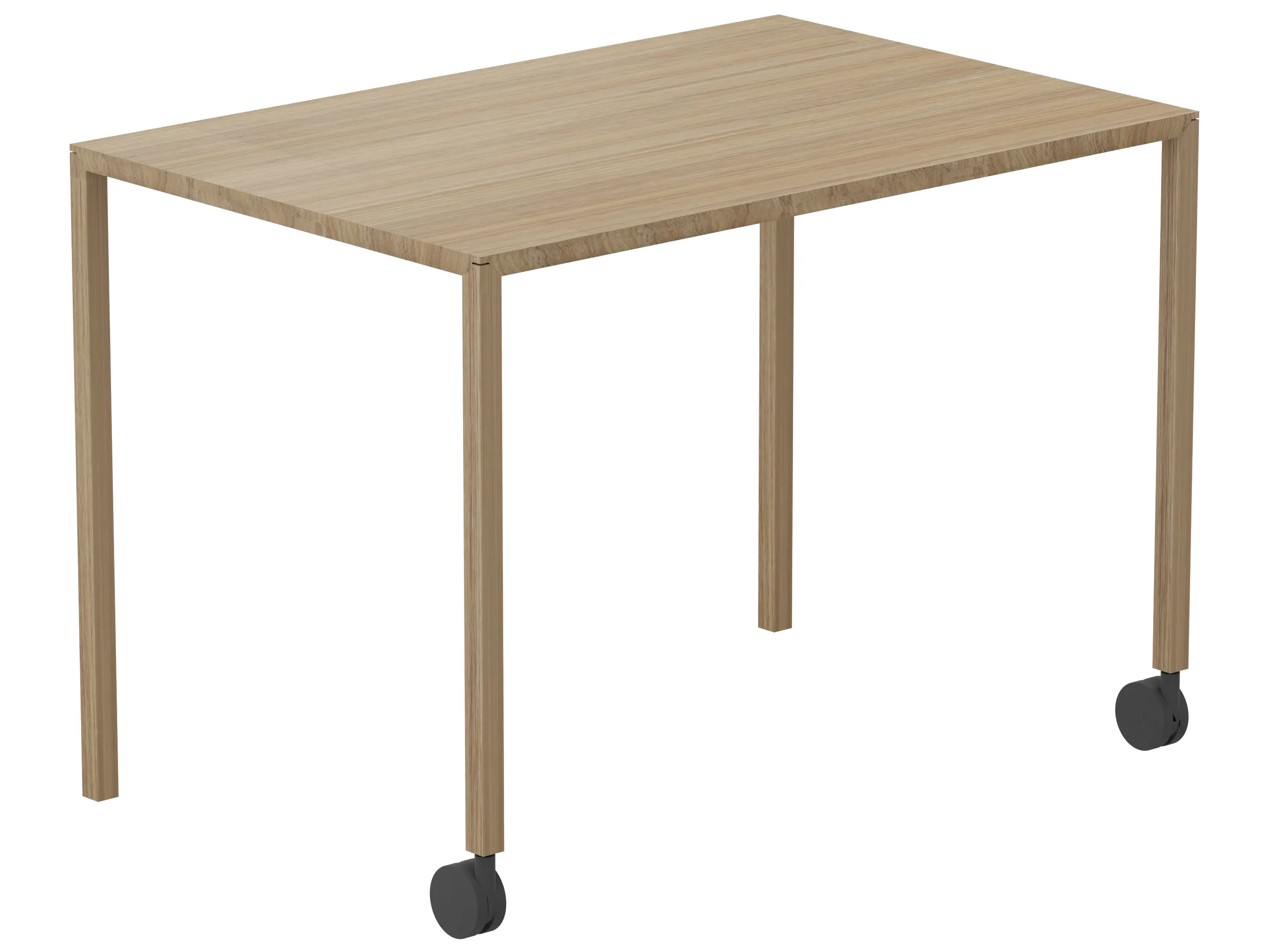 Vergadertafel in rechthoekige vorm met 2 wielen. Afmeting: 700 x 1050 x 750mm (BxDxH). Fineerrichting van de Slim Flex staat haaks op de fineerrichting van de Slim tafel.