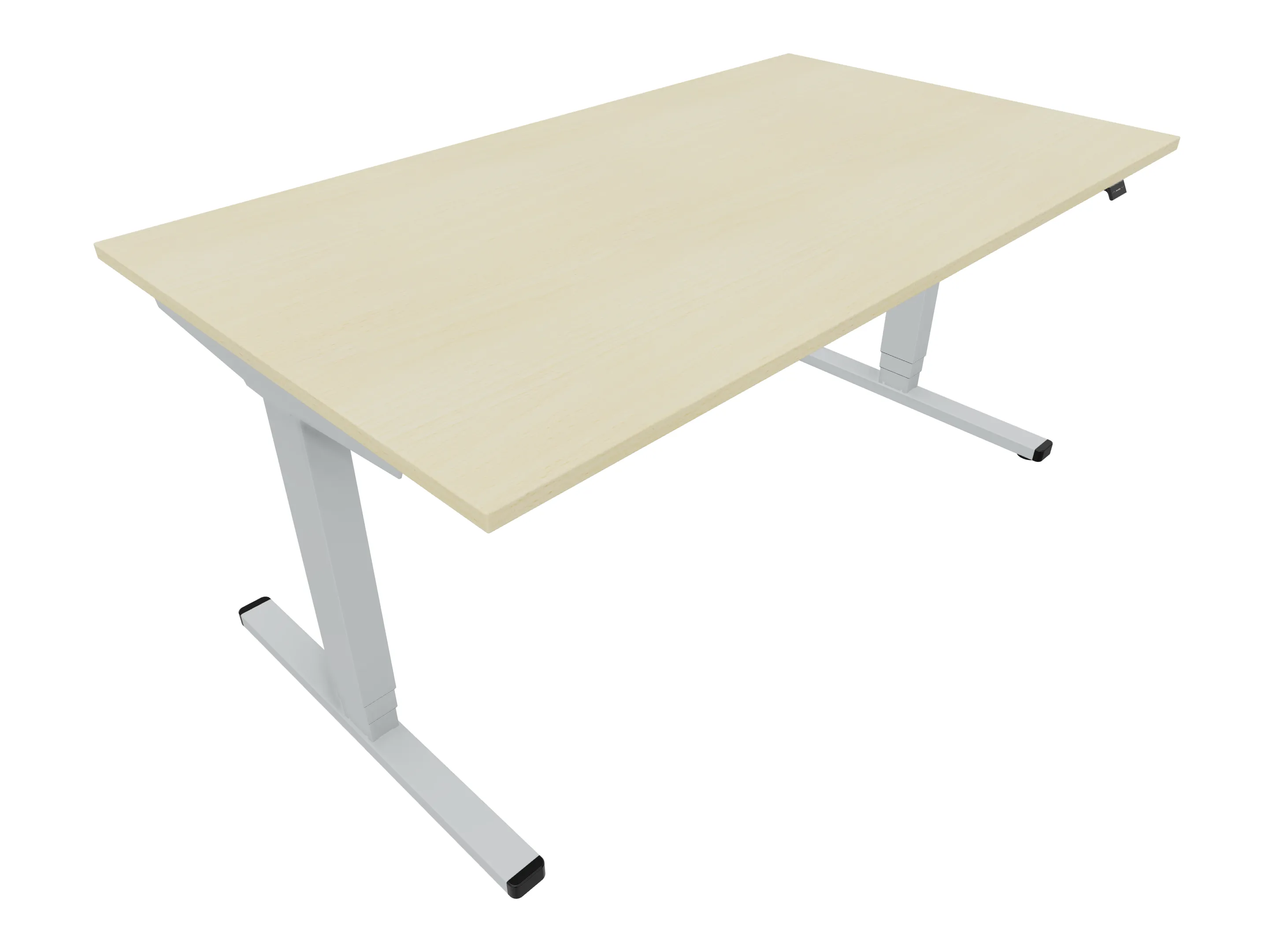 Bureau met twee poten (T-poot, elektrisch hoogte instelbaar tussen 650-1250mm d.m.v. bediening) in de afmeting: 1600 x 800mm (BxD)