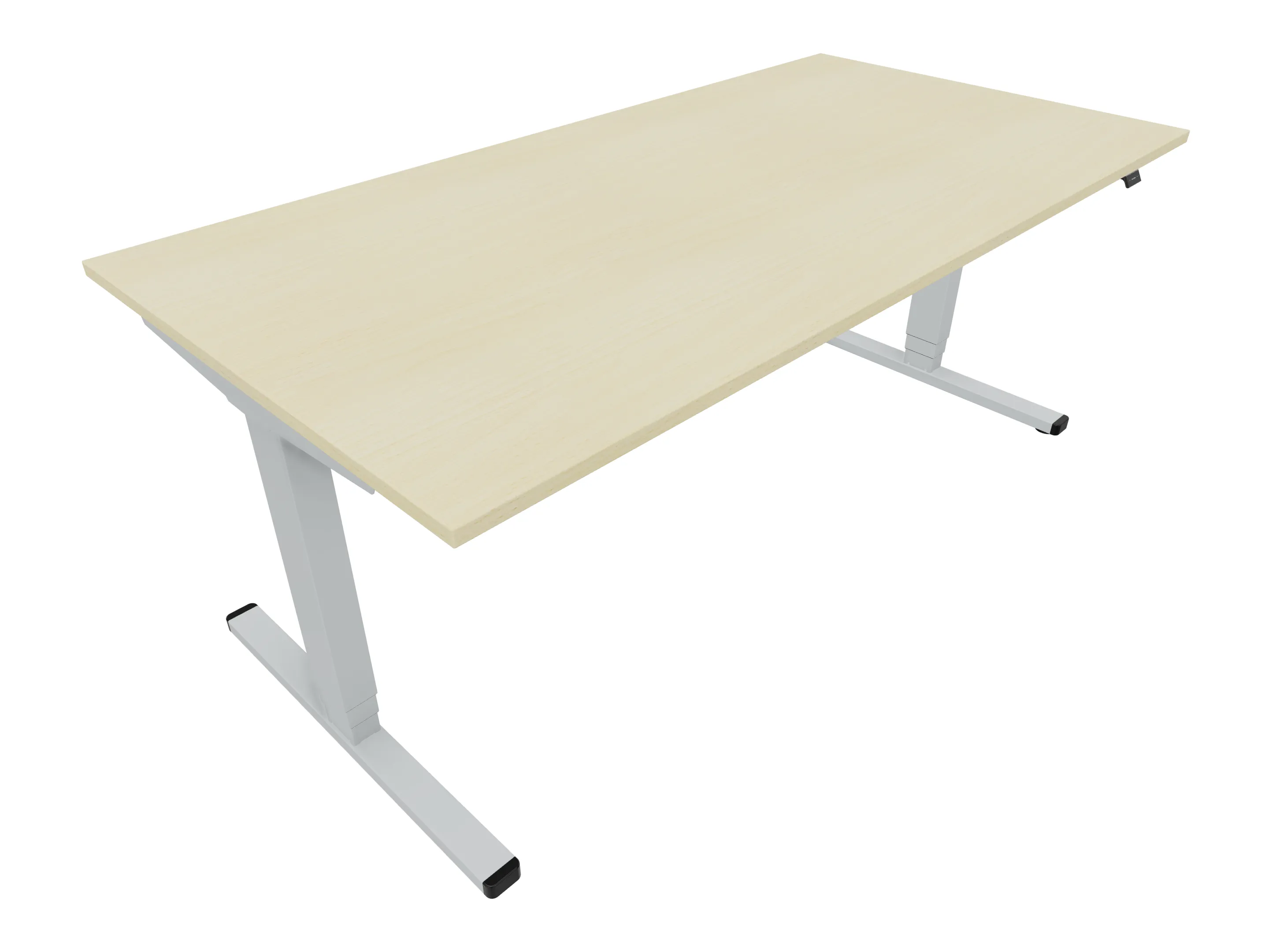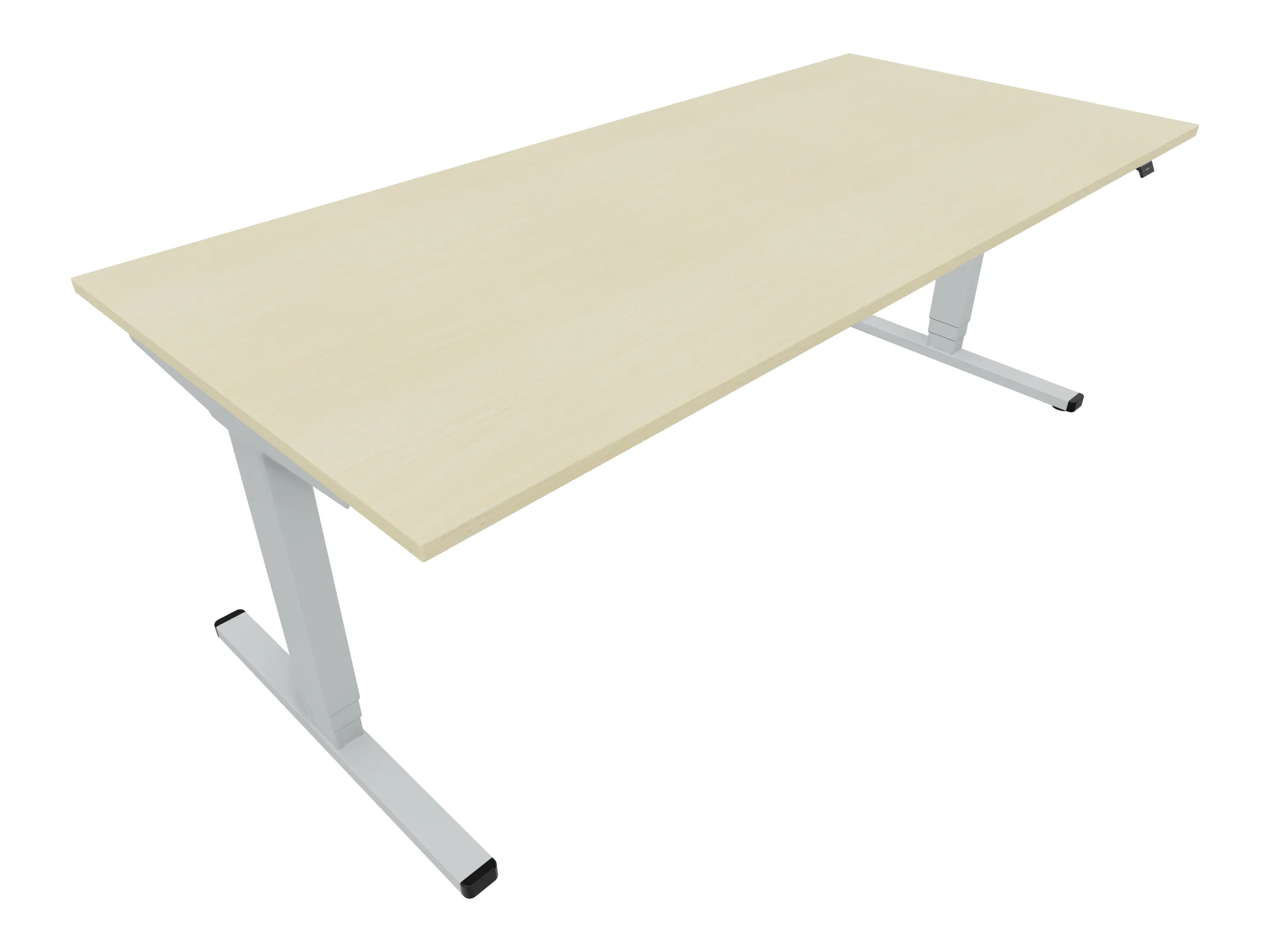 Bureau met twee poten (T-poot, elektrisch hoogte instelbaar tussen 650-1250mm d.m.v. bediening) in de afmeting: 2000 x 800mm (BxD)