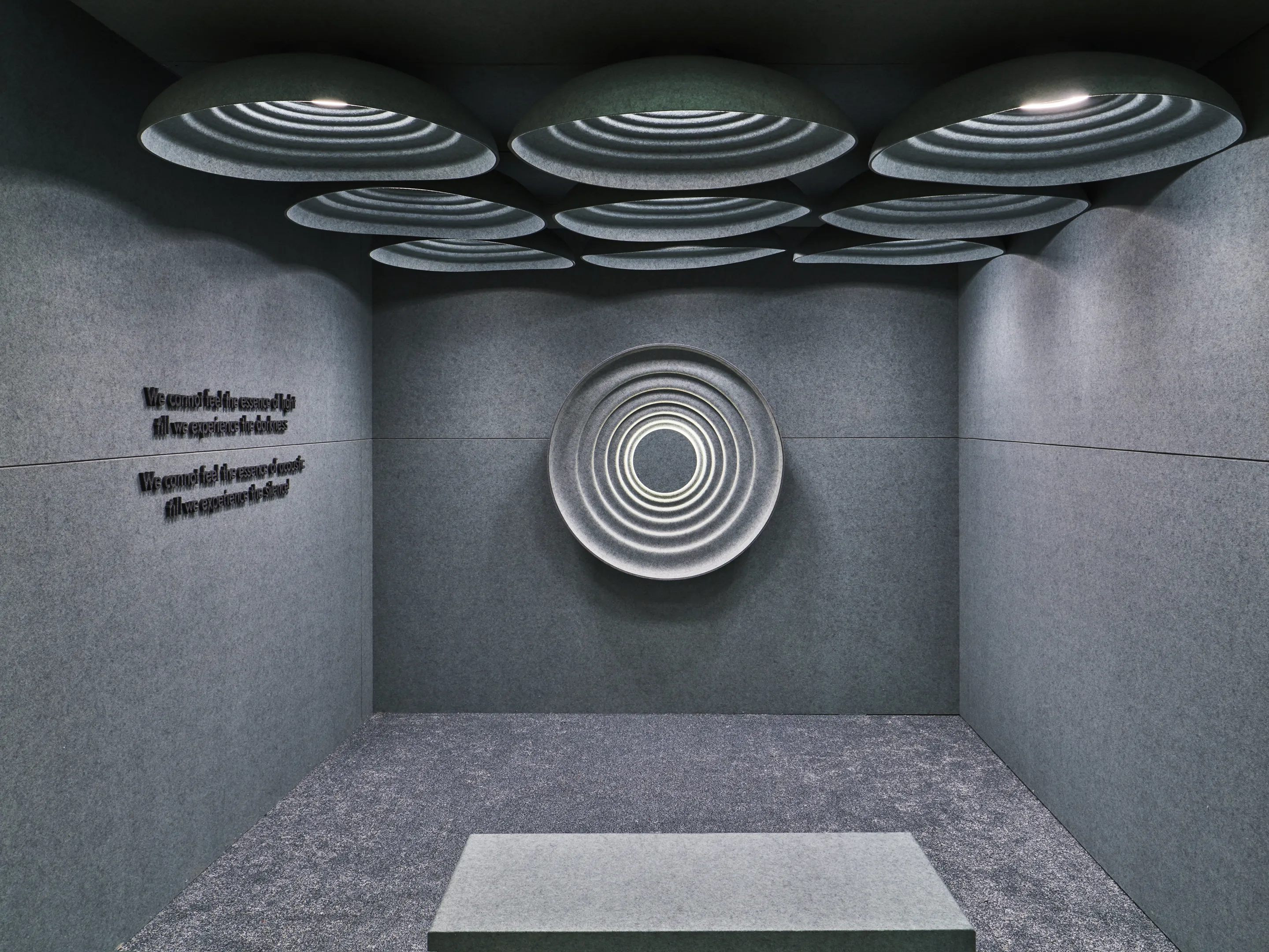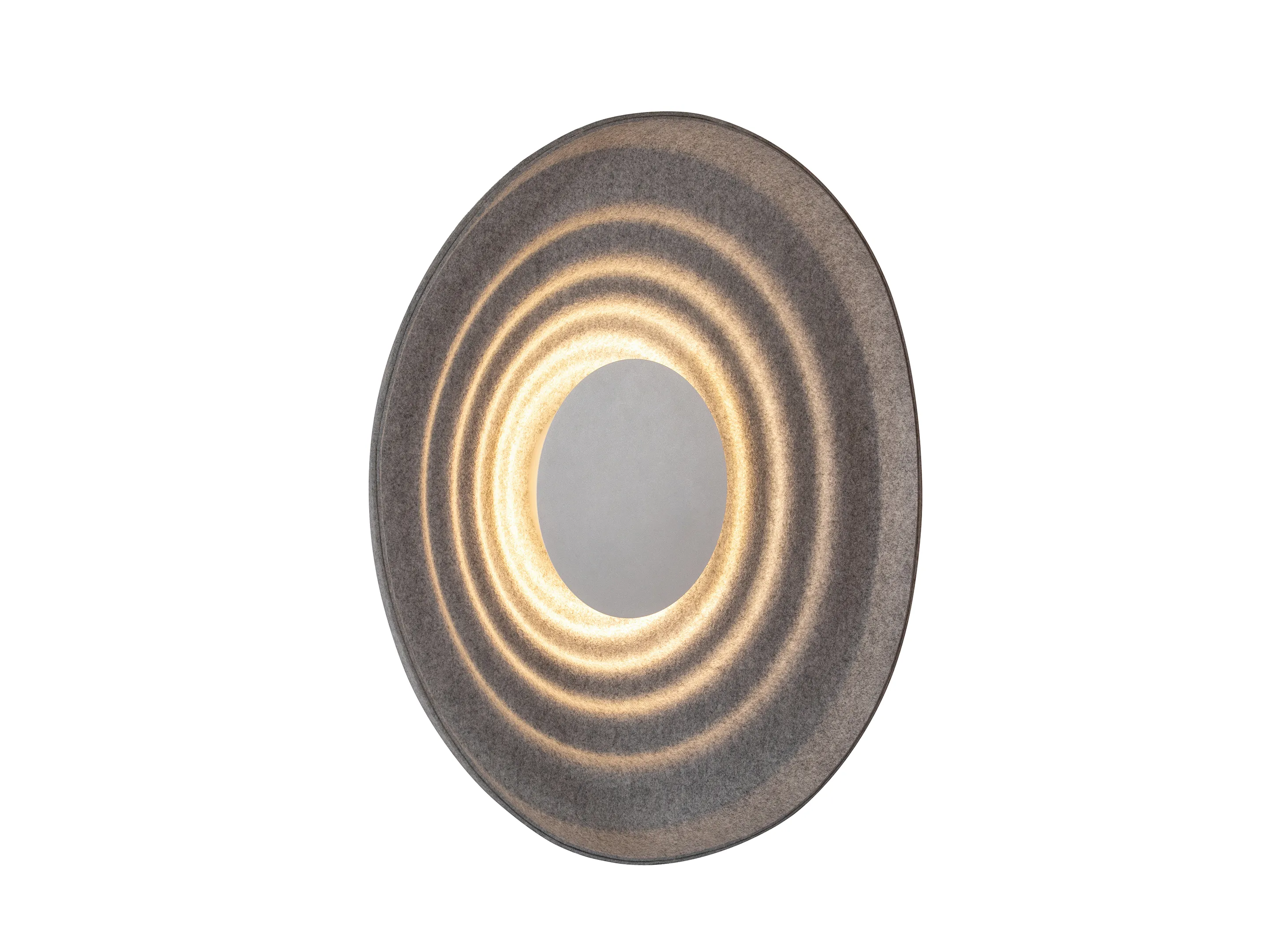 Akoestische hanglamp met dimbare sfeerverlichting incl. 25W LED lamp van Ø22cm. Verlichting komt vanaf de onderzijde. De lamp wordt opgehangen met stalen ophangdraad.
