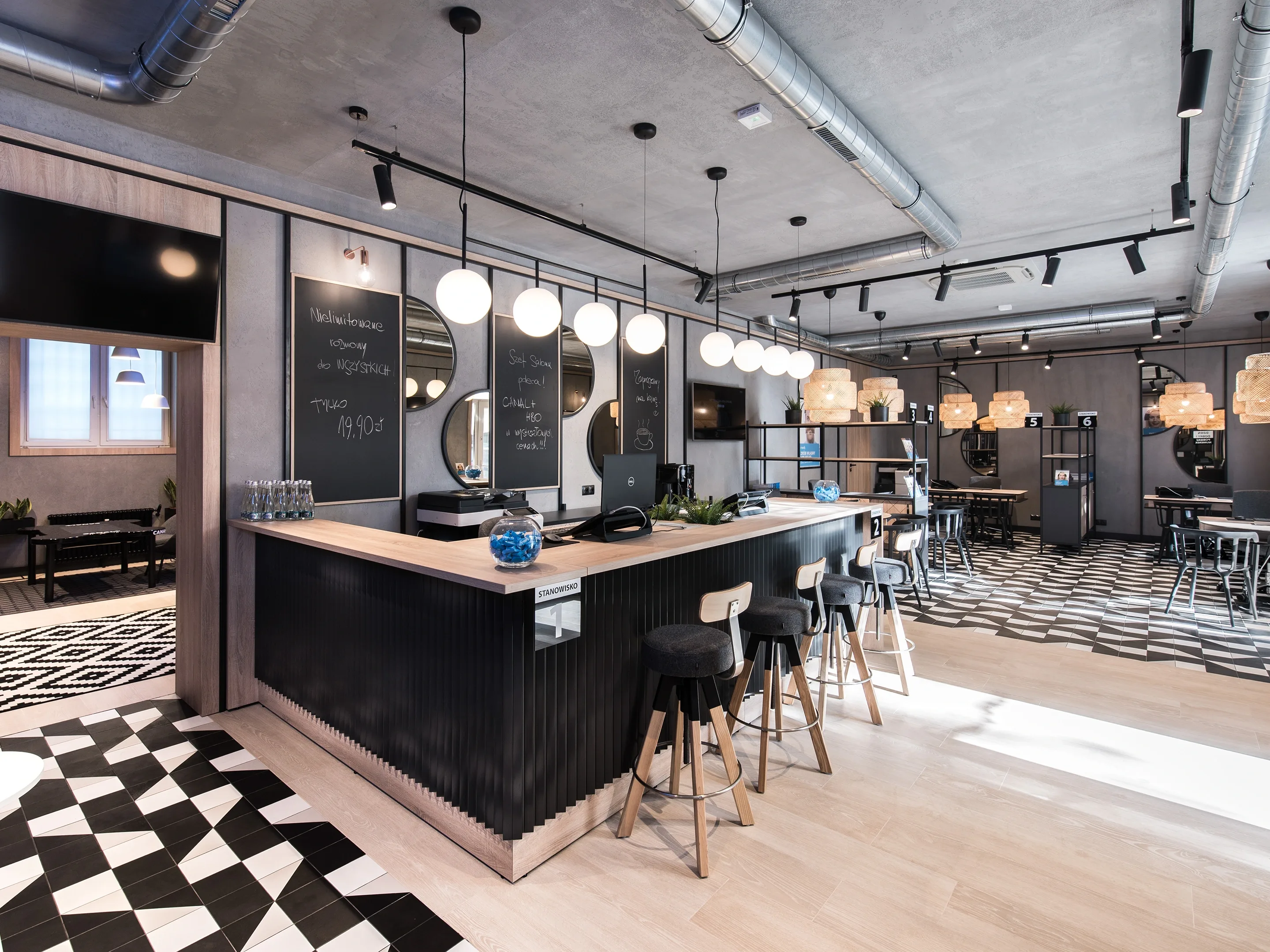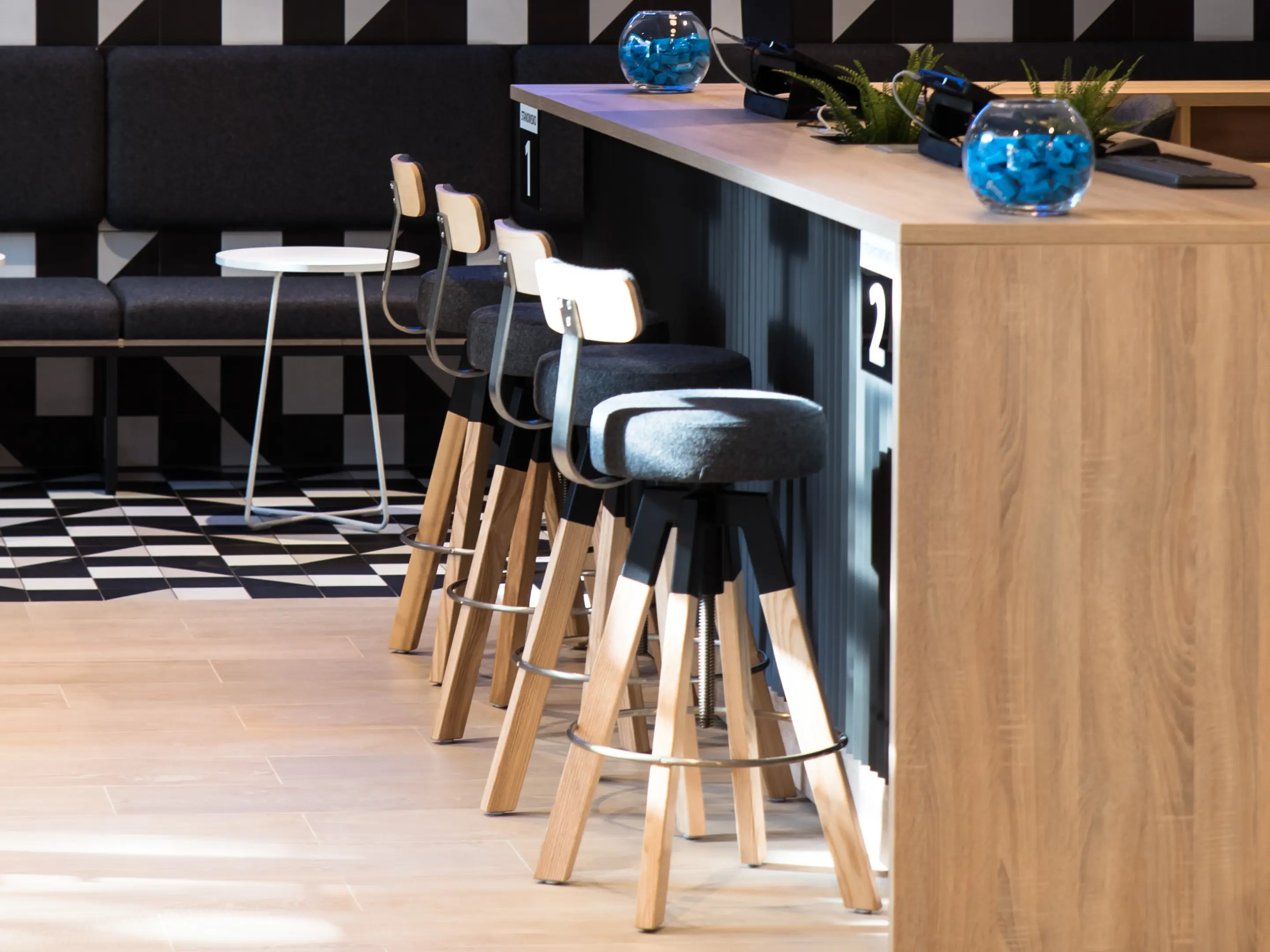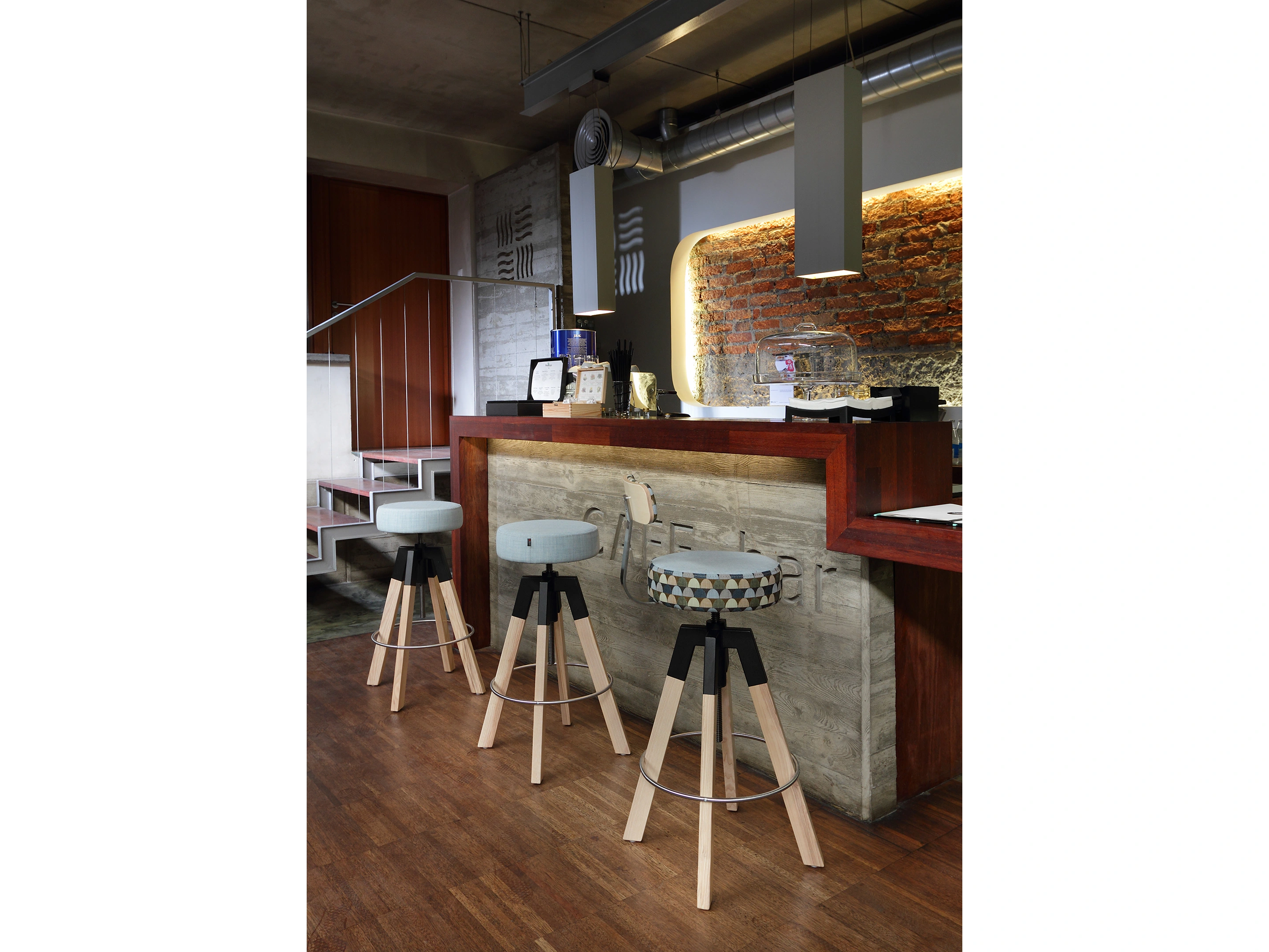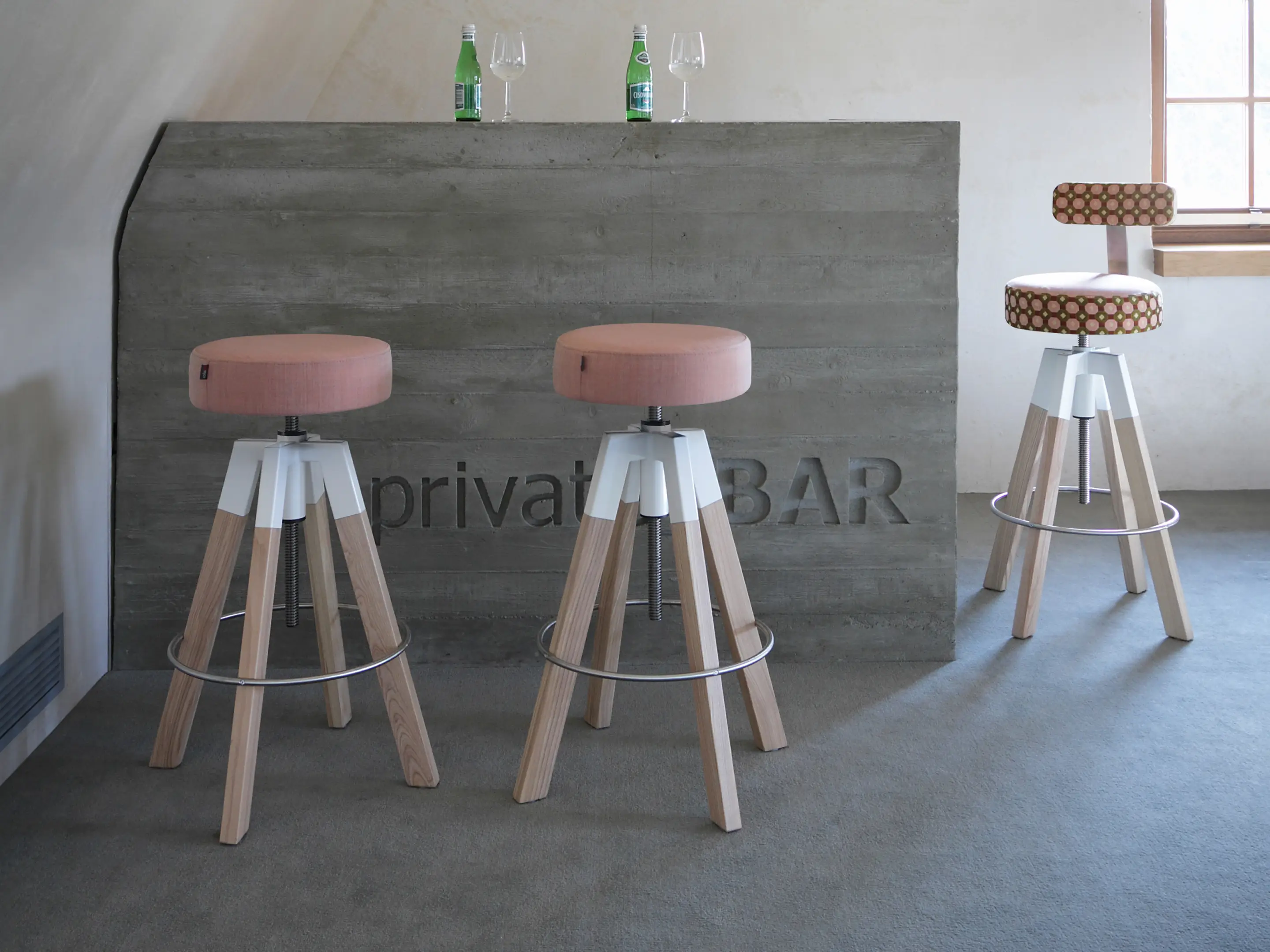 Spin barkruk - Gestoffeerde zitting, 930mm hoog, houten frame