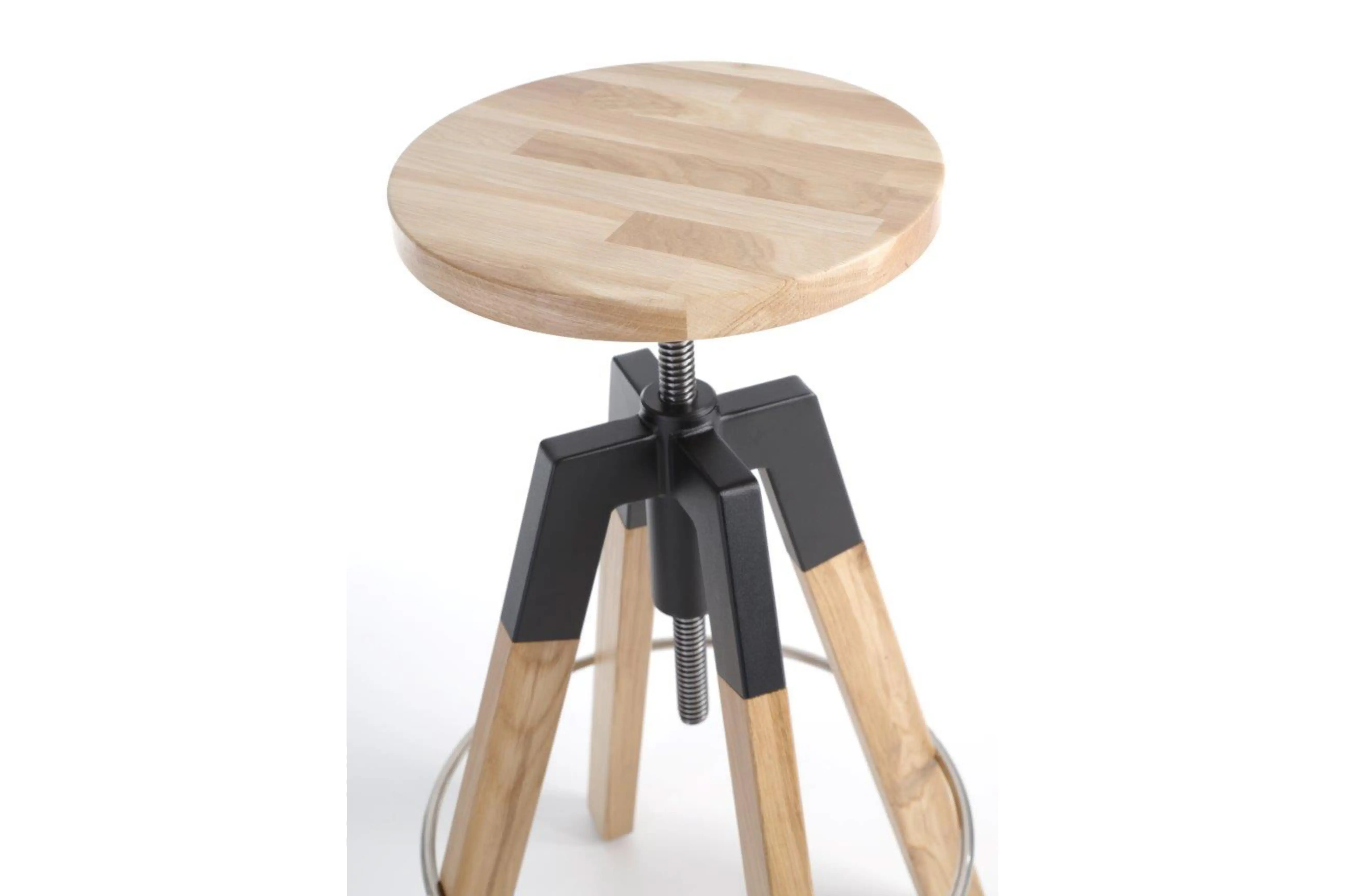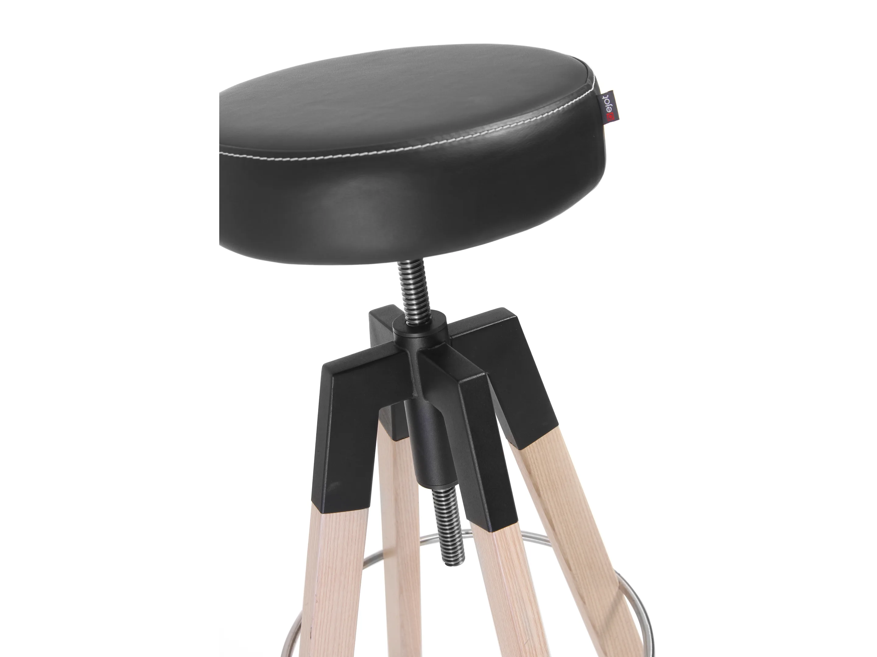Kruk van 680mm met een aluminium 4-teens voetkruis met houten poten, gestoffeerde zitting met hoogteinstelling, exclusief rugleuning