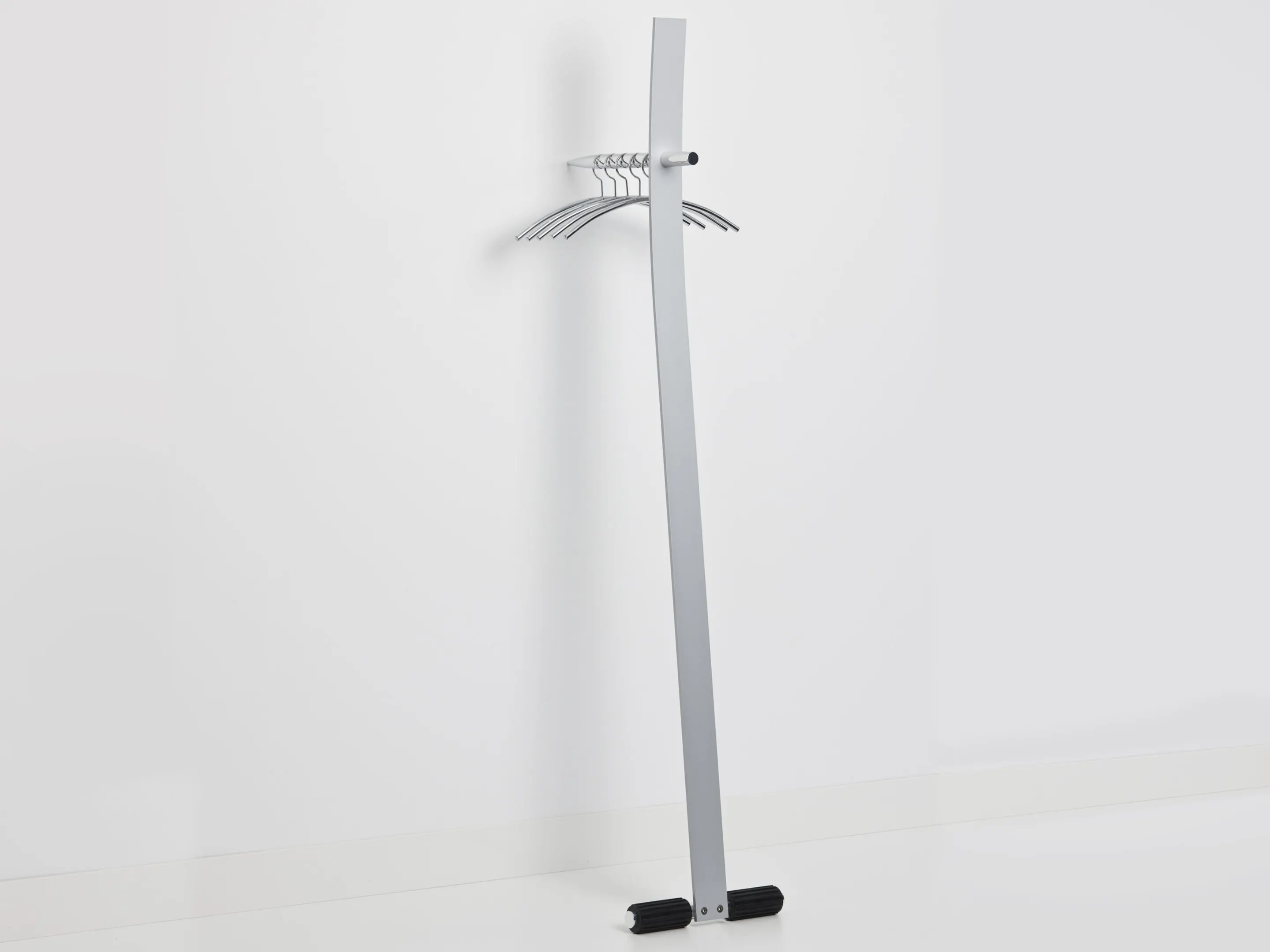 Staande aluminium kapstok, geschikt voor 5 kledinghangers (niet inbegrepen). Afmeting: 600 x 380 x 1900mm (BxDxH)