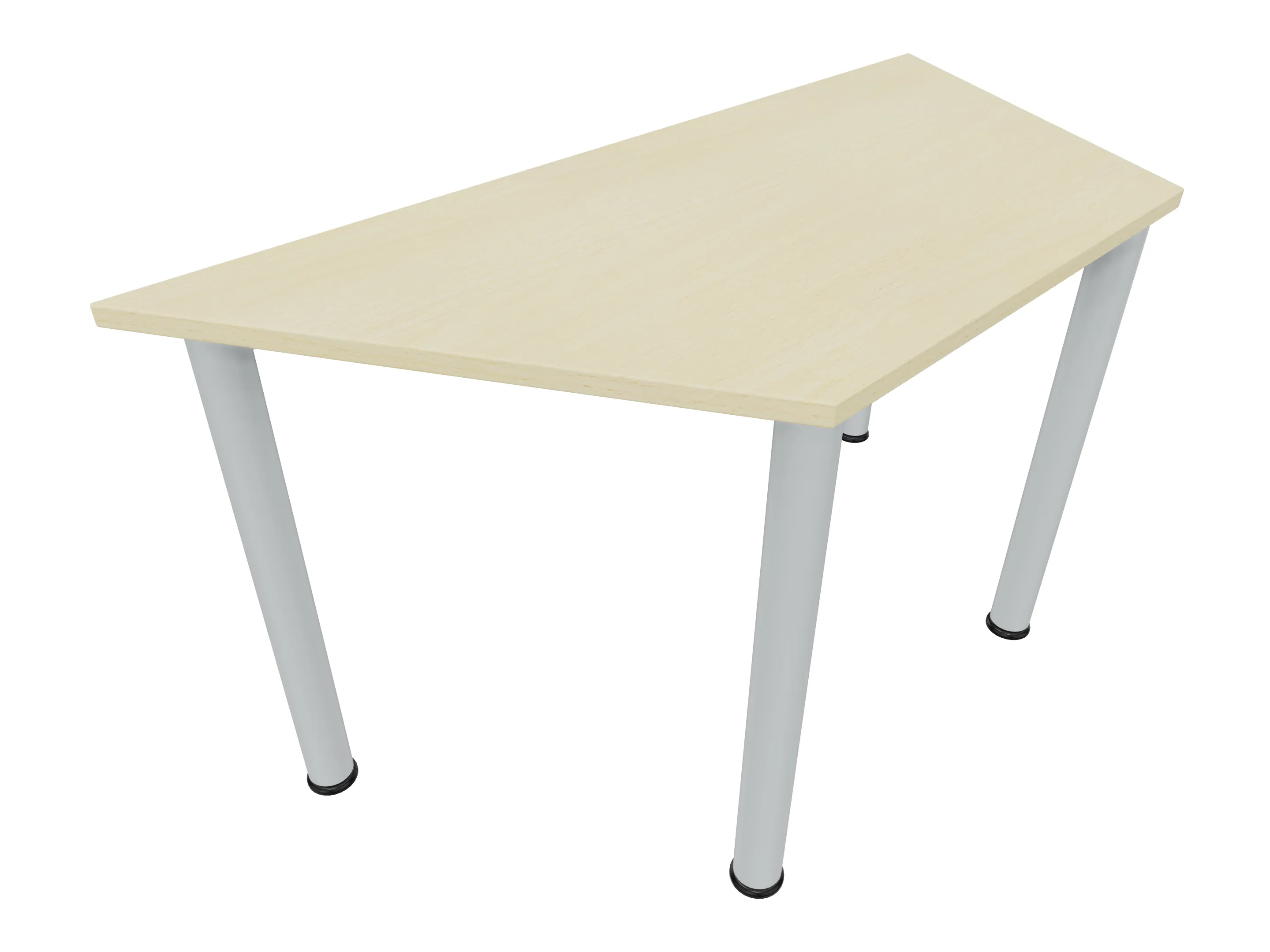 Vergadertafel op een 4-poots frame met ronde poten Ø 60mm en een trapeziumvormig blad met een aanbouwzijde van 600mm. Hoogte-instelbaar 720-800mm. Afmeting: 1200 x 520mm (B x D).
