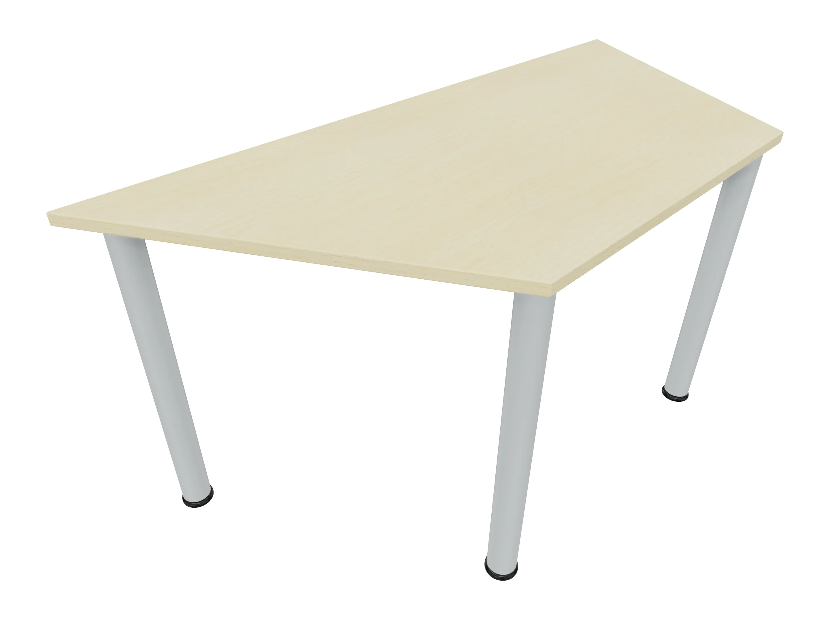 Vergadertafel op een 4-poots frame met ronde poten Ø 60mm en een trapeziumvormig blad met een aanbouwzijde van 800mm. Hoogte-instelbaar 720-800mm. Afmeting: 1600 x 692mm (B x D).