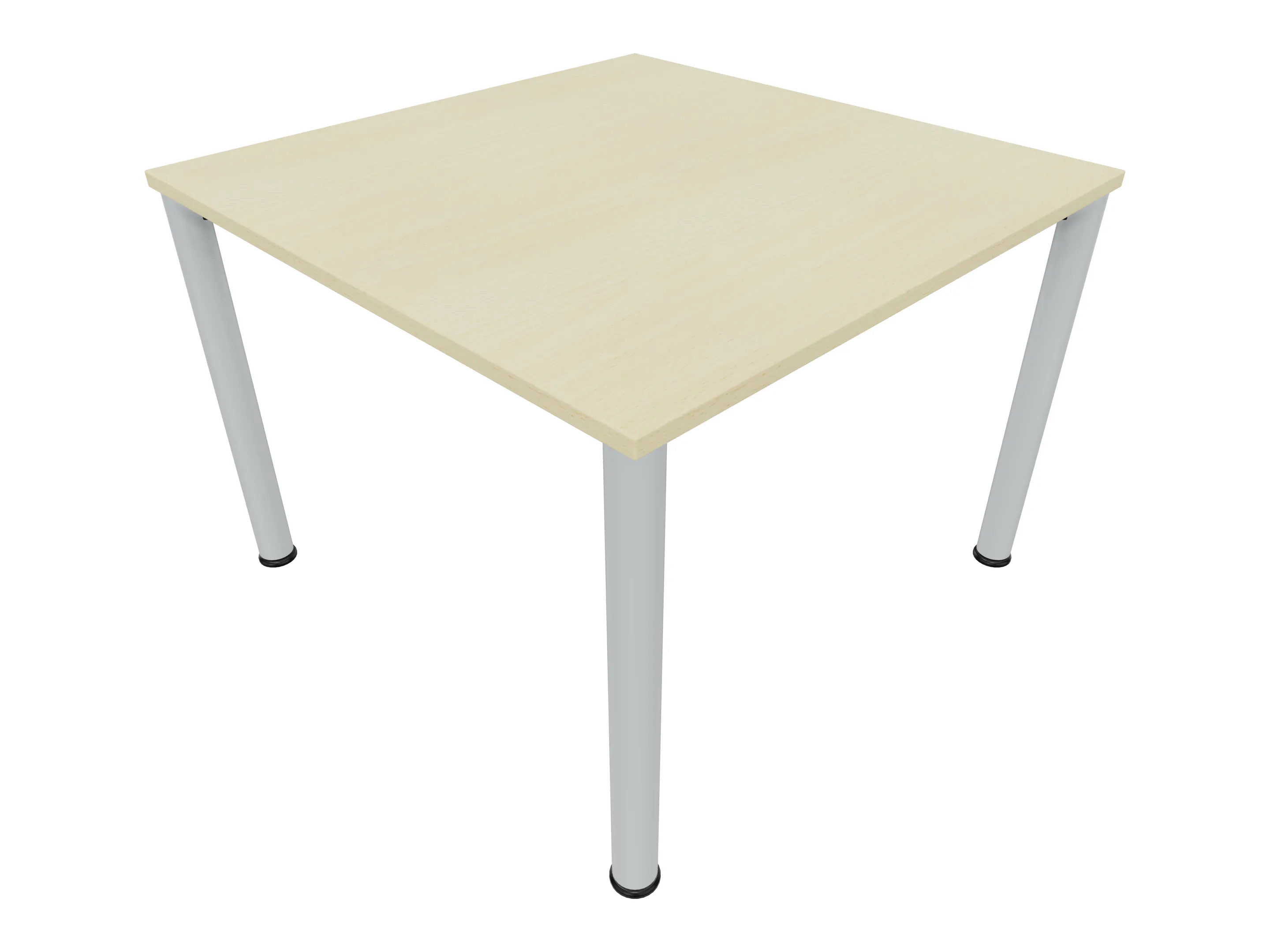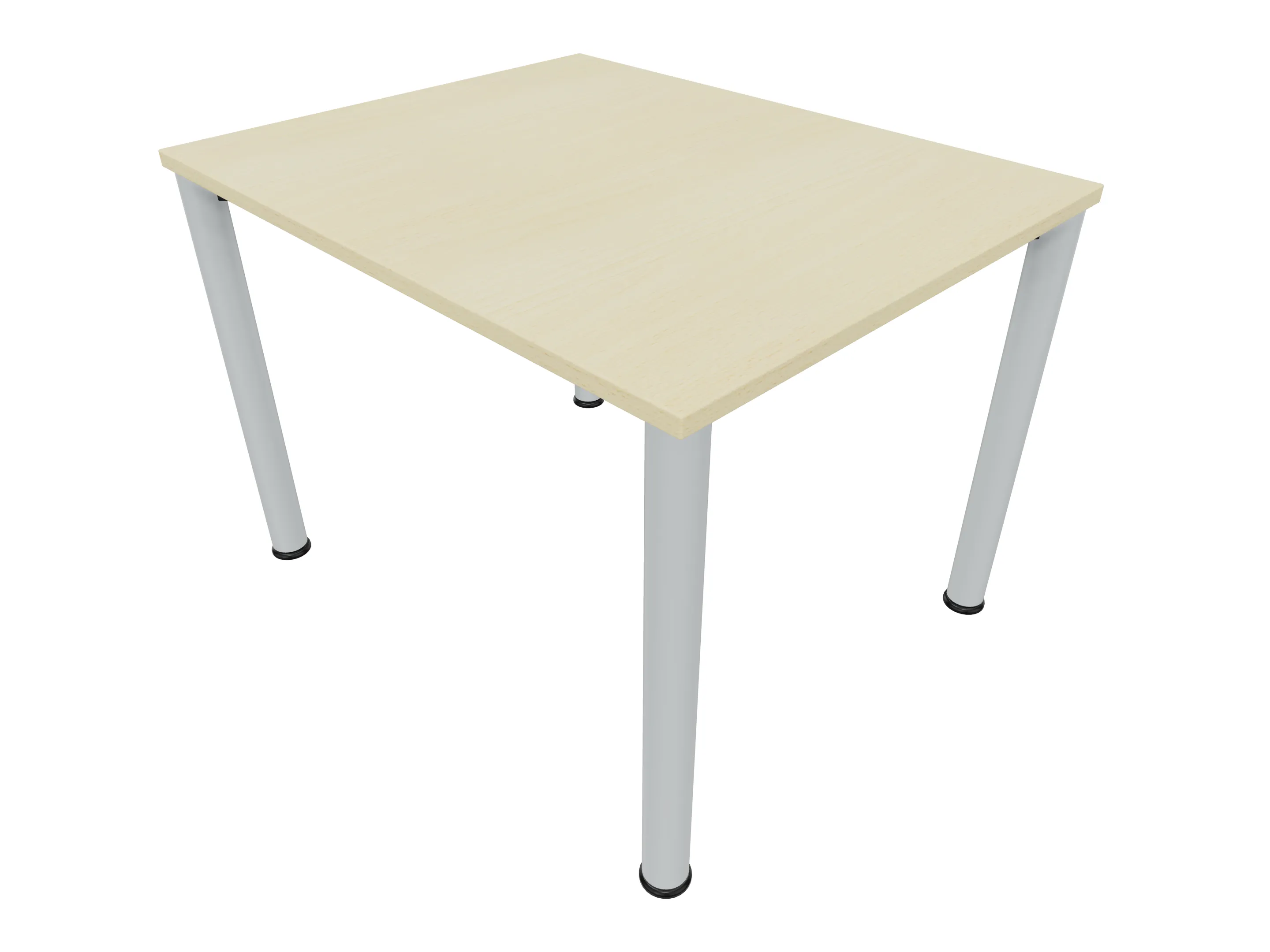 Vergadertafel op een 4-poots frame met ronde poten Ø 60mm en een rechthoekig blad. Hoogte-instelbaar 720-800mm. Afmeting: 1000 x 1000mm (B x D).