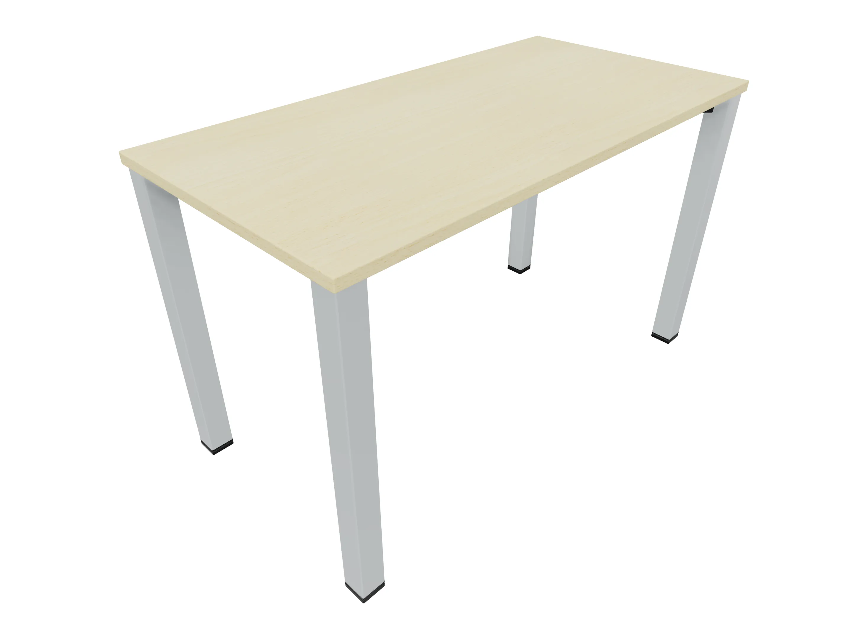 Vergadertafel op een 4-poots frame met vierkante poten 55 x 55 (B x D) en een rechthoekig blad. Hoogte-instelbaar 720-800mm. Afmeting: 1200 x 600mm (B x D).