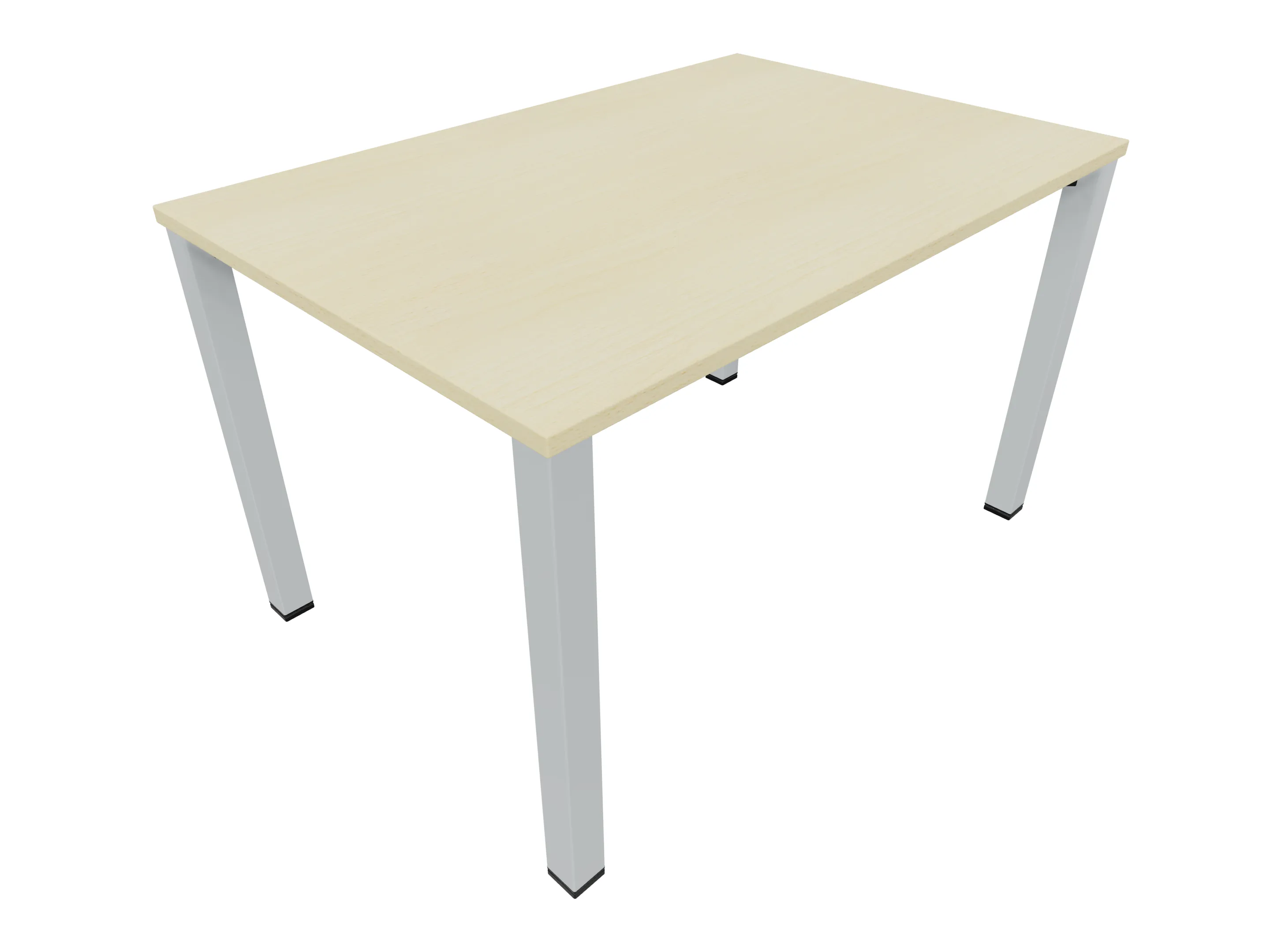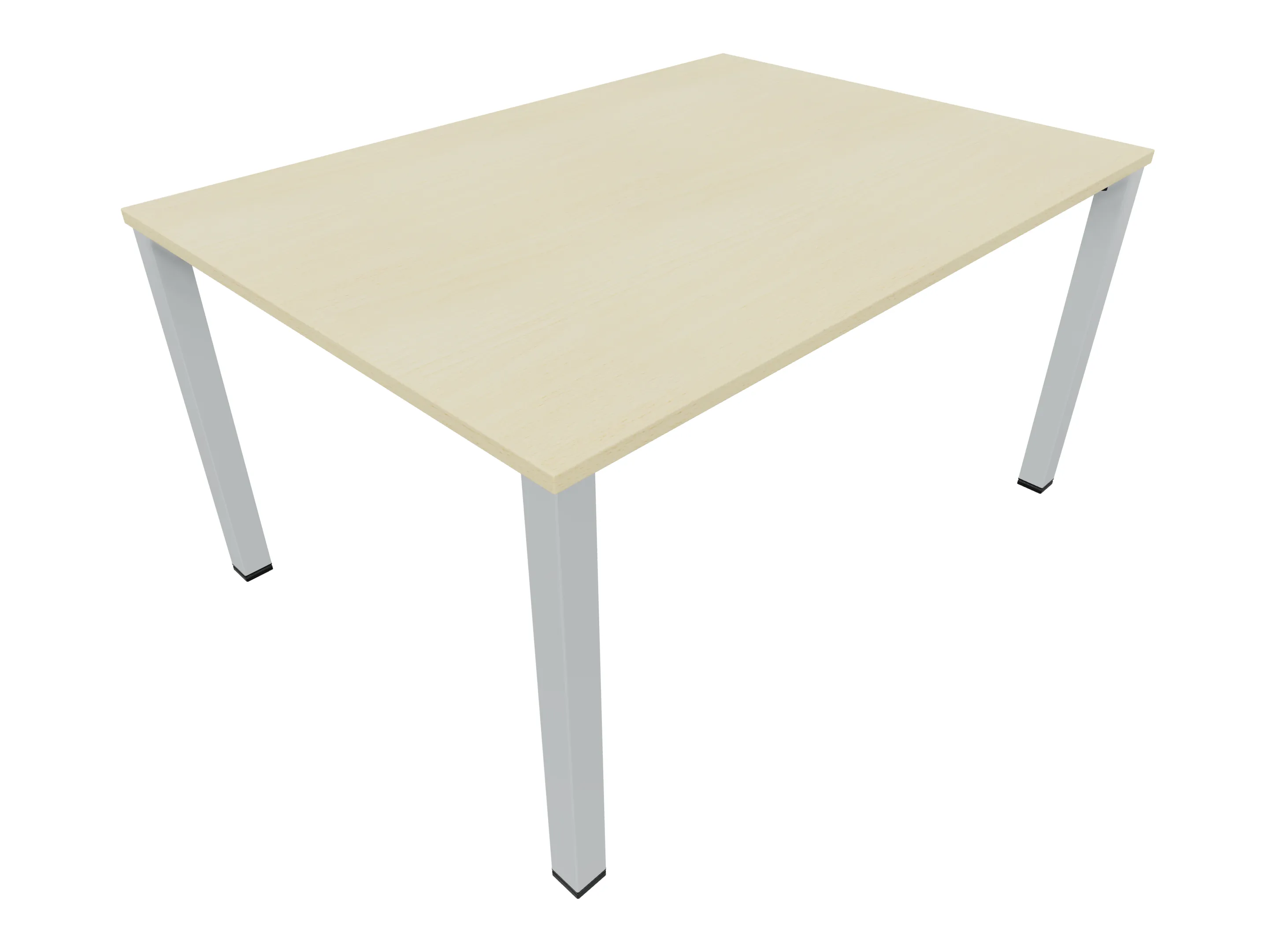 Vergadertafel op een 4-poots frame met vierkante poten 55 x 55 (B x D) en een rechthoekig blad. Hoogte-instelbaar 720-800mm. Afmeting: 1200 x 1000mm (B x D).