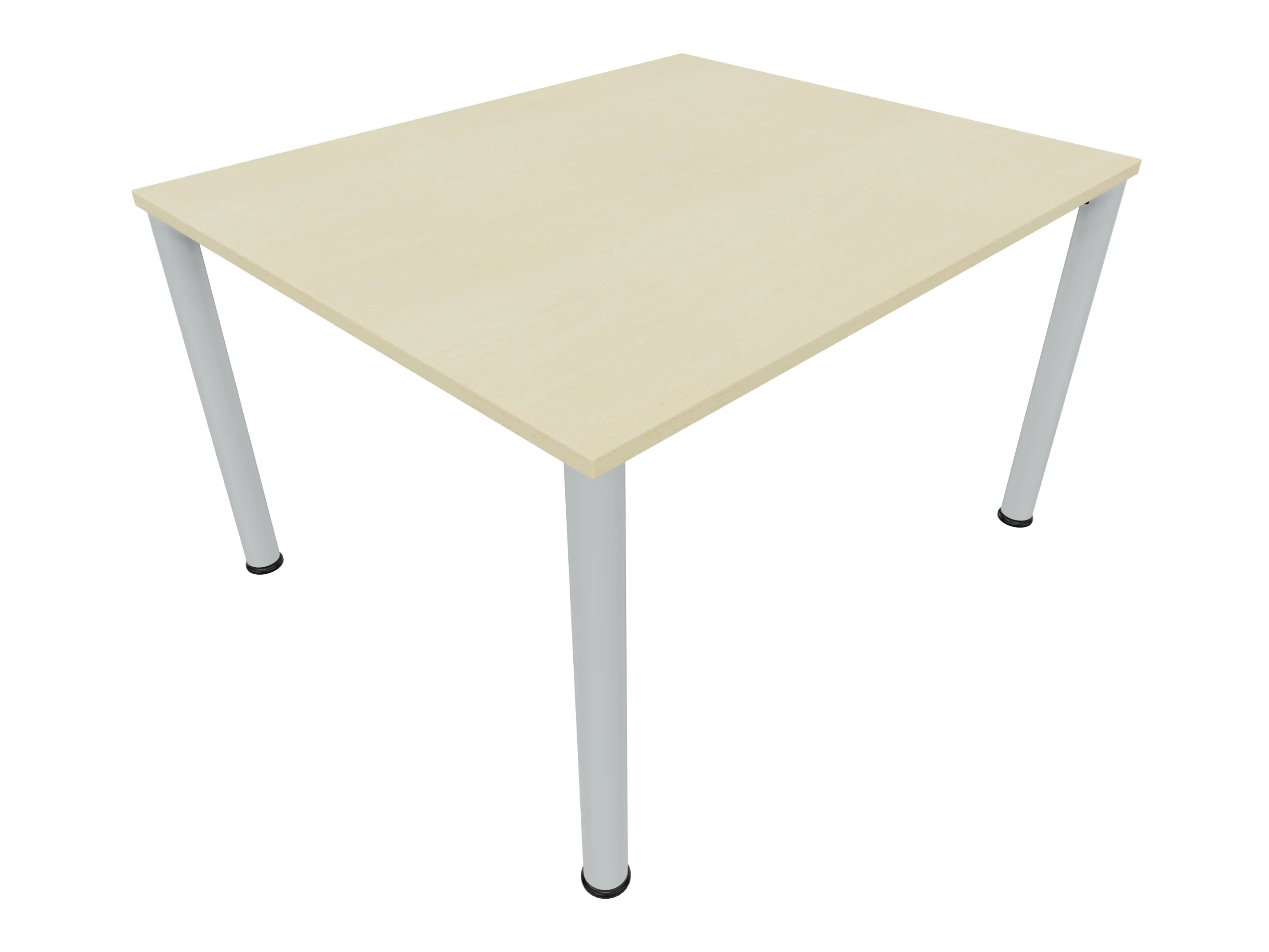Vergadertafel op een 4-poots frame met ronde poten Ø 60mm en een rechthoekig blad. Hoogte-instelbaar 720-800mm. Afmeting: 1200 x 1000mm (B x D).