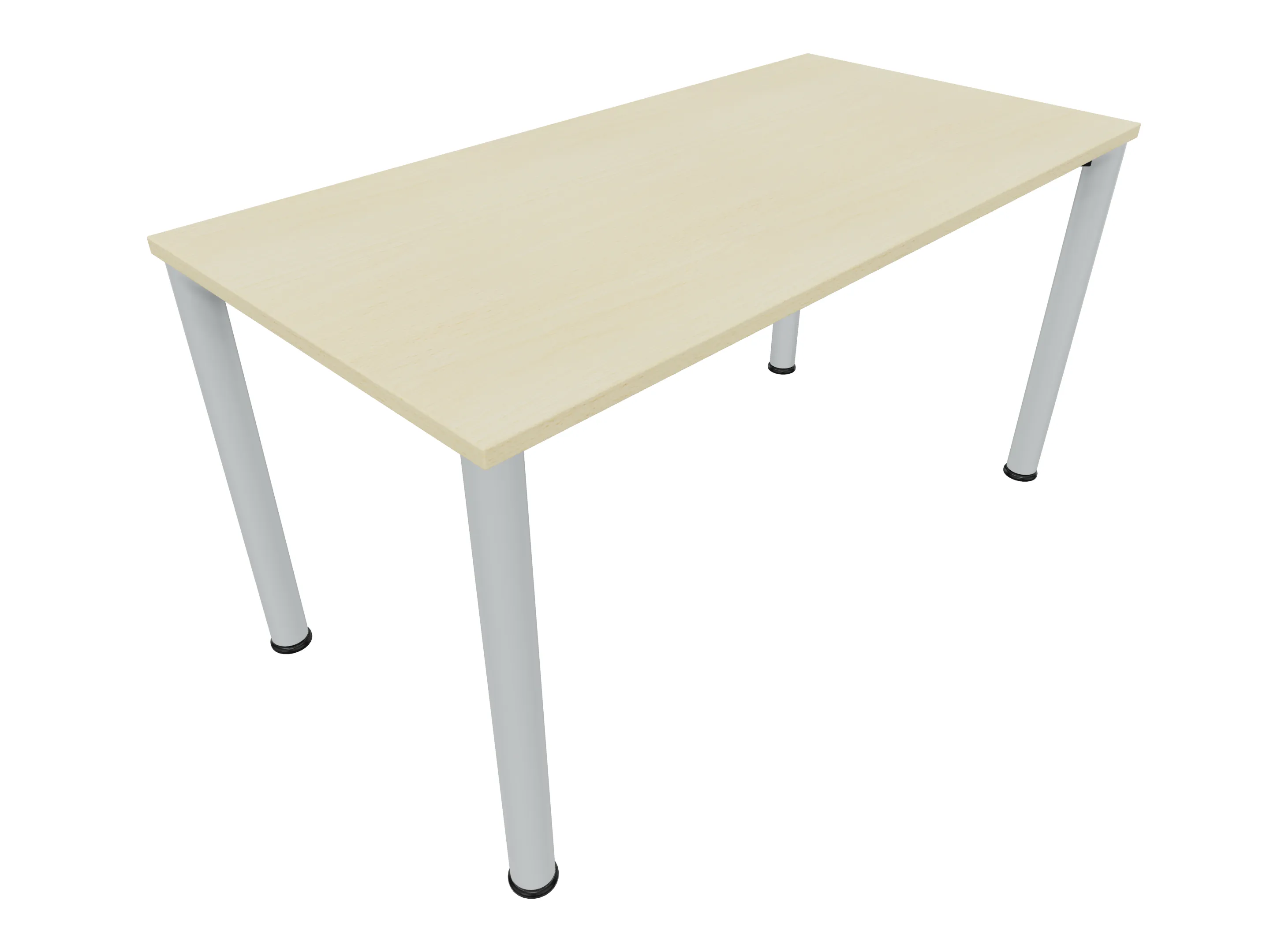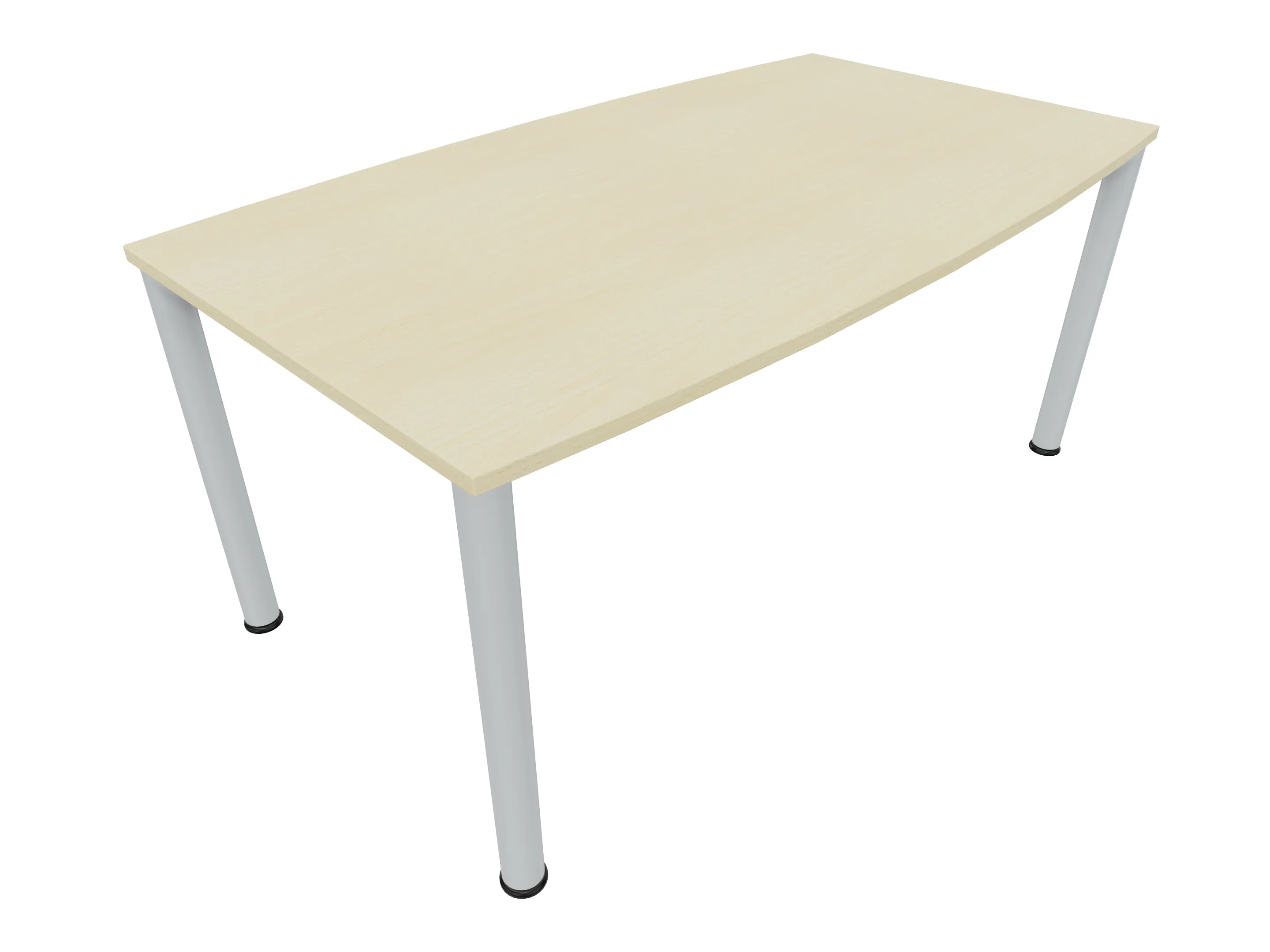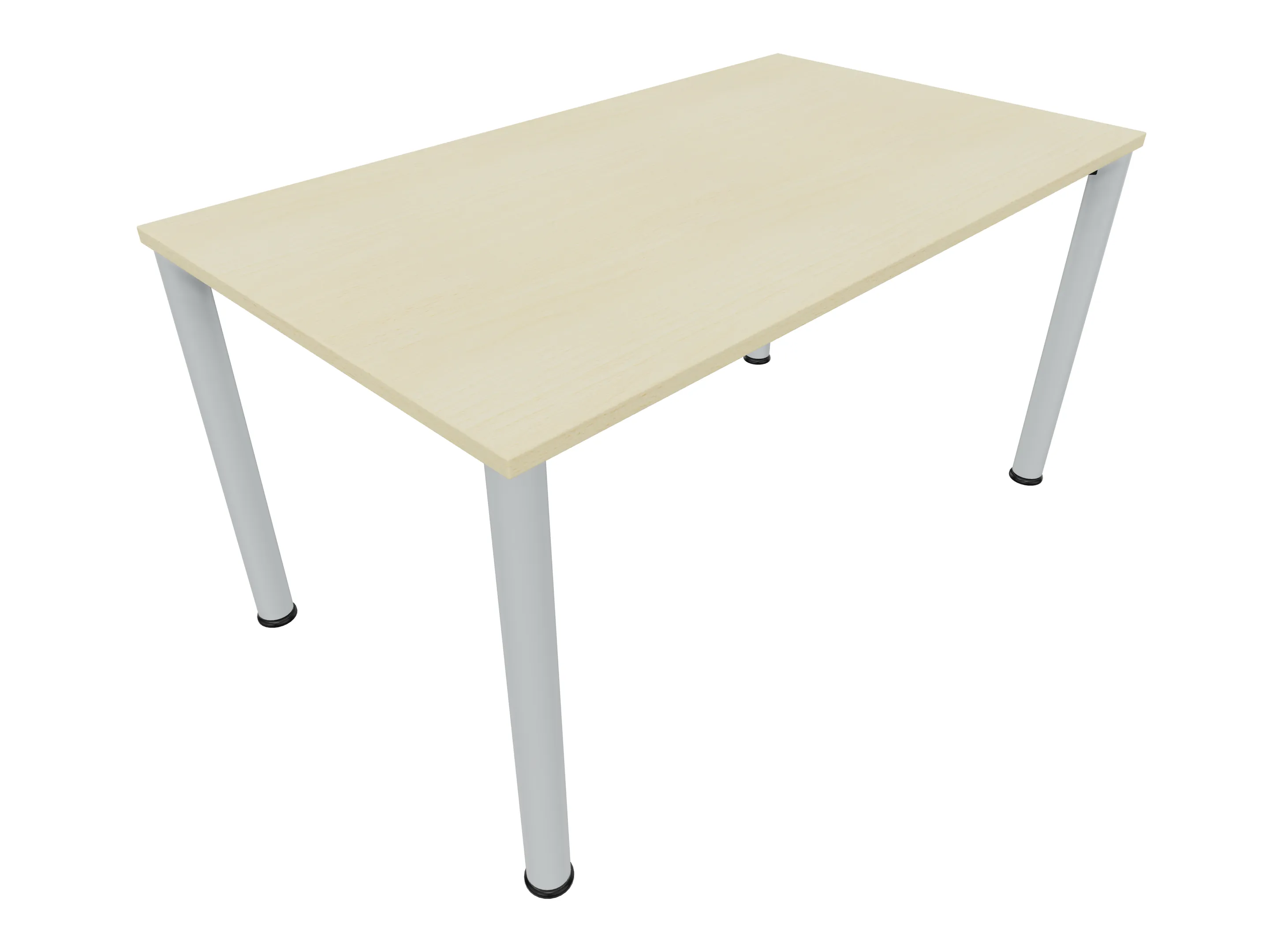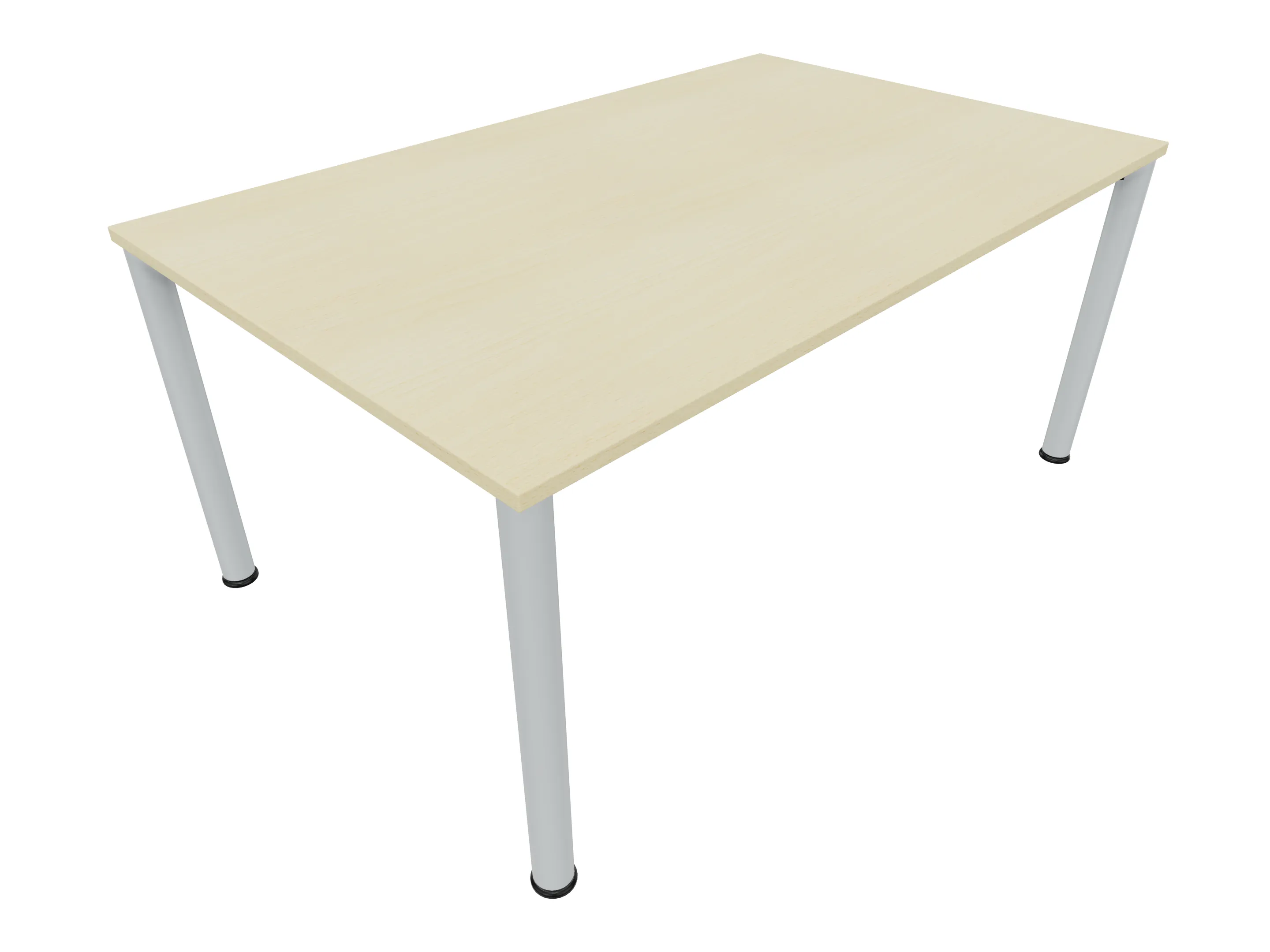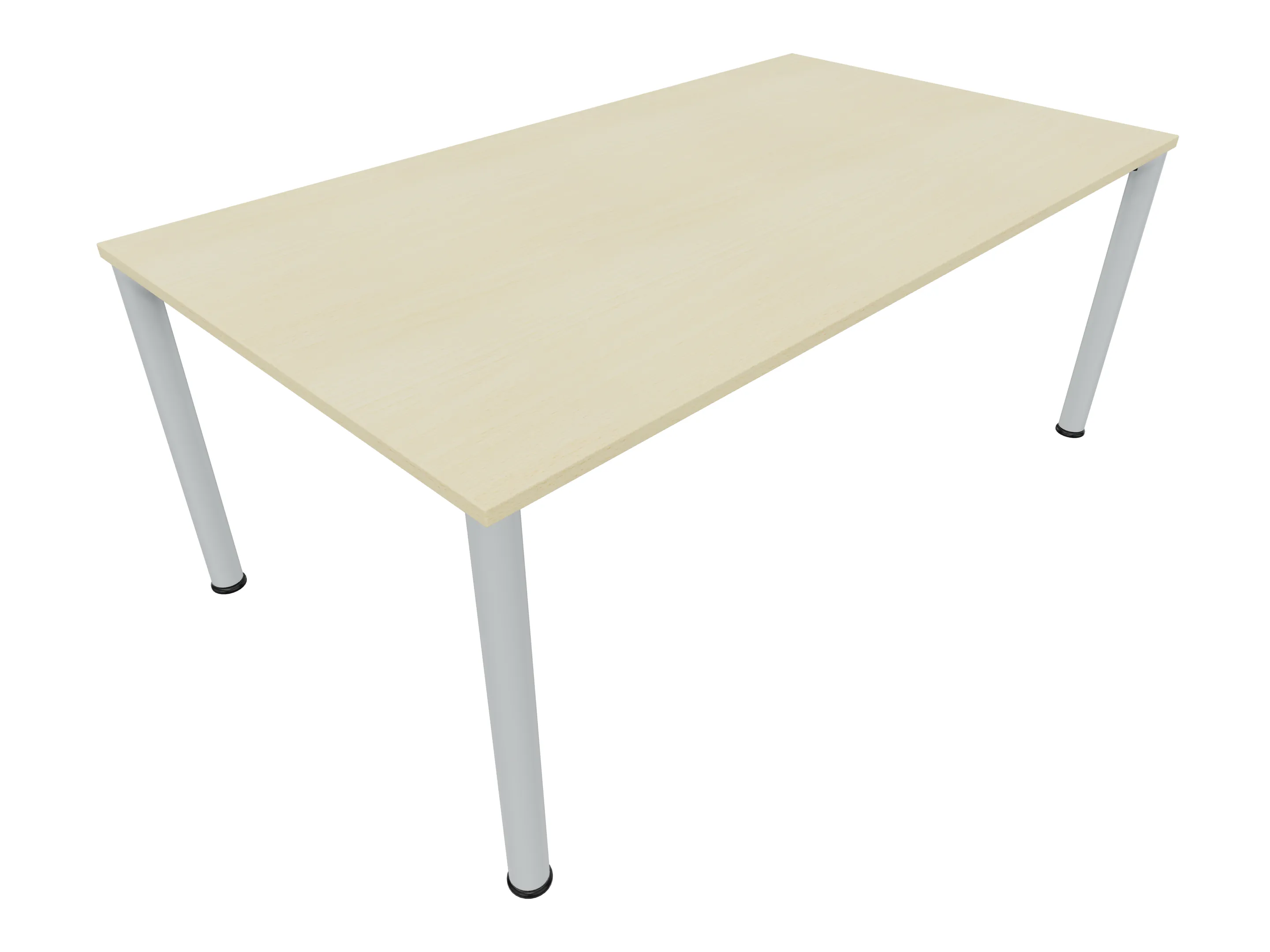 Vergadertafel op een 4-poots frame met ronde poten Ø 60mm en een rechthoekig blad. Hoogte-instelbaar 720-800mm. Afmeting: 1600 x 1000mm (B x D).