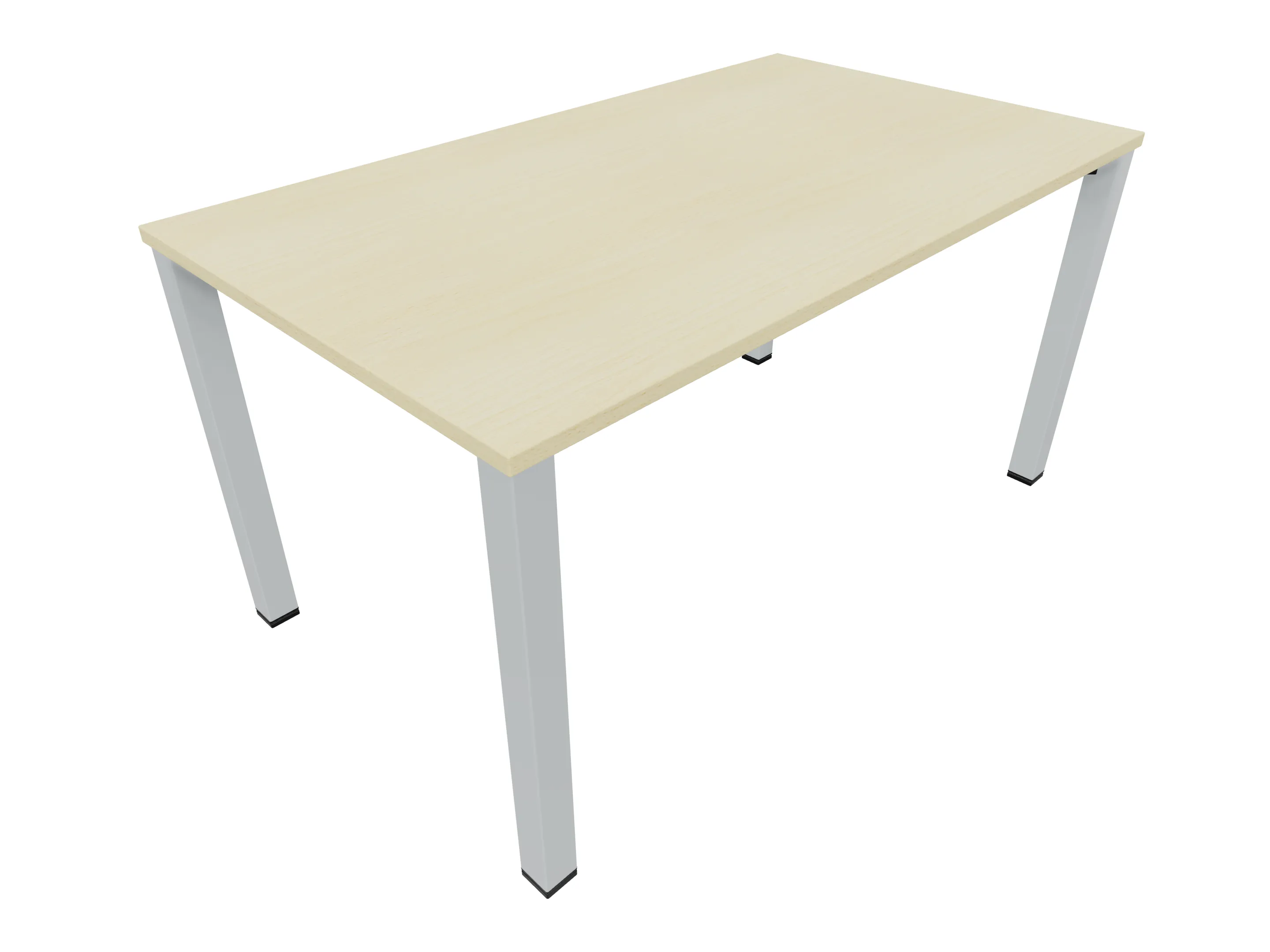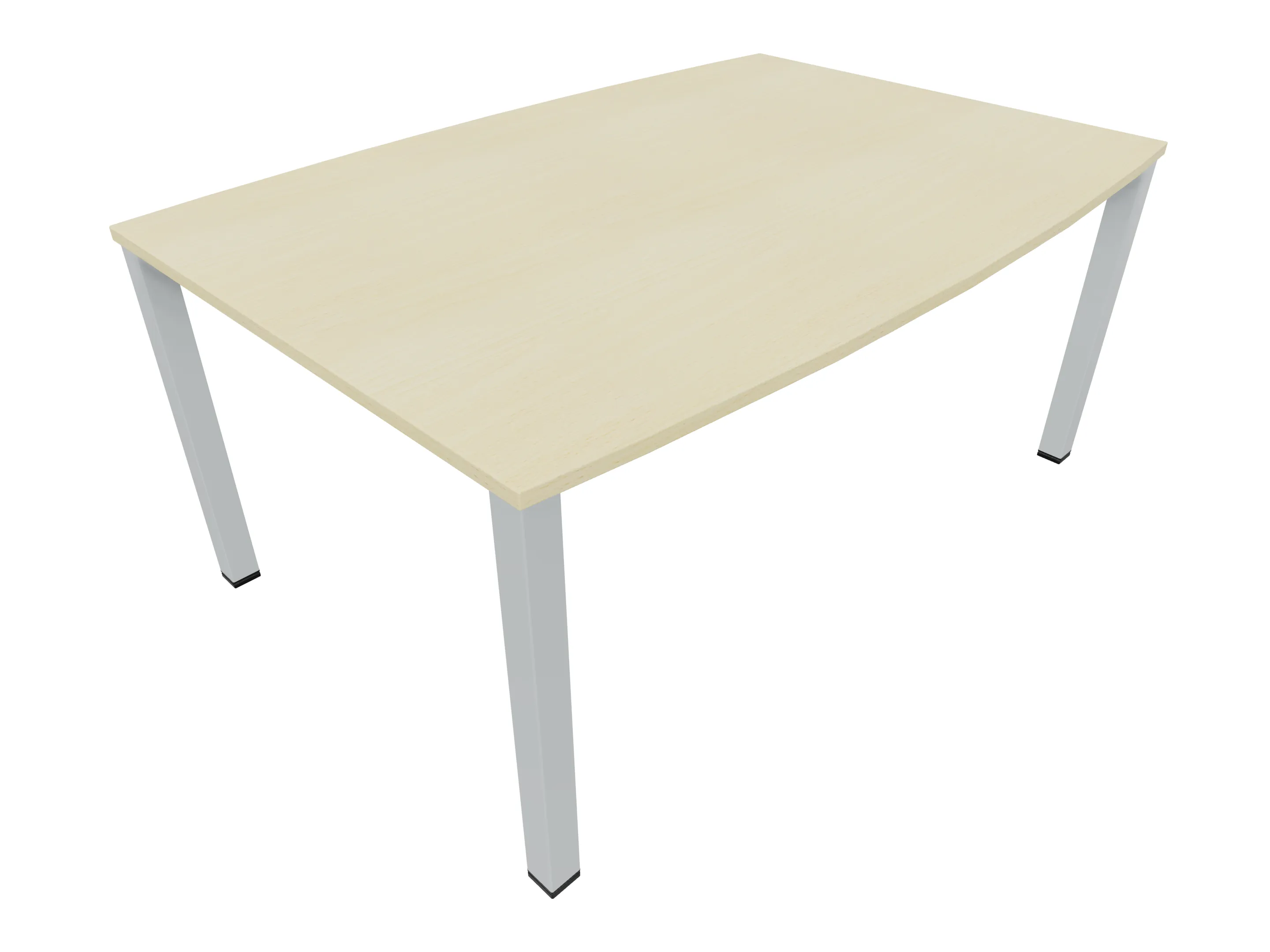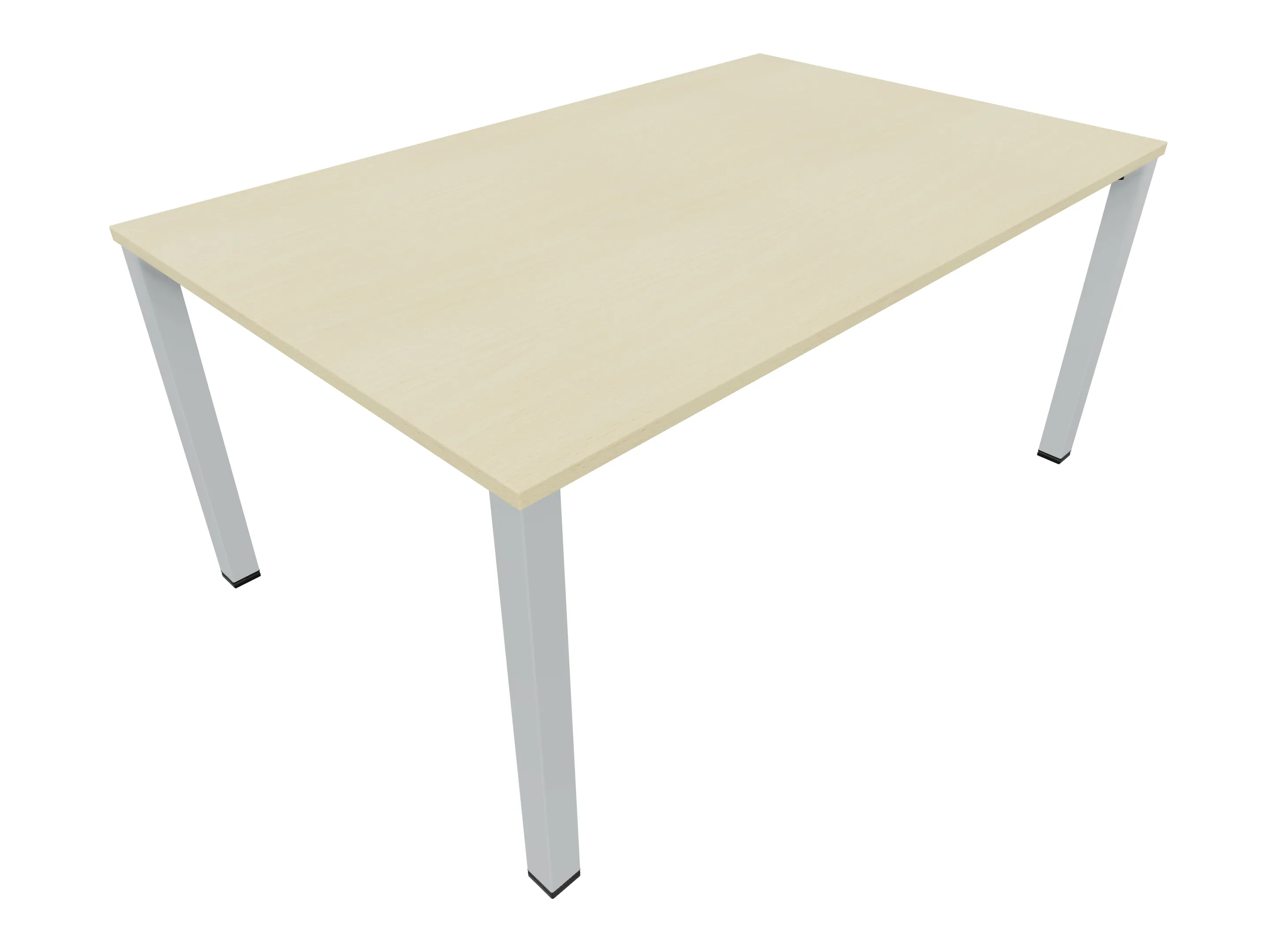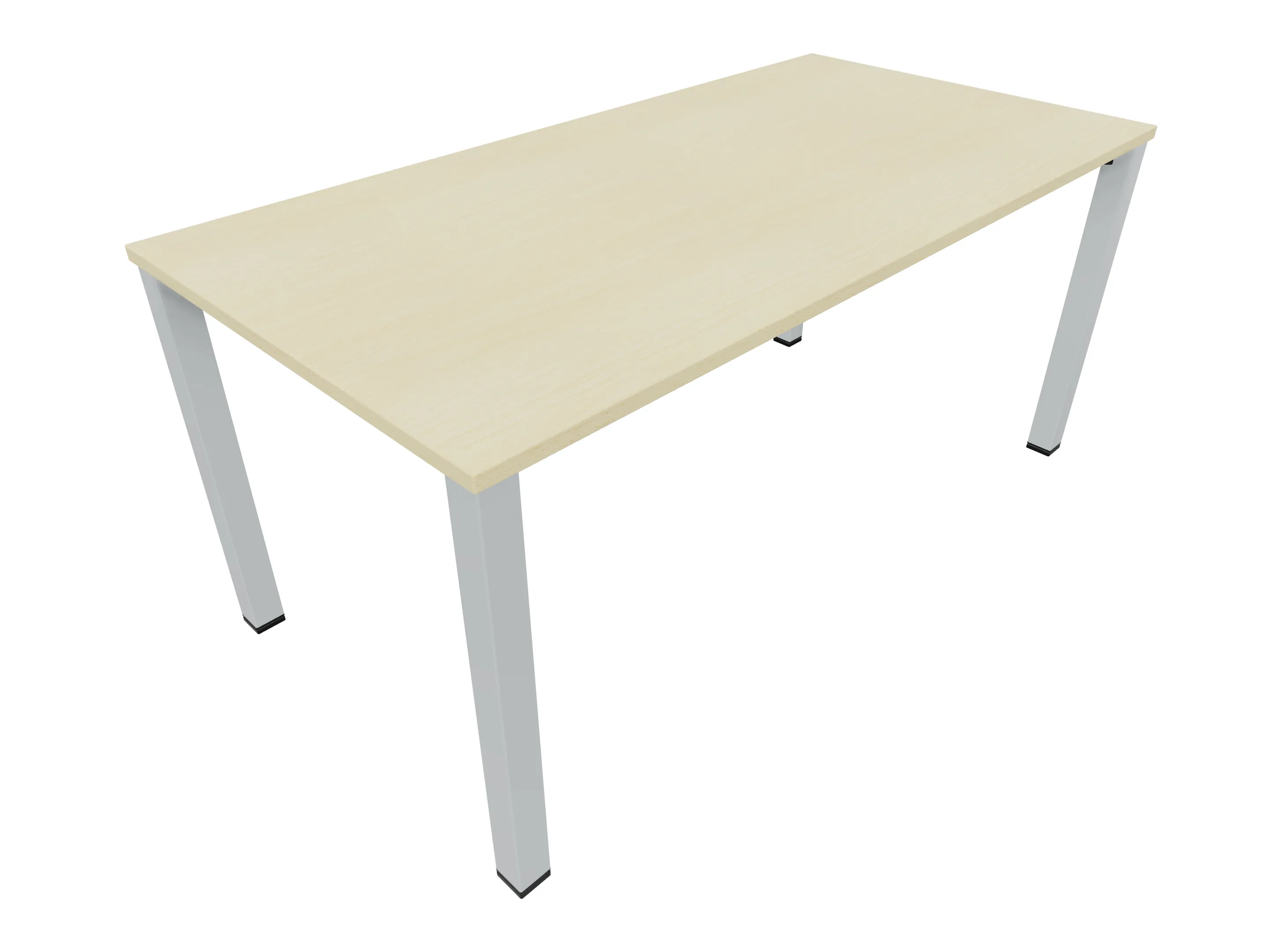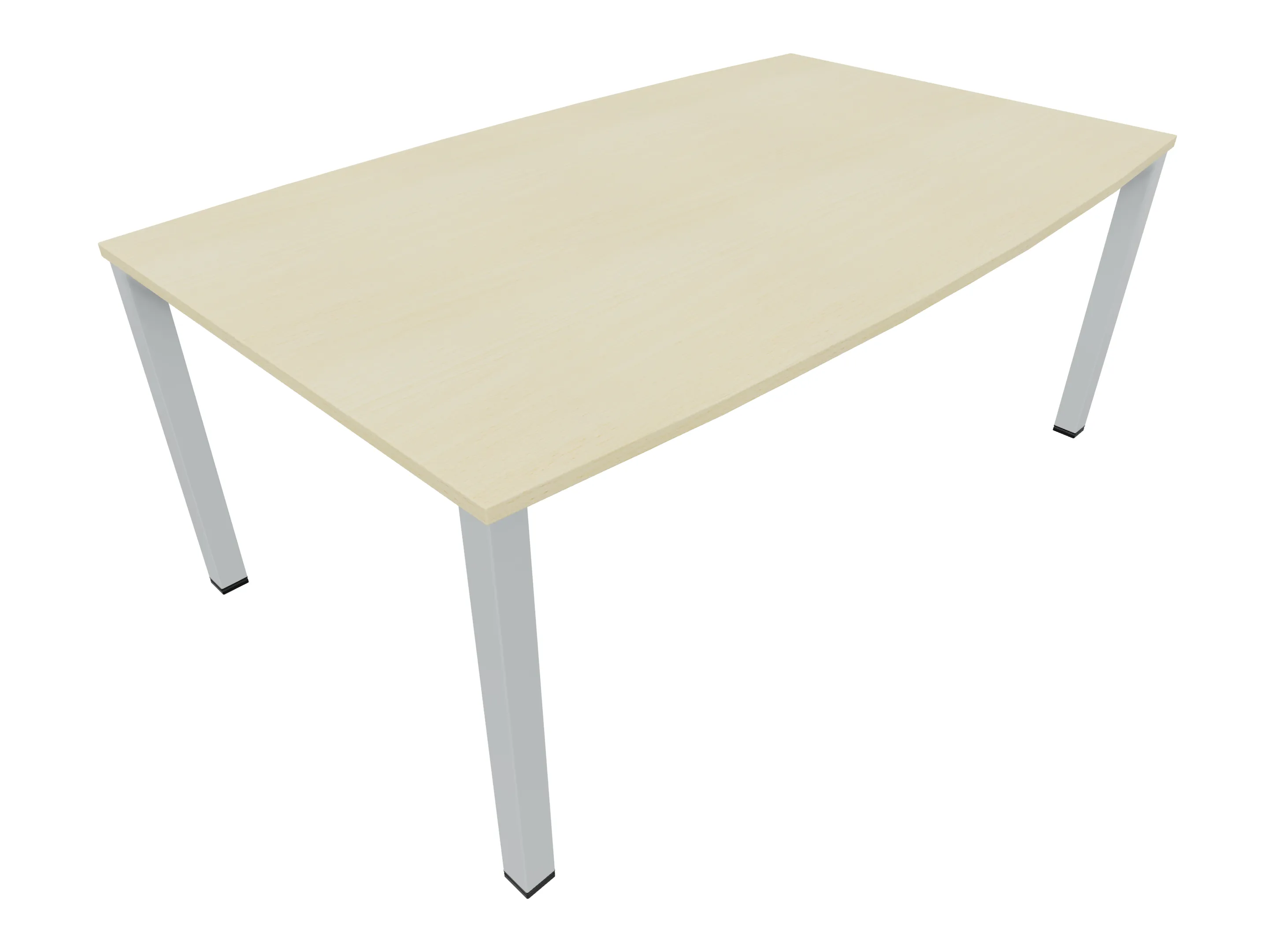 Vergadertafel op een 4-poots frame met vierkante poten 55 x 55 (B x D) en een rechthoekig blad. Hoogte-instelbaar 720-800mm. Afmeting: 1600 x 1000mm (B x D).