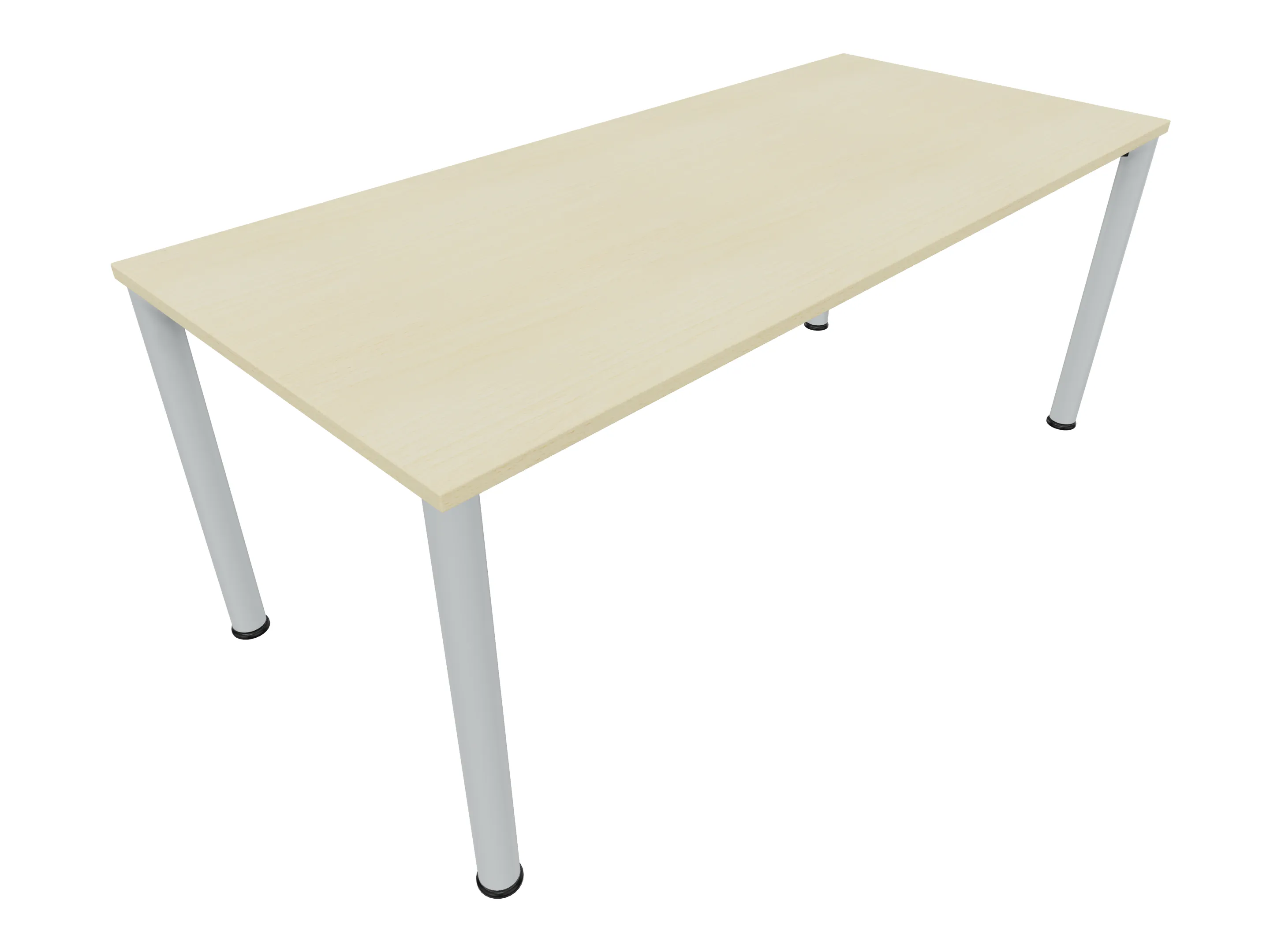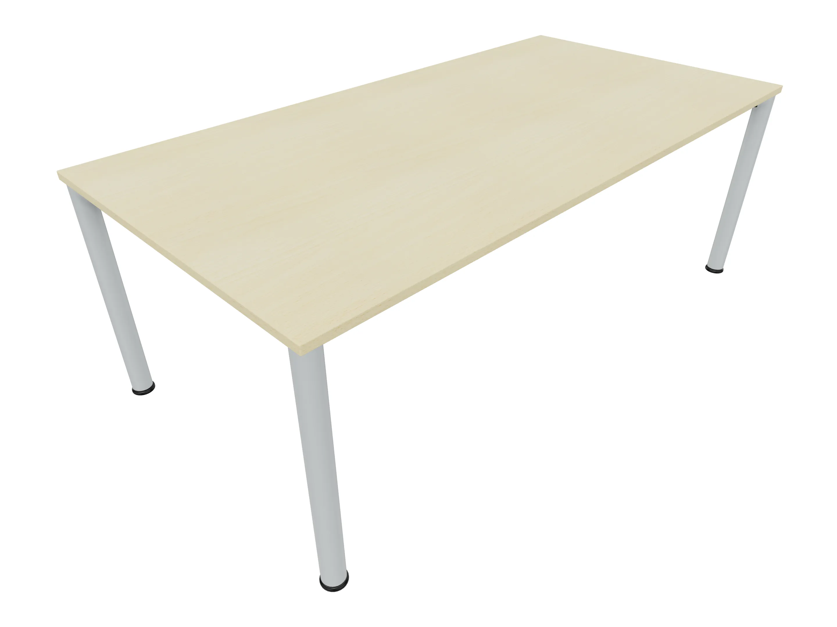 Vergadertafel op een 4-poots frame met ronde poten Ø 60mm en een rechthoekig blad. Hoogte-instelbaar 720-800mm. Afmeting: 1800 x 1000mm (B x D).