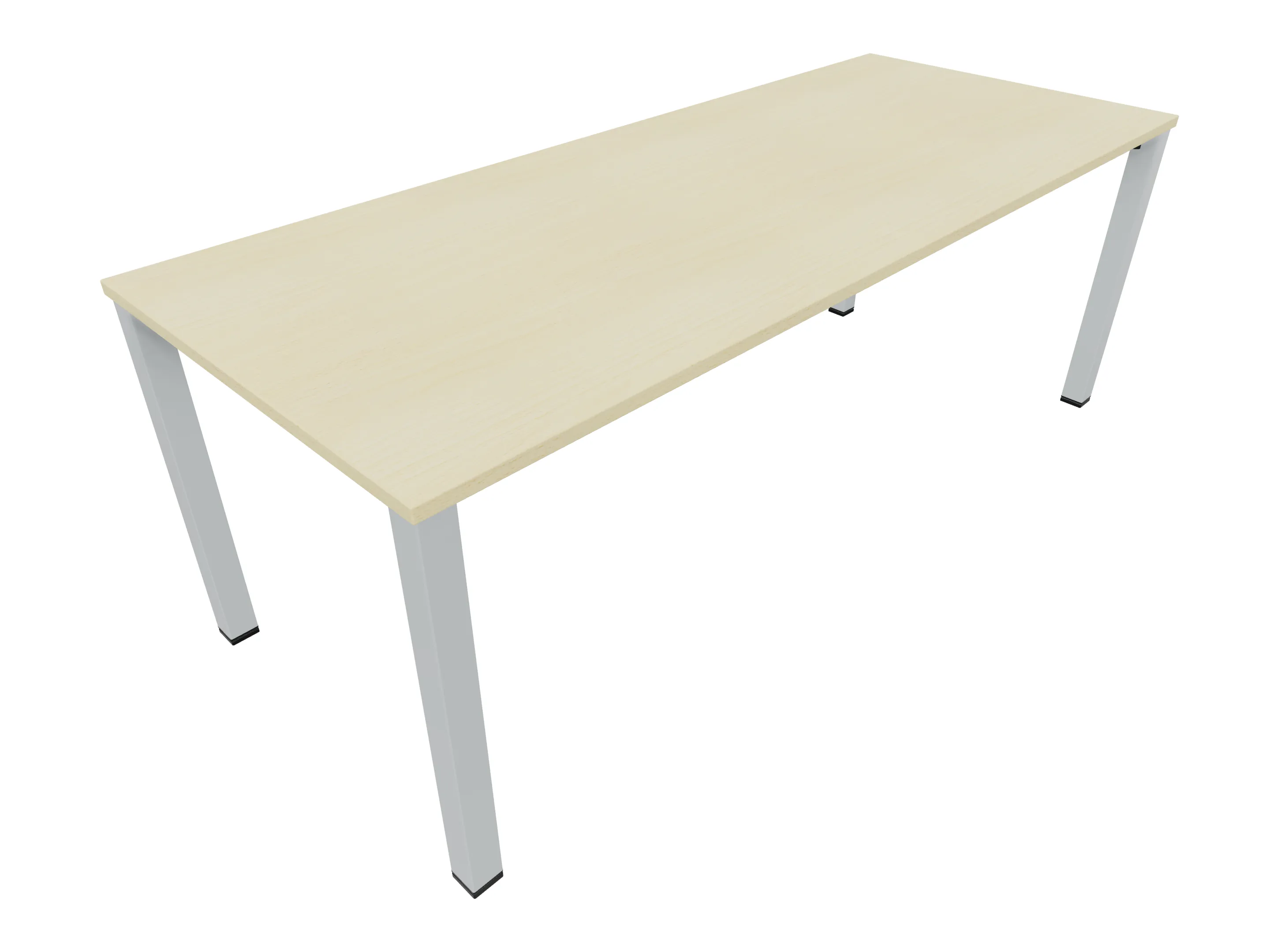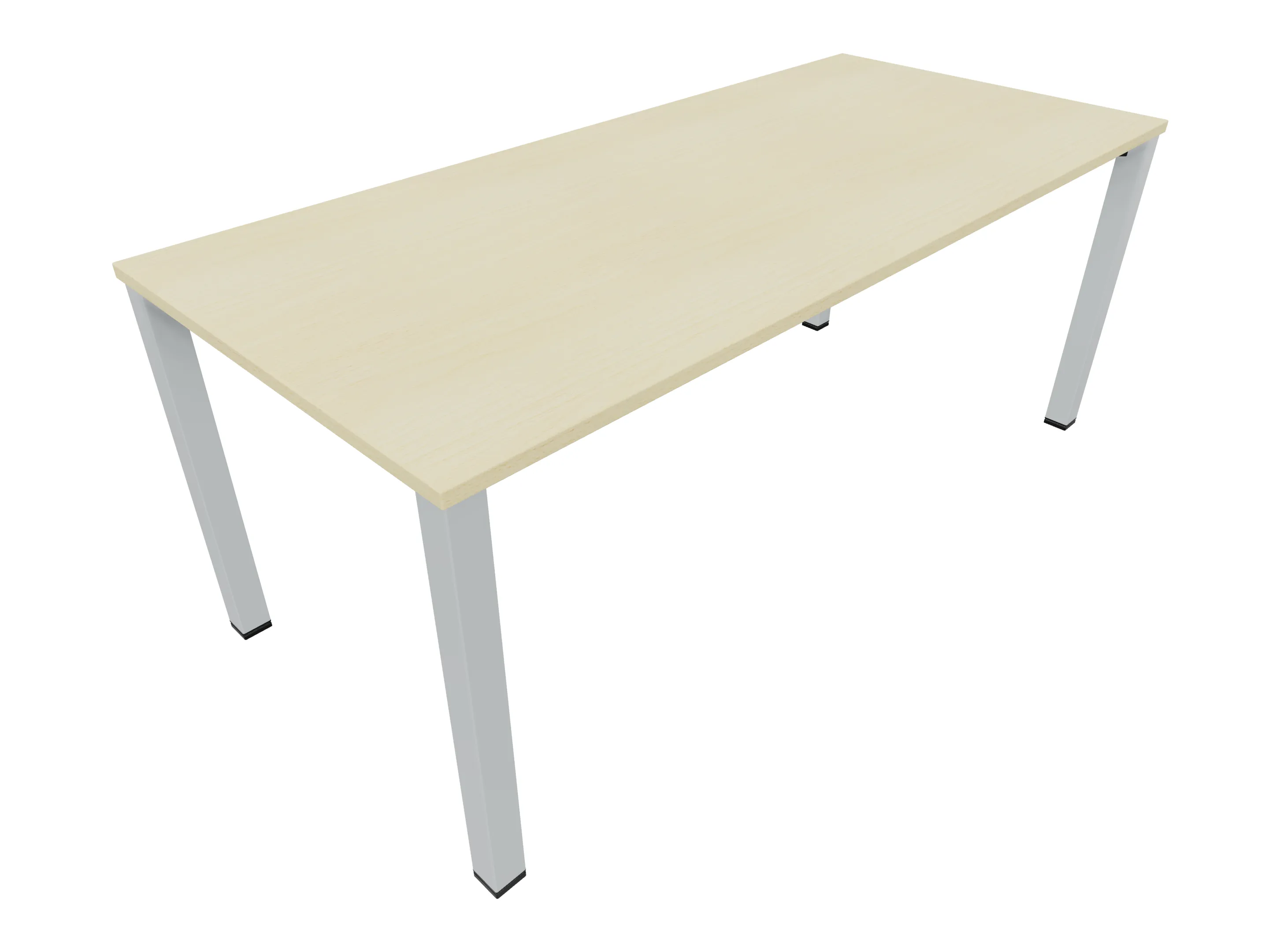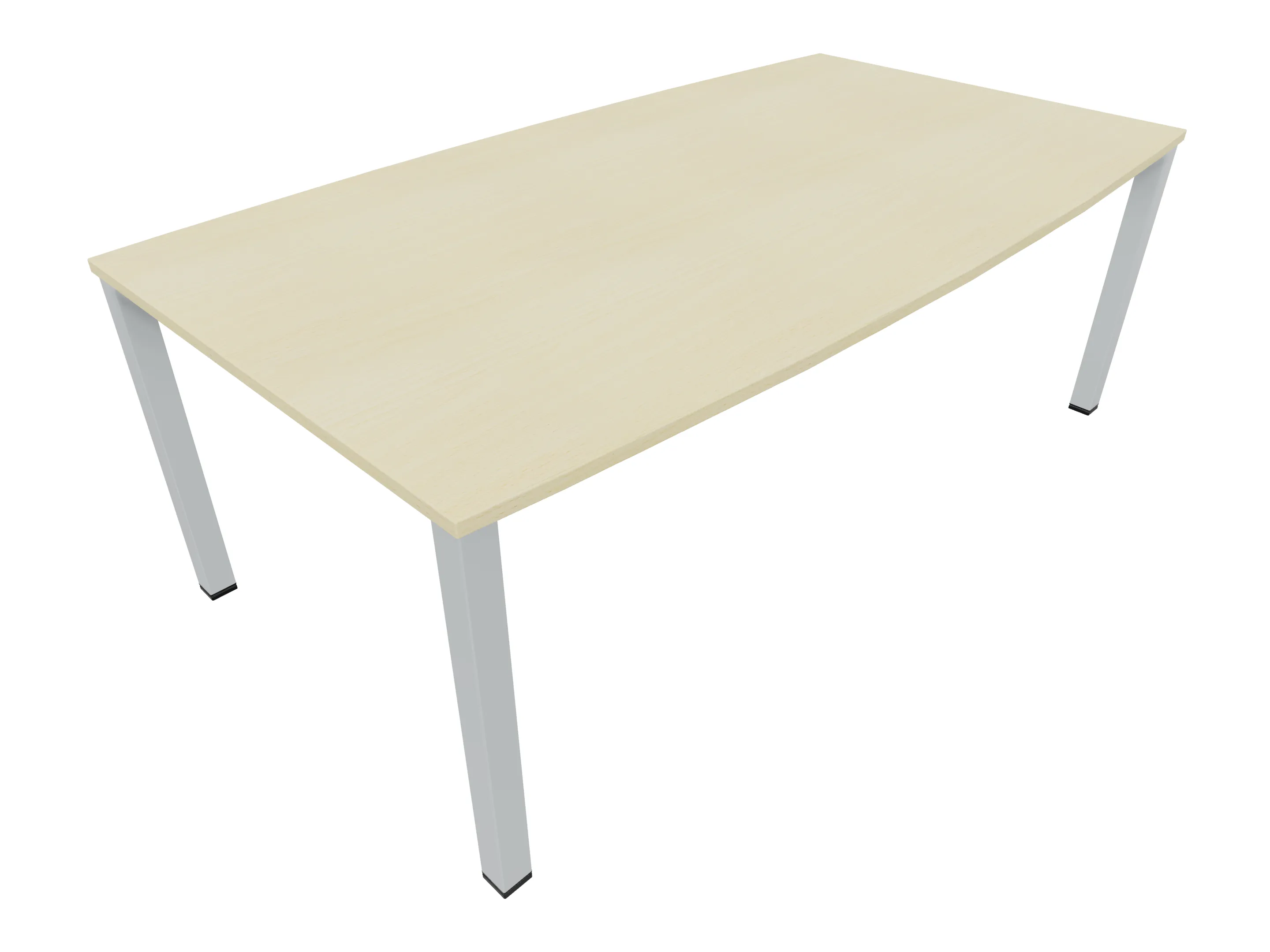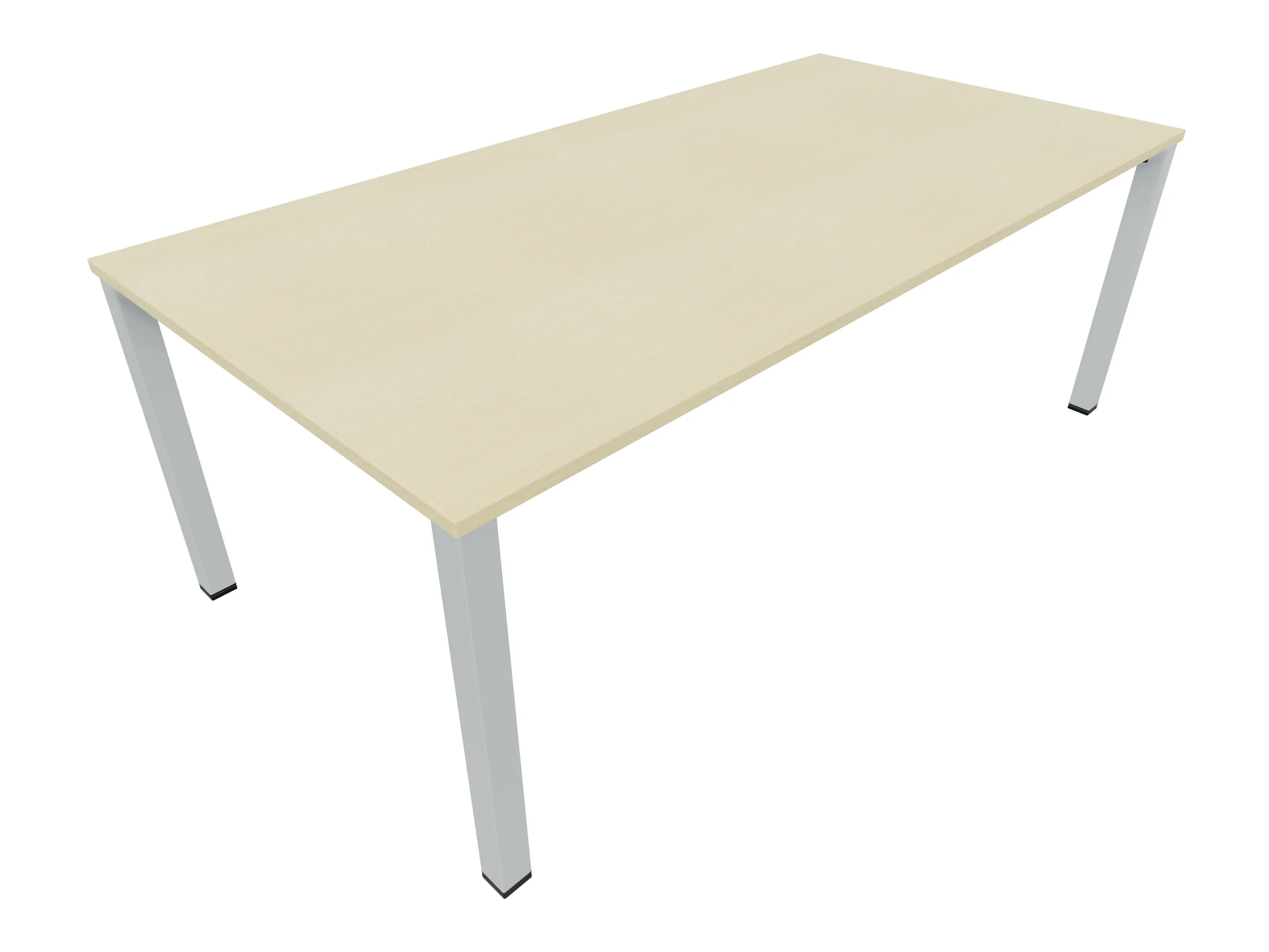 Vergadertafel op een 4-poots frame met vierkante poten 55 x 55 (B x D) en een rechthoekig blad. Hoogte-instelbaar 720-800mm. Afmeting: 1800 x 1000mm (B x D).