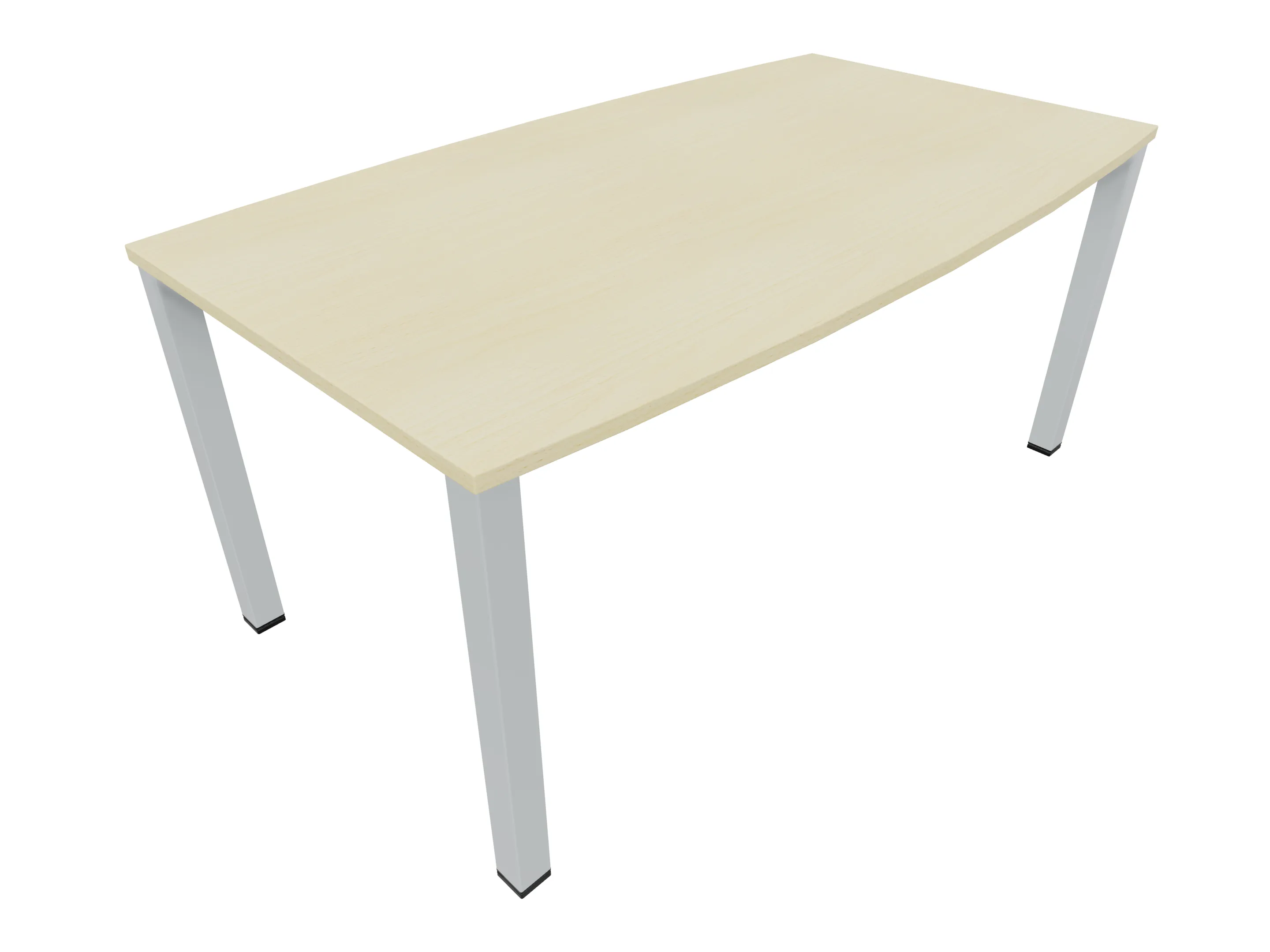Vergadertafel op een 4-poots frame met vierkante poten 55 x 55mm (B x D) en een tonvormig blad met rechte hoeken. Hoogte-instelbaar 720-800mm. Afmeting onderstel: 1600 x 800mm (B x D). Afmeting blad: 1600 x 900mm (B x D).