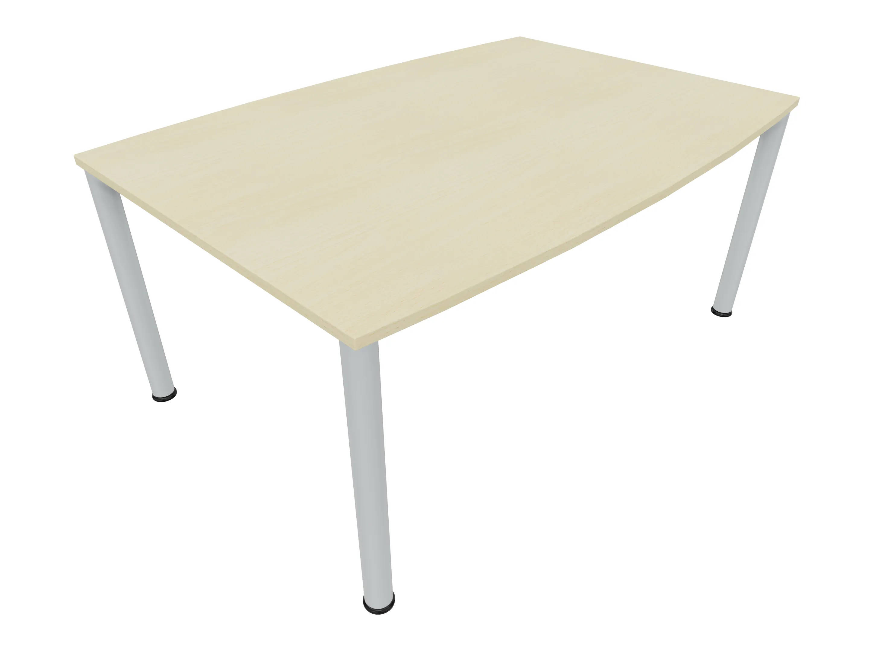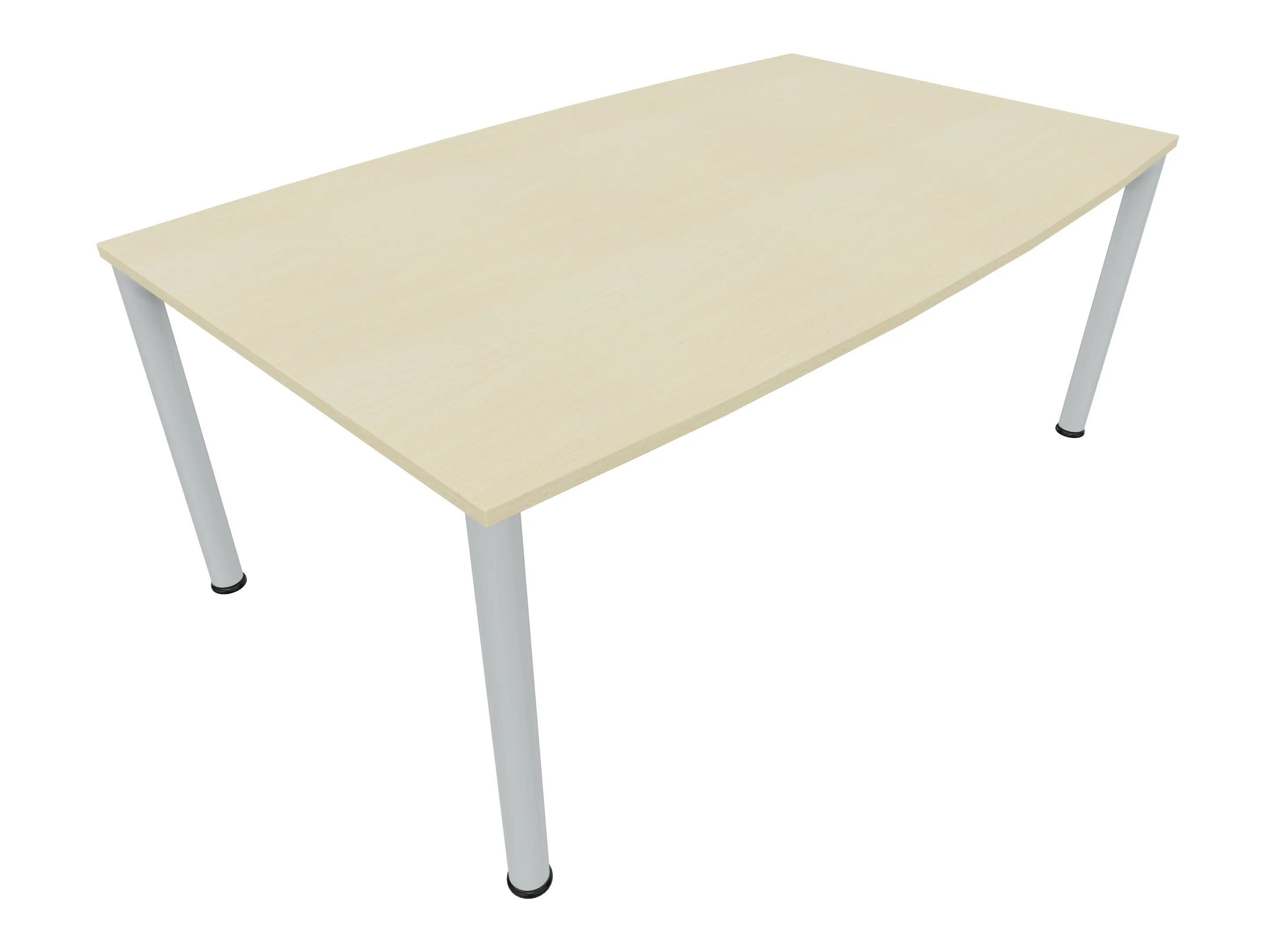 Vergadertafel op een 4-poots frame met ronde poten Ø 60mm en een tonvormig blad met rechte hoeken. Hoogte-instelbaar 720-800mm. Afmeting onderstel: 1600 x 800mm (B x D). Afmeting blad: 1600 x 900mm (B x D).