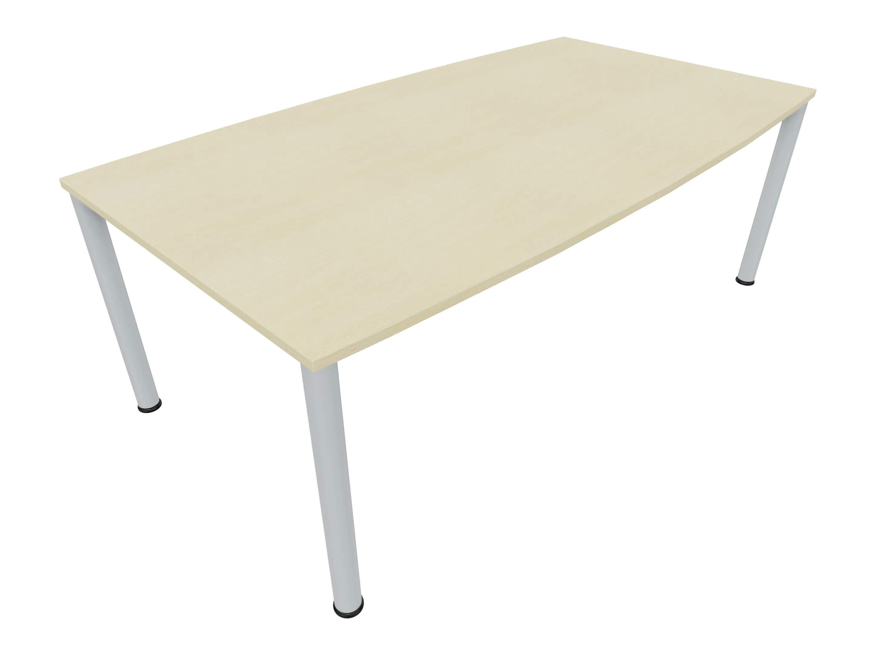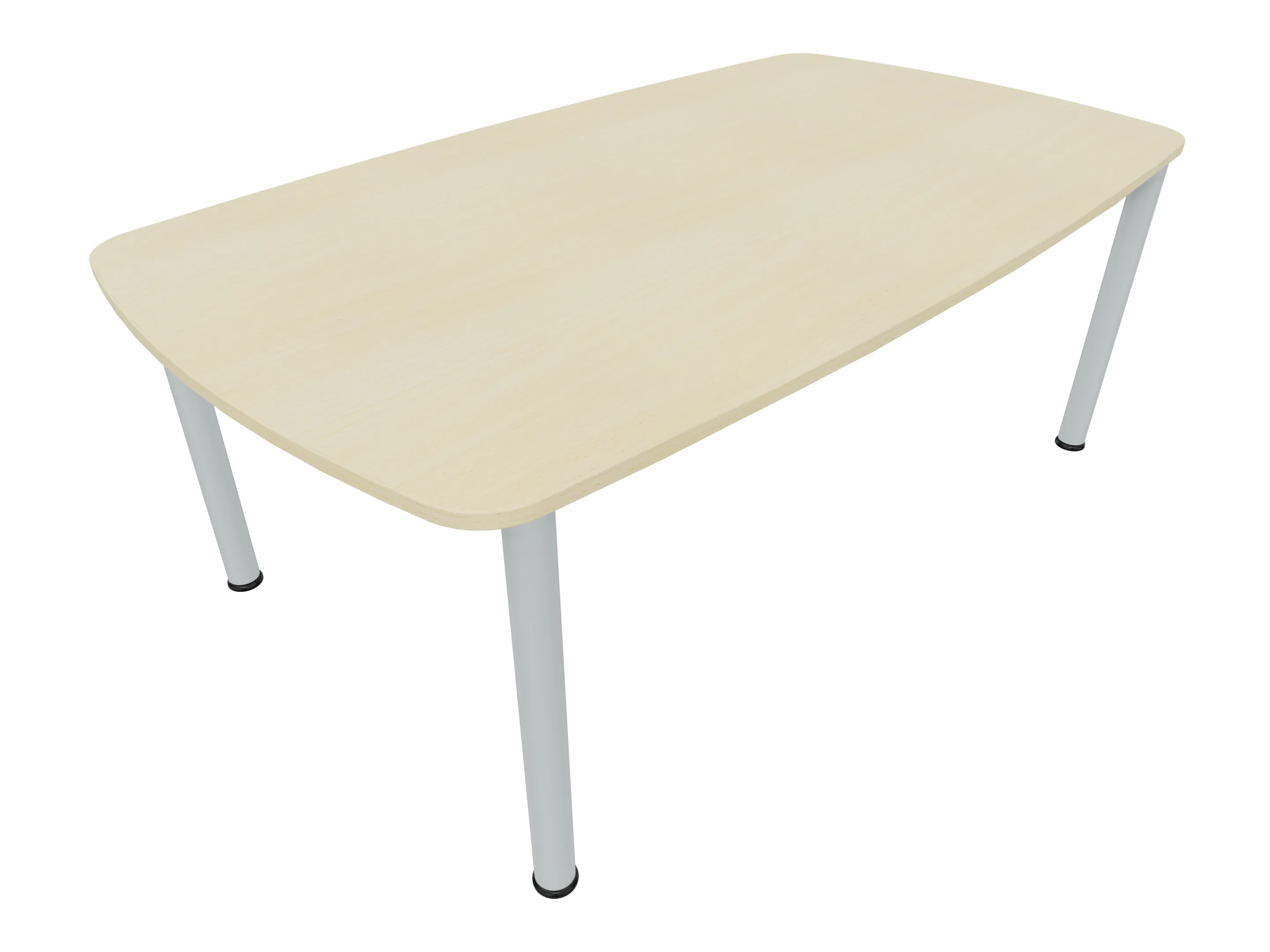 Vergadertafel op een 4-poots frame met ronde poten Ø 60mm en een blad met geronde hoeken. Hoogte-instelbaar 720-800mm. Afmeting onderstel: 1800 x 900mm (B x D). Afmeting blad: 1975 x 900mm (B x D).