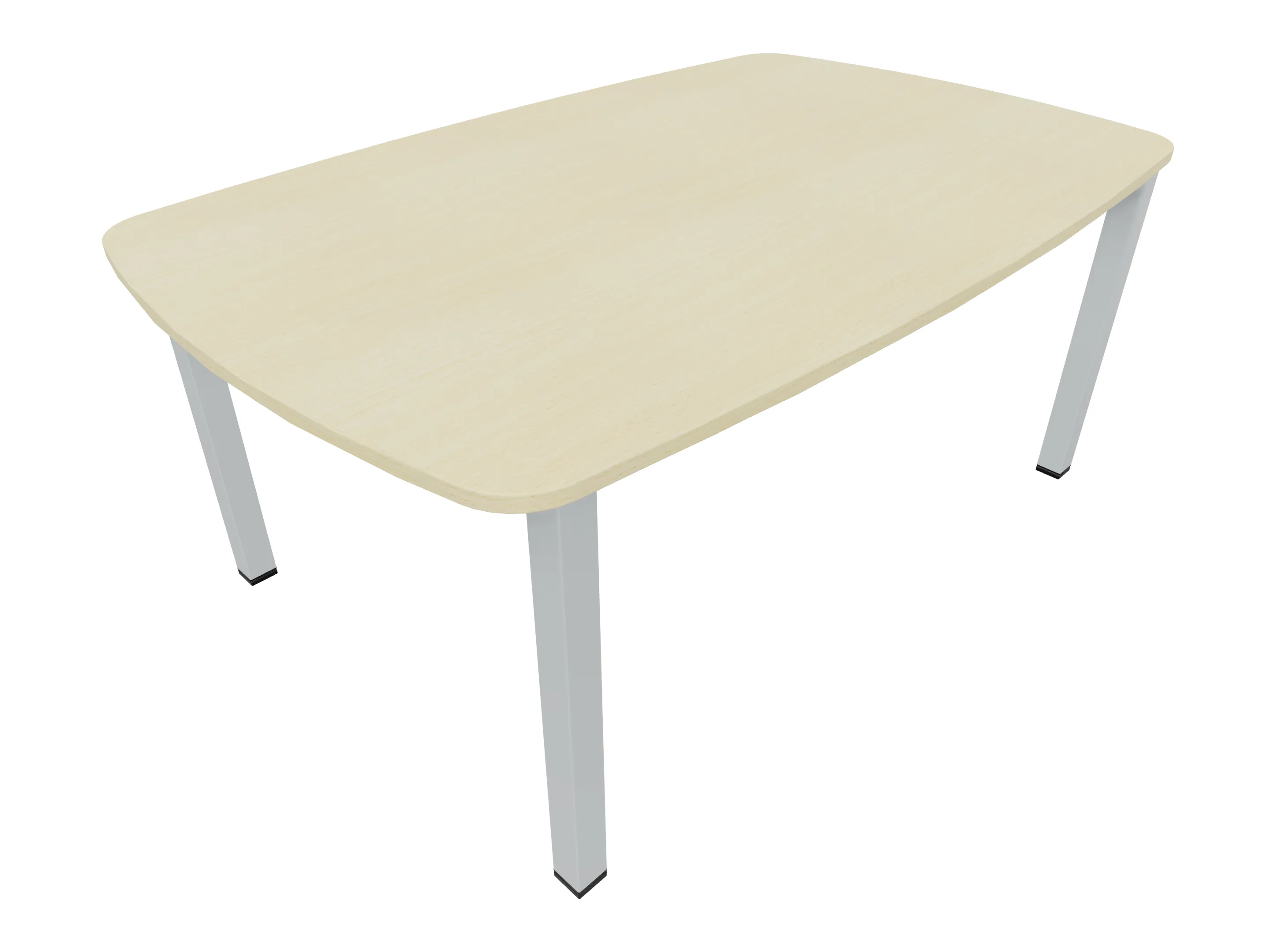 Vergadertafel op een 4-poots frame met vierkante poten 55 x 55mm (B x D) en een blad met geronde hoeken. Hoogte-instelbaar 720-800mm. Afmeting onderstel: 1800 x 1100mm (B x D). Afmeting blad: 1975 x 1100mm (B x D).