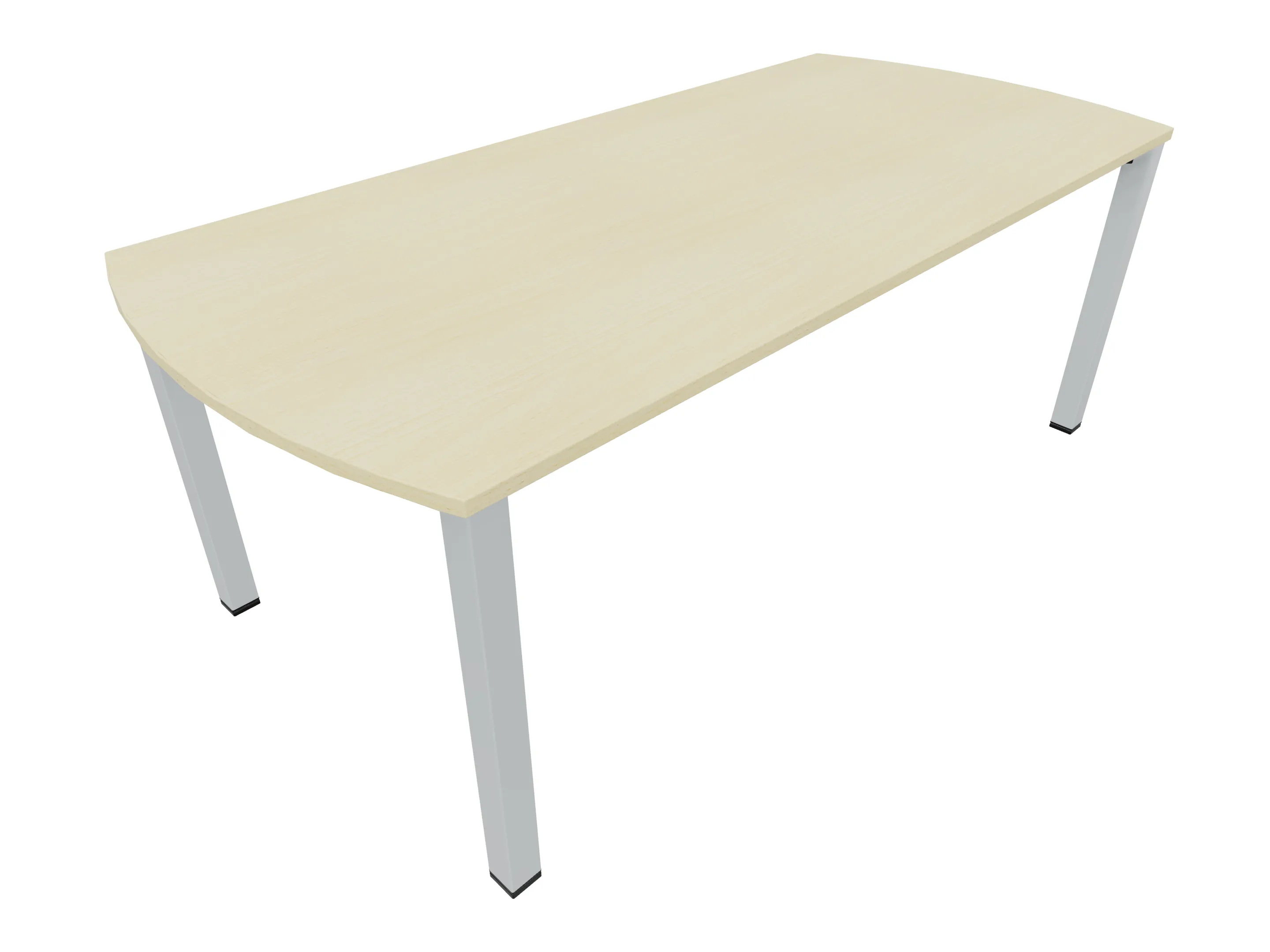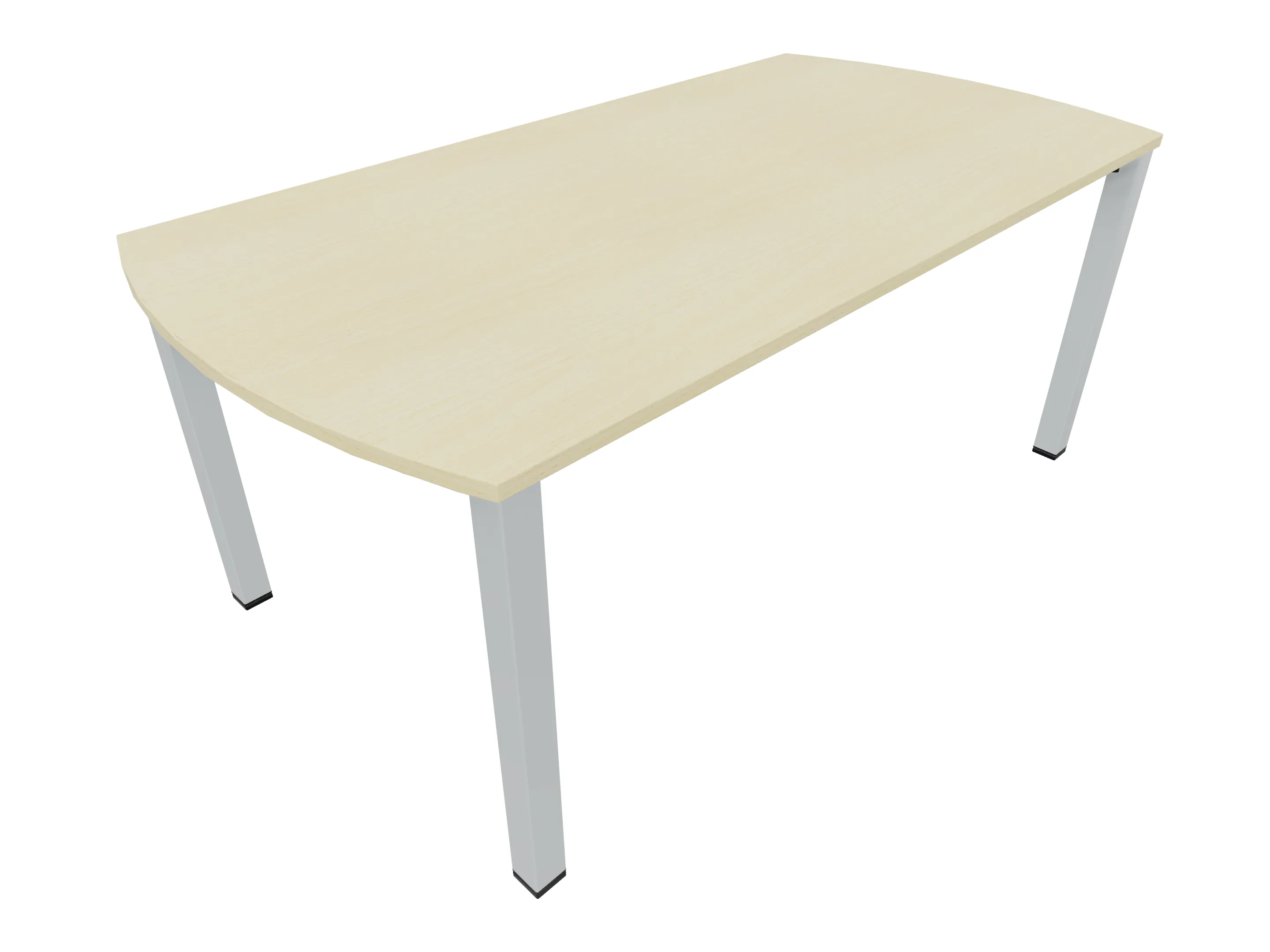 Vergadertafel op een 4-poots frame met vierkante poten 55 x 55mm (B x D) en een blad met geronde hoeken. Hoogte-instelbaar 720-800mm. Afmeting onderstel: 1800 x 900mm (B x D). Afmeting blad: 1975 x 900mm (B x D).