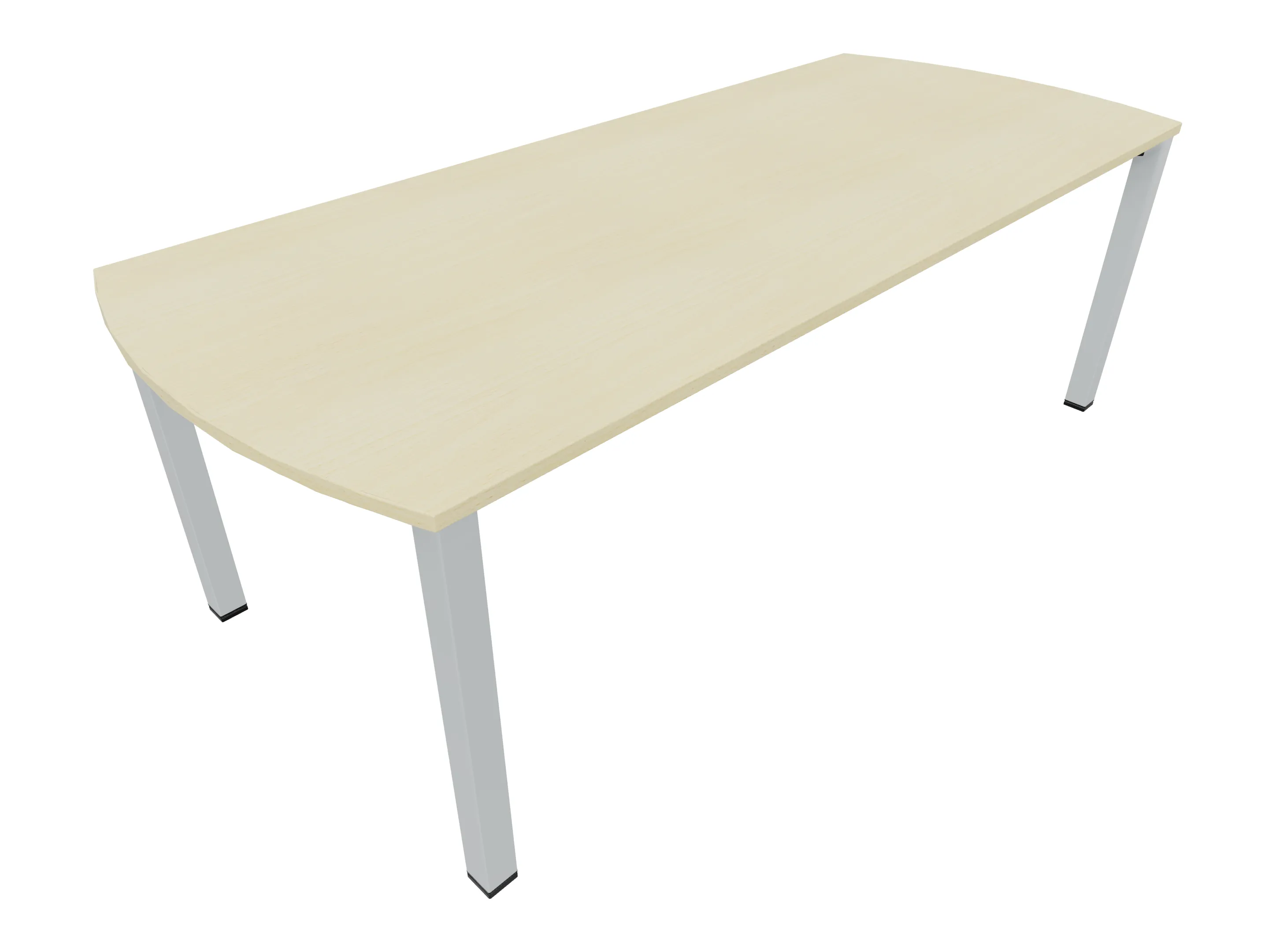 Vergadertafel op een 4-poots frame met vierkante poten 55 x 55mm (B x D) en een blad met geronde hoeken. Hoogte-instelbaar 720-800mm. Afmeting onderstel: 2000 x 1100mm (B x D). Afmeting blad: 2175 x 1100mm (B x D).